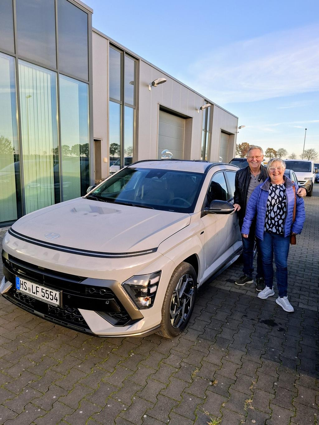 Fahrzeugauslieferung eines Hyundai KONA "N Line", 1.6 T-GDI ; 125KW/170PS ; 7St.-DCT Automatik 4x2, Frontantrieb an Eheleute Zaunbrecher 7.11.2025 Automobilhandel von der Forst GmbH