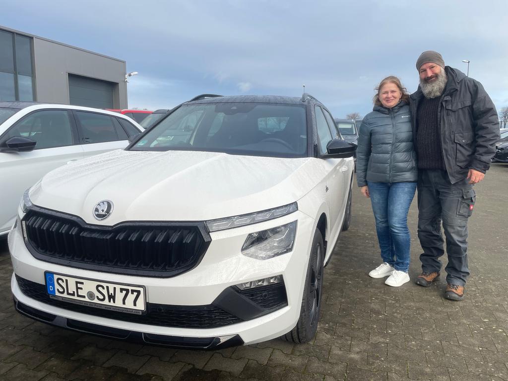 Fahrzeugübergabe eines Skoda Kamiq "Monte Carlo" 1.0 TSI, 85KW / 115PS an Frau Weber 19.12.2025 Automobilhandel von der Forst GmbH
