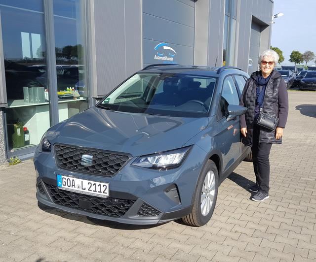 Fahrzeugübergabe eines Seat Arona "Basis PLUS +" 1.0 ECO TSI ; 70KW/95PS ; 5-Gang an Frau Straub 2.10.2025 • Auslieferungen Facebook Twitter