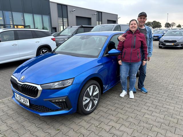 Fahrzeugübergabe eines Skoda Scala "130 Jahre Premium" 1.5 TSI 150PS 6-Gang an Eheleute Wagner 10.10.2025 • Auslieferungen Facebook Twitter
