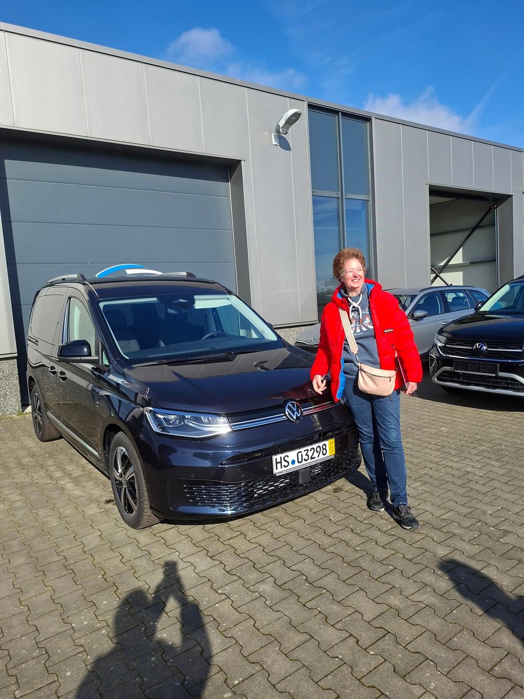 Fahrzeugübergabe eines Volkswagen Caddy "Style", Caddy 5-Sitzer ; 1.5 TSI eHybrid (Plug-In-Hybrid) ; 85KW/115PS ; 6-Gang-DSG (Automatik) an Frau Metz 27.3.2026 • Auslieferungen Facebook Twitter
