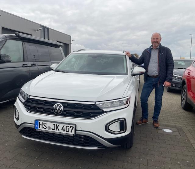 Fahrzeugübergabe eines Volkswagen T-Roc Life, 110 kW (150 PS), DSG an Herrn Kreutzer 17.10.2025 • Auslieferungen Facebook Twitter