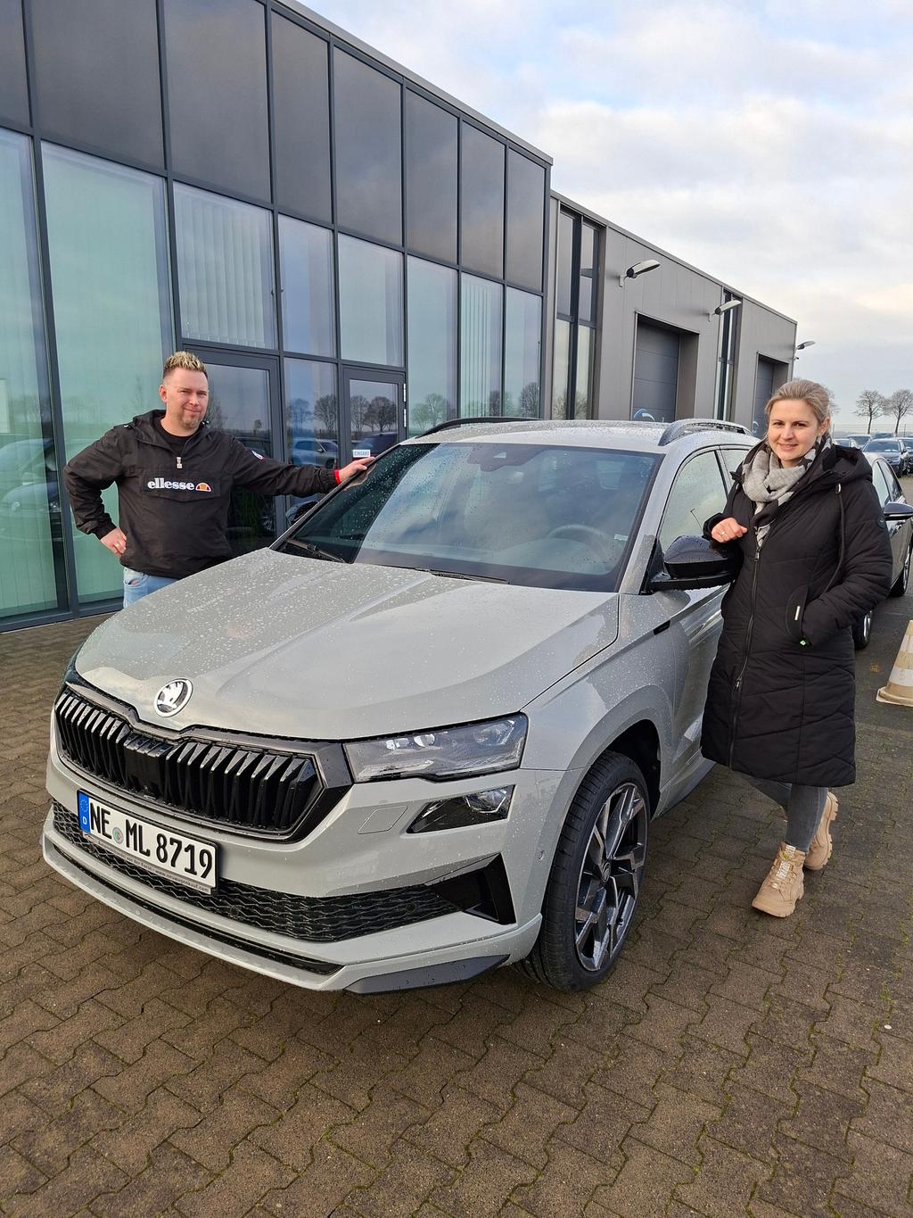 Fahrzeugübergabe eines Skoda Karoq "Sportline", 1.5 TSI 110KW/150PS DSG Automatik an Familie Granderath 6.2.2026 Automobilhandel von der Forst GmbH