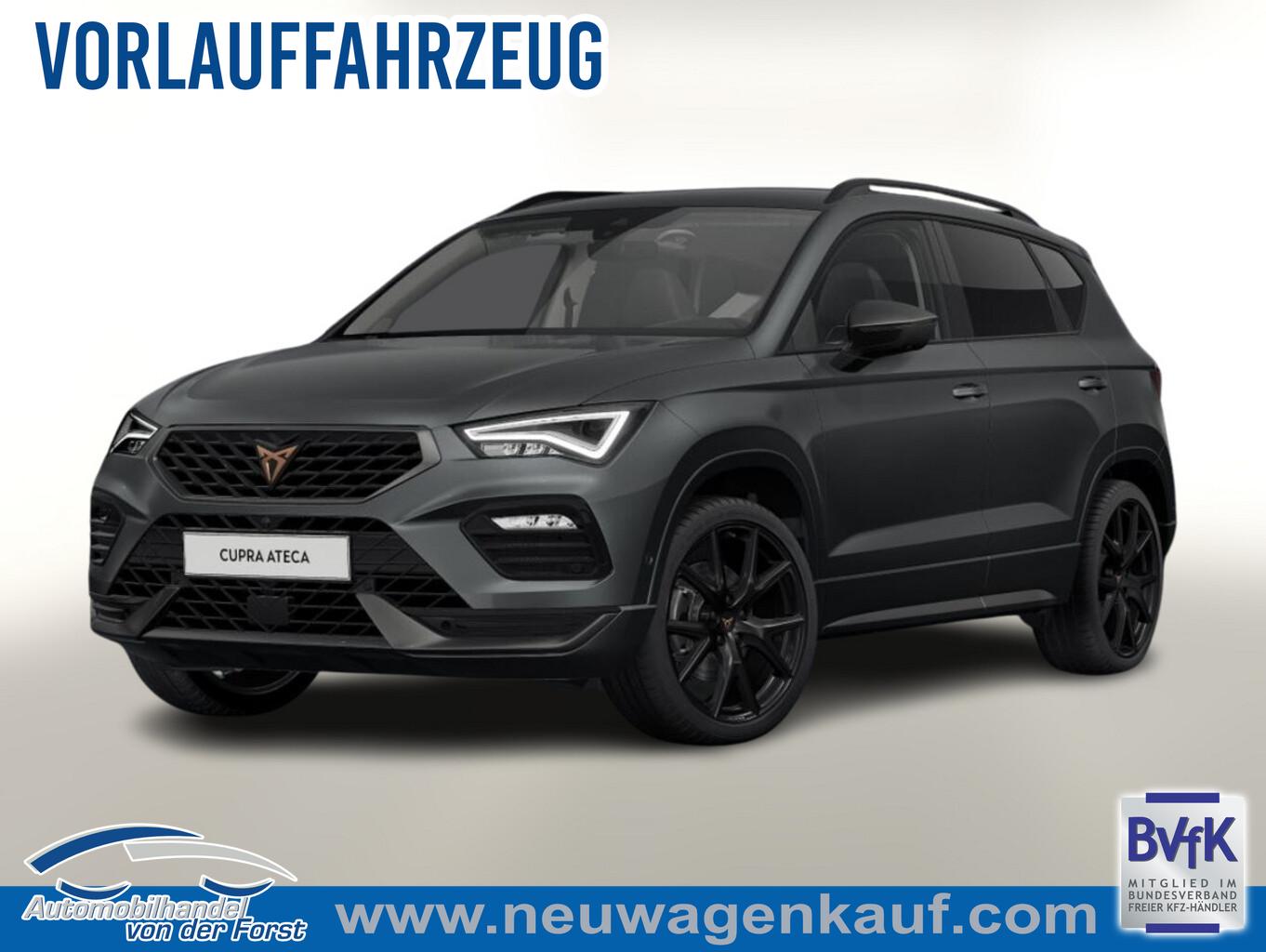 Fahrassistenz-System: Adaptive Fahrwerksregelung (DCC), Fahrassistenz-Paket (Fahrassistenz-Paket: Travel Assist / Fahrassistenz-Paket: Stau- und Notfallassistent / Fahrassistenz-System: Autom. Distanzregelung (ACC / PCC) mit vorausschauender Geschw.-Regelung / Fahrassistenz-System: Automatische Distanzregelung (ACC) / Fahrassistenz-System: Fernlichtassistent / Fahrassistenz-System: Totwinkel-Assistent mit Auspark-Assistent, Spurwechselassistent und Ausstiegswarnung / Fahrassistenz-System: Pre-Crash-System), Heckklappe/-Deckel elektr. betätigt (öffnen + schliessen, sensorgesteuert), Sitz vorn links elektr. verstellbar (mit Memory), Winter-Paket (Sitzheizung vorn), LM-Felgen 8x19 (Exclusive I, schwarz matt, glanzgedreht), Reserverad als Notrad, 8 Lautsprecher, Anschlussgarantie: 3 Jahre oder 100.000 km, Audio-Navigationssystem mit 9,2 Zoll Farb-Touchscreen, Dachspoiler, Fensterzierleisten Schwarz, Gepäckraumbeleuchtung LED, Gurtwarnanlage, Handschuhfach abschließbar, Induktionsladeschale für Smartphone (Connectivity Box), Innenelemente: Dekoreinlagen Aluminium gebürstet, Lenkrad unten abgeflacht, Radioempfang Digital (DAB), Reifen 235/40 R19, Scheibenwaschdüsen heizbar, Sitzbezug / Polsterung: Dinamica/Kunstleder, Sprachsteuerung, Stoßfänger Sport, USB-Schnittstelle vorn (2-fach, Typ C), Licht- und Sicht-Paket (Innenspiegel mit Abblendautomatik / Licht- und Regensensor / Lichtassistent (Coming Home, Leaving Home)), Bluetooth-Schnittstelle mit Freisprecheinrichtung integriert (Bluetooth Audio-Streaming), Scheinwerfer Voll-LED (Leuchtweitenregelung automatisch), Ablagetasche an Vordersitzlehnen, Ambiente-Beleuchtung LED, Brillenfach, Einstiegsleisten (Aluminium) vorn, beleuchtet, Fußraumbeleuchtung LED, Handschuhfach mit LED-Beleuchtung, Karosserie: 5-türig, Lendenwirbelstütze Sitz vorn links, verstellbar, Lendenwirbelstütze Sitz vorn rechts, verstellbar, Mittelarmlehne hinten, Mittelkonsole vorn mit Mittelarmlehne, Becherhalter, Ablagebox und Luftausströmer hinten, Mobile Online Dienste Cupra Connect plus, Motor 1,5 Ltr. - 110 kW 16V TSI ACT, Otto-Partikelfilter (OPF), Parkbremse elektrisch, Pedale Aluminium-Design, Radstand 2681 mm, Sitz vorn links höhenverstellbar, Sitz vorn rechts höhenverstellbar, Sonnenblende links mit Spiegel (beleuchtet), Sonnenblende rechts mit Spiegel (beleuchtet), Steckdose (12V-Anschluß) vorn, Full Link (MirrorLink, Apple CarPlay und Android Auto), USB-Ladeanschlüsse (2-fach, Typ C) für 2.Sitzreihe, Antriebsart: Frontantrieb, Elektron. Differentialsperre (XDS), Elektron. Stabilitätskontrolle (ESC), Wegfahrsperre (elektronisch), Getriebe 7-Gang - Doppelkupplungsgetriebe DSG, Klimaanlage Climatronic 2-Zonen, Airbag Beifahrerseite abschaltbar, Airbag Fahrer-/Beifahrerseite, Fensterheber elektrisch vorn + hinten mit Komfortschaltung, Isofix-Aufnahmen für Kindersitz an Rücksitz, Knieairbag Fahrerseite, Kopf-Airbag-System, Rücksitzlehne geteilt/klappbar (1/3-2/3), Schließ-/Startsystem Kessy, Seitenairbag, Seitenscheiben hinten und Heckscheibe abgedunkelt, Sport-Schalensitze vorn mit integrierten Kopfstützen, Zentralverriegelung mit Fernbedienung, Bordcomputer, Fahrassistenz-System: Fahrprofilauswahl (CUPRA Drive Profile), Dachreling schwarz, Fahrassistenz-System: Verkehrszeichenerkennung, Notrufsystem, Lenkrad heizbar (Sport/Leder) mit Multifunktion und Schaltfunktion, Servolenkung elektro-mechanisch, Außenspiegel elektr. verstell-, heiz- und anklappbar mit Spiegelabsenkung und Welcome Light, Heckleuchten LED mit dynamischem Blinklicht, Nebelscheinwerfer LED mit Abbiegelicht, Fahrassistenz-System: Parklenkassistent mit Einparkhilfe vorn und hinten inkl. Rückfahrkamera, Fahrassistenz-System: Müdigkeitserkennung, Fahrassistenz-System: Spurhalteassistent, Fahrassistenz-System: Umfeldbeobachtungssystem (Front assist) mit City-Notbremsfunktion, Reifenkontroll-Anzeige, Start/Stop-Anlage