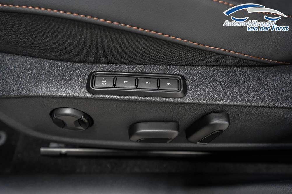 Beifahrersitz höhenverstellbar, Fahrersitz höhenverstellbar, Lederlenkrad, Lendenwirbelstütze, Mittelarmlehne vorne, Sportsitze, Gepäckraumabdeckung, geteilt umklappbare Rücksitzlehne, Lenkrad höhenverstellbar, Sitzbezug Dinamica, Elektrisch verstellbarer Fahrersitz, Beheizbares Lenkrad, Supersportlenkrad, Isofix, Isofix Beifahrersitz, abgedunkelte Scheiben, 19 Zoll Alufelgen Sandstorm, Dachreling schwarz, ABS, Alarmanlage, Außenspiegel elektrisch, Fensterheber elektrisch, Kopfairbags, Nebelscheinwerfer, Schiebedach, Seitenairbags, Servolenkung, Sitzheizung, DCC, ESP, Wegfahrsperre, Außenspiegel beheizbar, Beifahrerairbag, Fahrerairbag, Parkpilot hinten, Parkpilot vorne, Reifendruckkontrolle, Regensensor, Lichtsensor, Digital Cockpit, Anhängekupplung schwenkbar, Tempomat Abstand ACC, Fernlichtassistent, Spurhalteassistent plus, Totwinkelassistent, Verkehrszeichenerkennung, LED-Scheinwerfer, Tagfahrlicht LED, Pannenset, Rückfahrkamera, Intelligent Park-Assistent, Panoramadach, Elektrische Heckklappe inkl. Virtual Pedal, KeylessEntry, StartStopSystem, Innenspiegel automatisch abbl., Müdigkeitswarnsystem, Notrufsystem, Schaltwippen, Klimaautomatik 3-Zonen, 360-Grad-Kamera, Geschwindigkeitsbegrenzer, Android Auto, Apple Carplay, Freisprecheinrichtung, Induktionsladestation, Sprachsteuerung, USB, Radio DAB, Bluetooth, Bordcomputer, Radio-Navigationssystem, Full Link, Stauassistent, Pre-Crash, erweiterte Herstellergarantie 4 Jahre/120.000km,