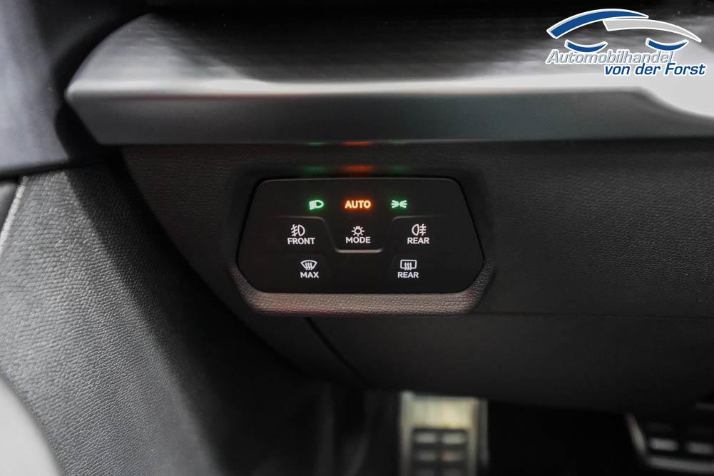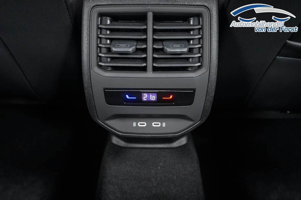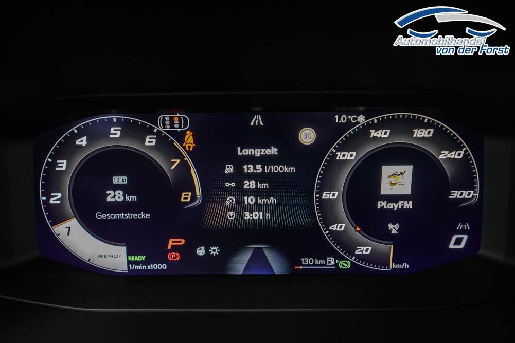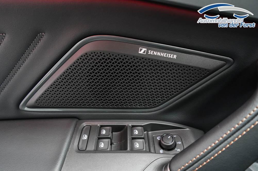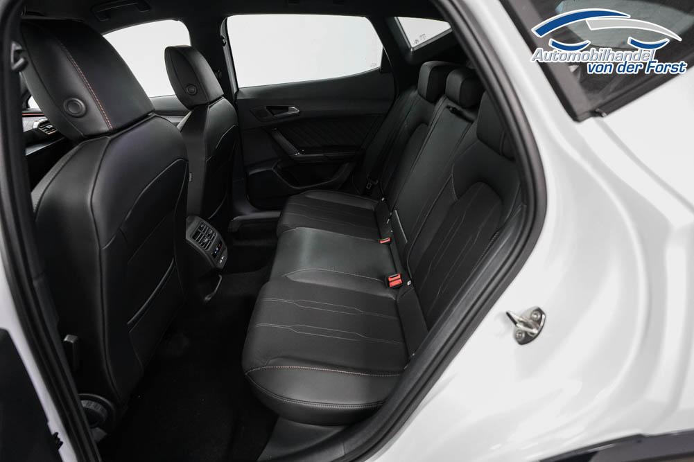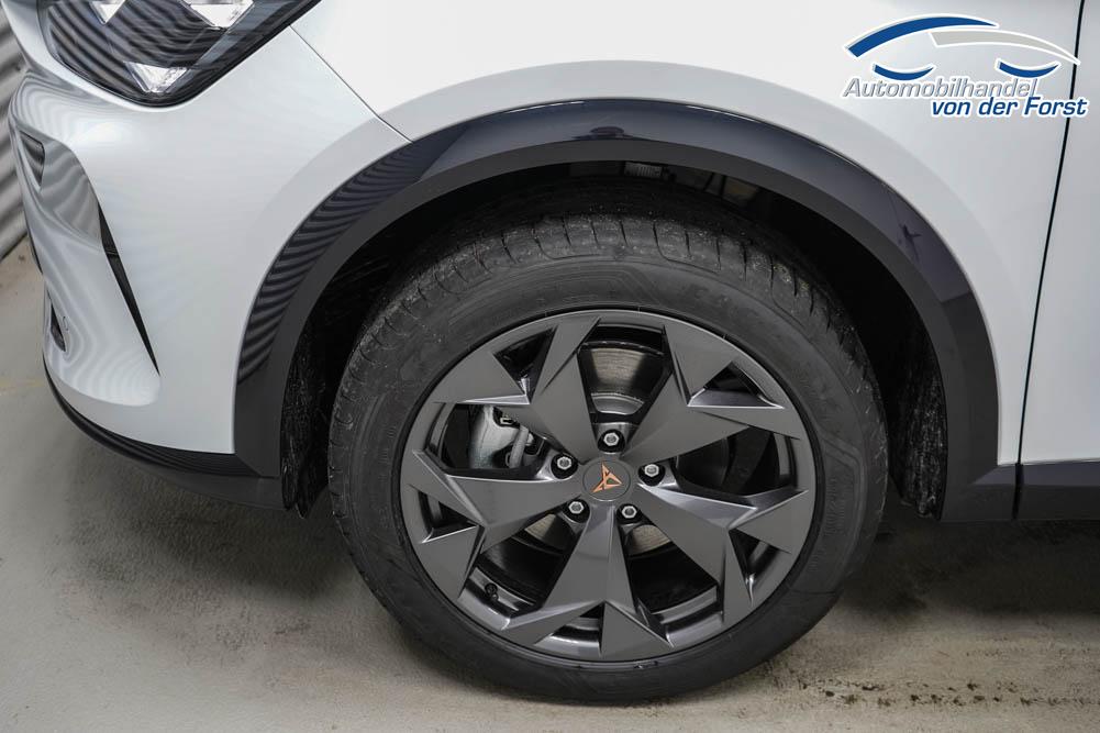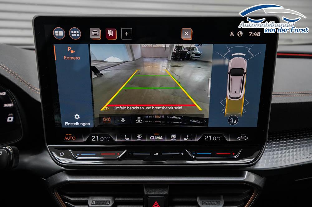 Beifahrersitz höhenverstellbar, Fahrersitz höhenverstellbar, Lederlenkrad, Lendenwirbelstütze, Mittelarmlehne vorne, Sitzbezug Stoff, geteilt umklappbare Rücksitzlehne, Lenkrad höhenverstellbar, Smart Wraparound Interieur Light, Beheizbares Lenkrad, Multifunktionslenkrad, Isofix, Isofix Beifahrersitz, abgedunkelte Scheiben, 18 Zoll Alufelgen , Dachreling schwarz, ABS, Alarmanlage, Außenspiegel elektrisch einstell-/anklappbar, Fensterheber elektrisch, Kopfairbags, Nebelscheinwerfer, Seitenairbags, Servolenkung, Sitzheizung, ESP, Wegfahrsperre, Außenspiegel beheizbar, Beifahrerairbag, Fahrerairbag, Parkpilot hinten, Parkpilot vorne, Reifendruckkontrolle, Regensensor, Lichtsensor, Digital Cockpit, Anhängekupplung schwenkbar, Tempomat Abstand ACC, Spurhalteassistent, Verkehrszeichenerkennung, LED-Scheinwerfer, Tagfahrlicht, Rückfahrkamera, Elektrische Heckklappe inkl. Virtual Pedal, KeylessEntry, StartStopSystem, Innenspiegel automatisch abbl., Müdigkeitswarnsystem, Notrufsystem, Schaltwippen, Klimaautomatik 3-Zonen, Geschwindigkeitsbegrenzer, Android Auto, Apple Carplay, Freisprecheinrichtung, Induktionsladestation, Sprachsteuerung, USB, Radio, Radio DAB, Bluetooth, Bordcomputer, IMMERSIVE by Sennheiser, Cupra Full Link, Full Link, variabler Ladeboden,