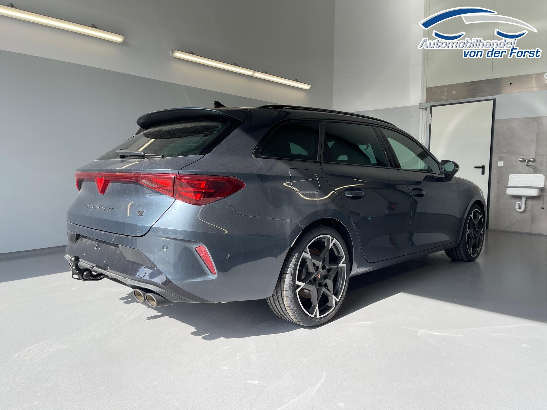• 19 Zoll Leichtmetallräder, Außenspiegel elektrisch einstell- und beheizbar, Außenspiegel elektrisch anklappbar mit Memory-Funktion, Wärmeschutzverglasung, Pedale in Aluminium, Doppelter Laderaumboden, Laderaumabdeckung, CUPRA Einstiegsleisten vorne mit Beleuchtung, Sportsitze vorne, Fahrersitz elektrisch verstellbar mit Memory-Funktion (Vordersitze höhenverstellbar, Lendenwirbelstütze elektrisch für Fahrersitzlehnen, Sitzpolsterung "Dinamica"), Umgebungsbeleuchtung, 3D-LED-Rückleuchten mit dynamischen Blinkern, Diebstahlwarnanlage mit Innenraumüberwachung, Sicherheitsinnenspiegel automatisch abblendend, Front-Querverkehrassistent, Voll-LED-Scheinwerfer (LED-Tagfahrlicht, Lichtsensor, Coming/Leaving Home Funktion), ParkPilot vorn und hinten, XDS, Differenzialsperre, Virtual Cockpit inkl. Bordcomputer, Radio "Infotainment" (Farbdisplay, Touchscreen), USB-C Schnittstelle, Adaptive Geschwindigkeitsregelung ACC mit Follow-to-Stop (Geschwindigkeitsregelanlage inkl. Geschwindigkeitsbegrenzung), Mittelarmlehne vorne, Rückfahrkamera, Klimaautomatik 3-Zonen-Climatronic, Connectivity Box (Freisprecheinrichtung Bluetooth, induktionsladen für Smartphones), Wireless App-Connect, Fahrprofilauswahl, Dynamische Fahrwerksregelung DCC, Hecklappe elektrisch mit virtuelles Pedal, Keyless Advanced (Schlüsselloses Schließ- und Startsystem, Zentralverriegelung mit Funkfernbedienung), Leseleuchten vorn und hinten, Scheiben ab der B-Säule abgedunkelt, Regensensor, Servolenkung, Make-up-Spiegel in den Sonnenblenden, Sprachbedienung, Wegfahrsperre, Airbag für Fahrer und Beifahrer, Beifahrerairbag-Deaktivierung, Seitenairbag vorn, Kopfairbag vorn, Centerairbag, Verkehrszeichenerkennung, Front Assist inkl. City-Notbremsfunktion, Notrufsystem eCall, Fensterheber vorn und hinten elektrisch, Digitaler Radioempfang DAB, Müdigkeitserkennung, Aufmerksamkeitserkennung, ESC, ABS, ASR, XDS, Spurhalteassistent "Lane Assist", Reifendruckkontrolle, Tire-Mobility-Set, Fußgängererkennung, Radfahrererkennung, Start-Stopp-Anlage, Scheibenbremsen vorn und hinten, Isofix Beifahrersitz, Dreipunkt-Sicherheitsgurte, variabler Laderaumboden, Kopfstützen, Rücksitzlehne geteilt umklappbar mit Mittelarmlehne, Dachreling in Schwarz, Nebelscheinwerfer, 230V Wechselrichter und Steckdose, Schublade unter dem Beifahrersitz, Ambientebeleuchtung