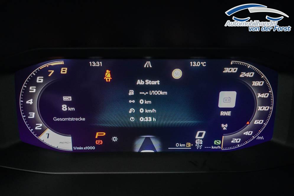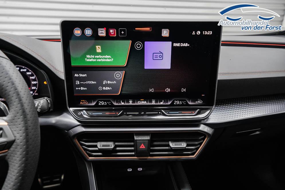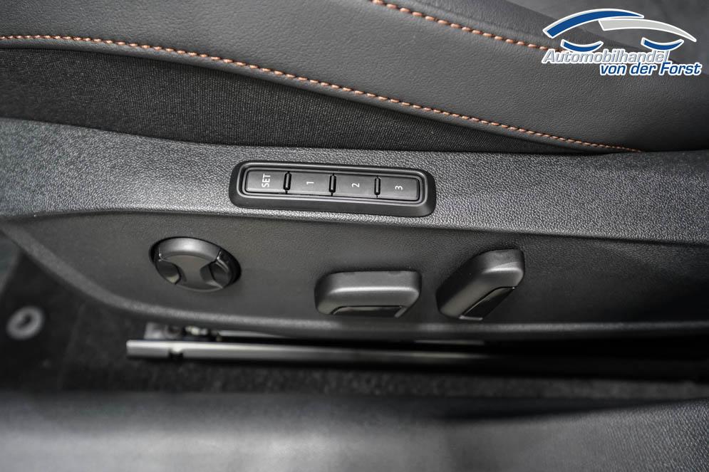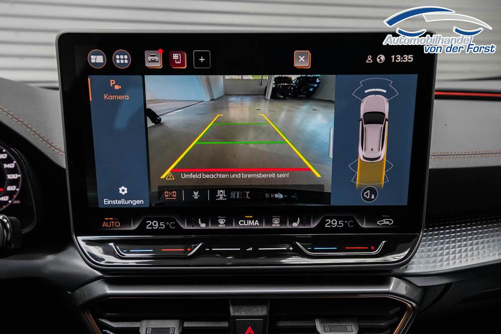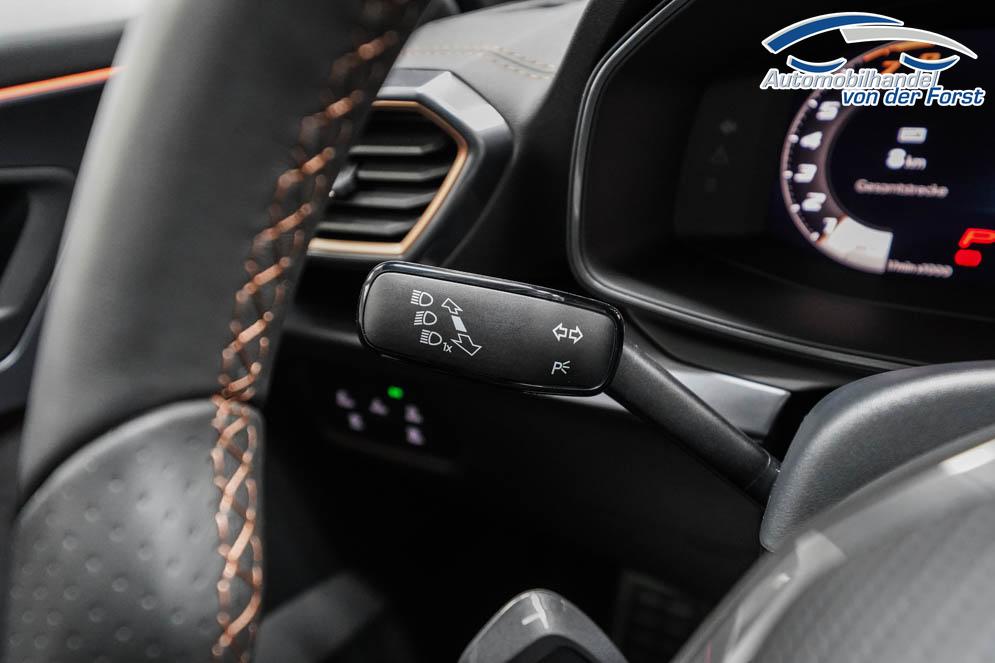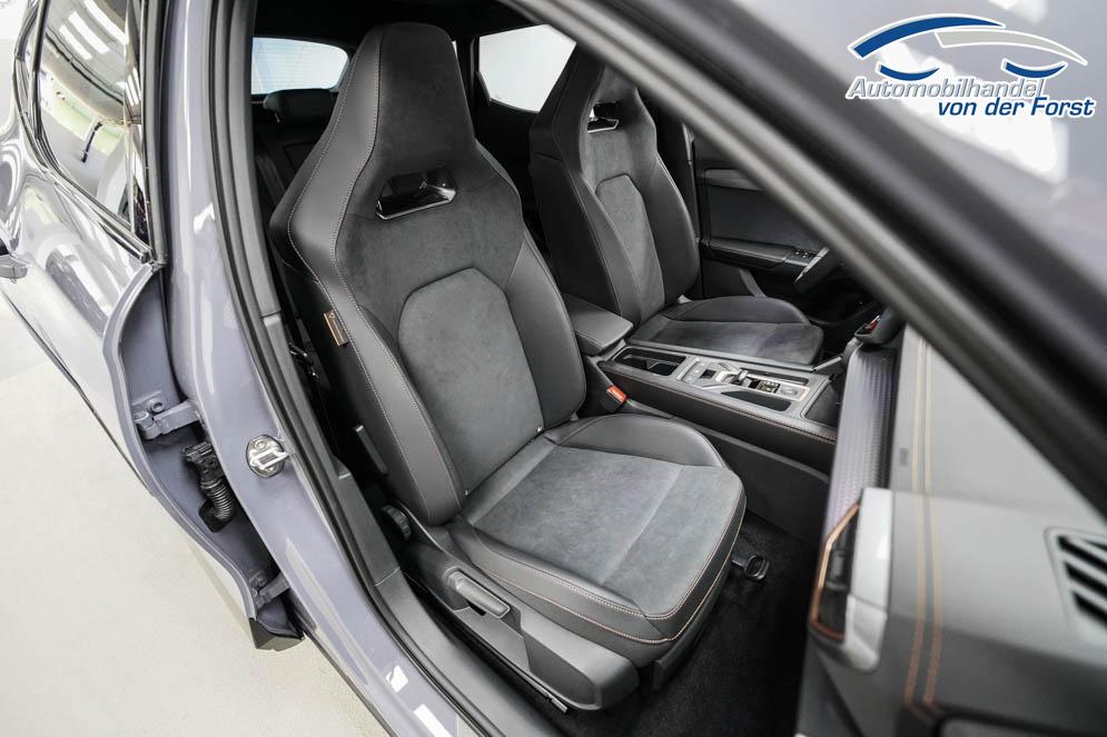 Beifahrersitz höhenverstellbar, Fahrersitz höhenverstellbar, Lederlenkrad, Lendenwirbelstütze, Mittelarmlehne vorne, Sportsitze, geteilt umklappbare Rücksitzlehne, Lenkrad höhenverstellbar, Sitzbezug Dinamica, Ambiente-Beleuchtung, Elektrisch verstellbarer Fahrersitz mit Memory, Beheizbares Lenkrad, Multifunktionslenkrad mit Satellitentasten, Isofix, Isofix Beifahrersitz, abgedunkelte Scheiben, 19 Zoll Alufelgen Sandstorm, Dachreling schwarz, ABS, Alarmanlage, Außenspiegel elektrisch, Fensterheber elektrisch, Kopfairbags, Nebelscheinwerfer, Schiebedach, Seitenairbags, Servolenkung, Sitzheizung vorne, DCC, ESP, Wegfahrsperre, Außenspiegel beheizbar, Beifahrerairbag, Fahrerairbag, Parkpilot hinten, Parkpilot vorne, Reifendruckkontrolle, Regensensor, Lichtsensor, Digital Cockpit, Anhängekupplung schwenkbar, Tempomat Abstand ACC, Fernlichtassistent, Spurhalteassistent, Verkehrszeichenerkennung, Full LED-Scheinwerfer, Tagfahrlicht LED, Pannenset, Rückfahrkamera, Panoramadach, Elektrische Heckklappe inkl. Virtual Pedal, KeylessEntry, StartStopSystem, Innenspiegel automatisch abbl., Müdigkeitswarnsystem, Notrufsystem, Schaltwippen, Klimaautomatik 3-Zonen, Geschwindigkeitsbegrenzer, Android Auto, Apple Carplay, Freisprecheinrichtung, Induktionsladestation, Sprachsteuerung, USB, Radio, Radio DAB, Bluetooth, Bordcomputer, Schalensitze vorne, Cupra Full Link, variabler Ladeboden, erweiterte Herstellergarantie 5 Jahre/100.000km,
