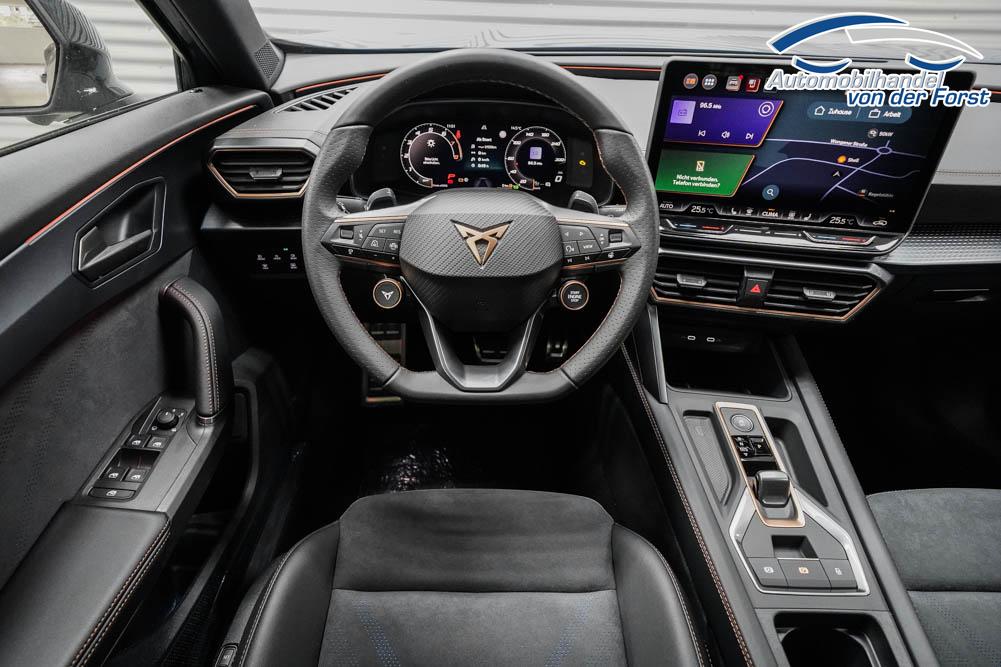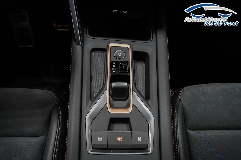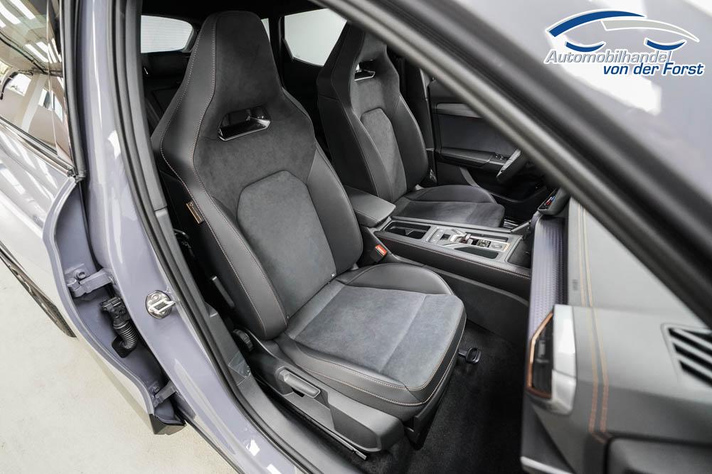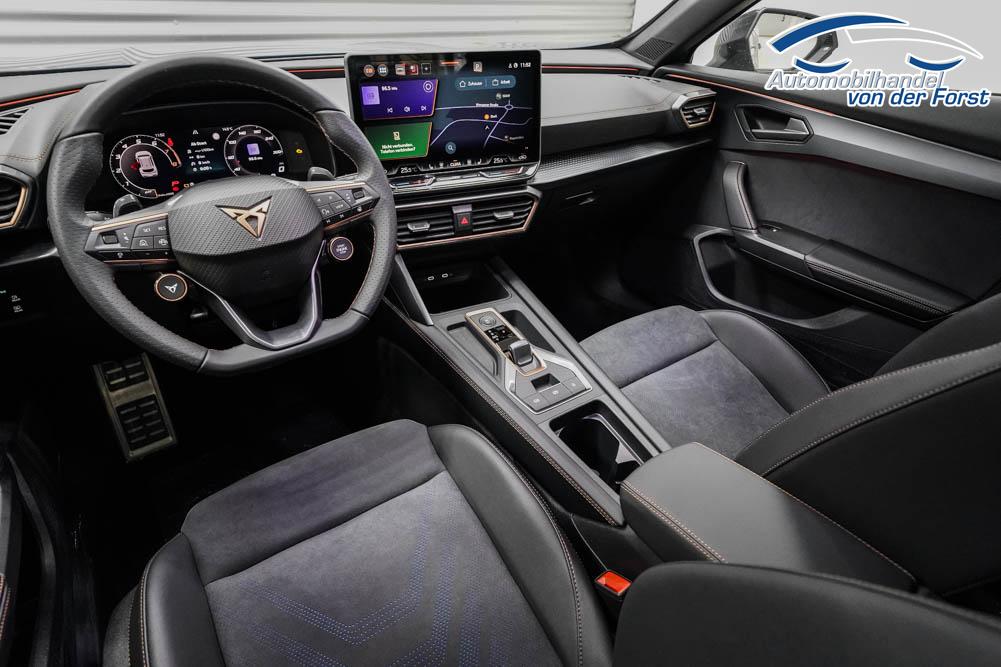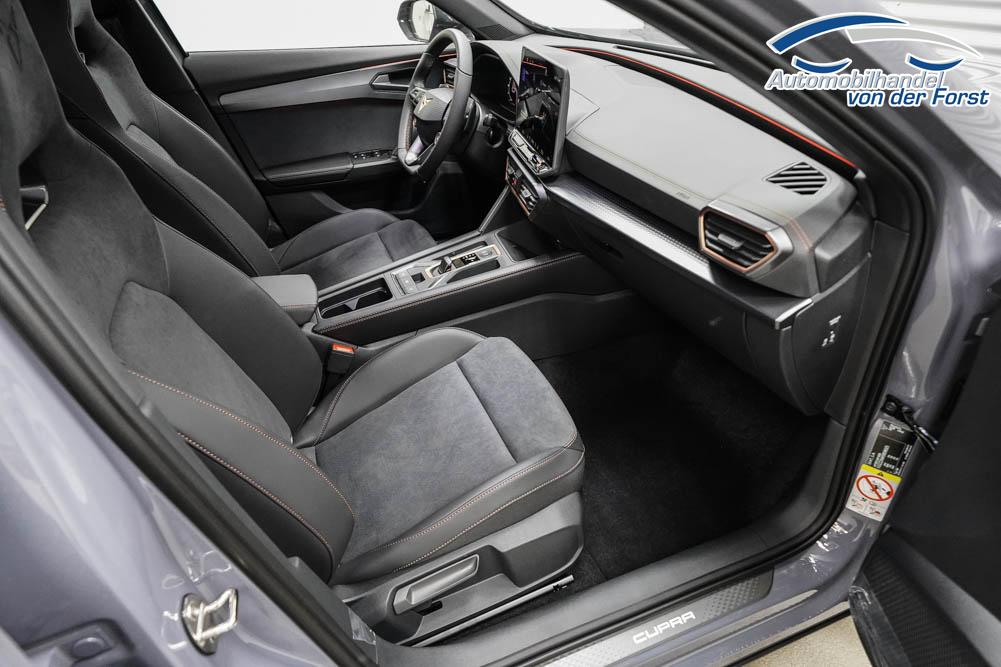 Beifahrersitz höhenverstellbar, Fahrersitz höhenverstellbar, Lederlenkrad, Lendenwirbelstütze, Mittelarmlehne vorne, Sitzbezug Stoff, Sportsitze, Gepäckraumabdeckung, geteilt umklappbare Rücksitzlehne, Lenkrad höhenverstellbar, Sitzbezug Dinamica, Ambiente-Beleuchtung, Elektrisch verstellbarer Fahrersitz mit Memory, Beheizbares Lenkrad, Multifunktionslenkrad mit Satellitentasten, Isofix, Isofix Beifahrersitz, abgedunkelte Scheiben, 19 Zoll Alufelgen Sandstorm Kupfer, Dachreling schwarz, ABS, Alarmanlage, Außenspiegel elektrisch anklappbar, Fensterheber elektrisch, Kopfairbags, Nebelscheinwerfer, Schiebedach, Seitenairbags, Servolenkung, Sitzheizung vorne, DCC, ESP, Wegfahrsperre, Außenspiegel beheizbar, Beifahrerairbag, Fahrerairbag, Parkpilot hinten, Parkpilot vorne, Reifendruckkontrolle, Regensensor, Lichtsensor, Digital Cockpit, Anhängekupplung schwenkbar, Tempomat Abstand ACC, Fernlichtassistent, Spurhalteassistent plus, Totwinkelassistent, Verkehrszeichenerkennung, LED Matrix Scheinwerfer, Tagfahrlicht LED, Pannenset, Rückfahrkamera, Intelligent Park-Assistent, Panoramadach, Elektrische Heckklappe inkl. Virtual Pedal, KeylessEntry, StartStopSystem, Innenspiegel automatisch abbl., Müdigkeitswarnsystem, Notrufsystem, Schaltwippen, Klimaautomatik 3-Zonen, 360-Grad-Kamera, Geschwindigkeitsbegrenzer, Freisprecheinrichtung, Induktionsladestation, Sprachsteuerung, USB, Radio DAB, Bluetooth, Bordcomputer, Radio-Navigationssystem, Schalensitze vorne, Cupra Full Link, variabler Ladeboden, erweiterte Herstellergarantie 5 Jahre/100.000km, Exit Assist, Stauassistent, Pre-Crash,