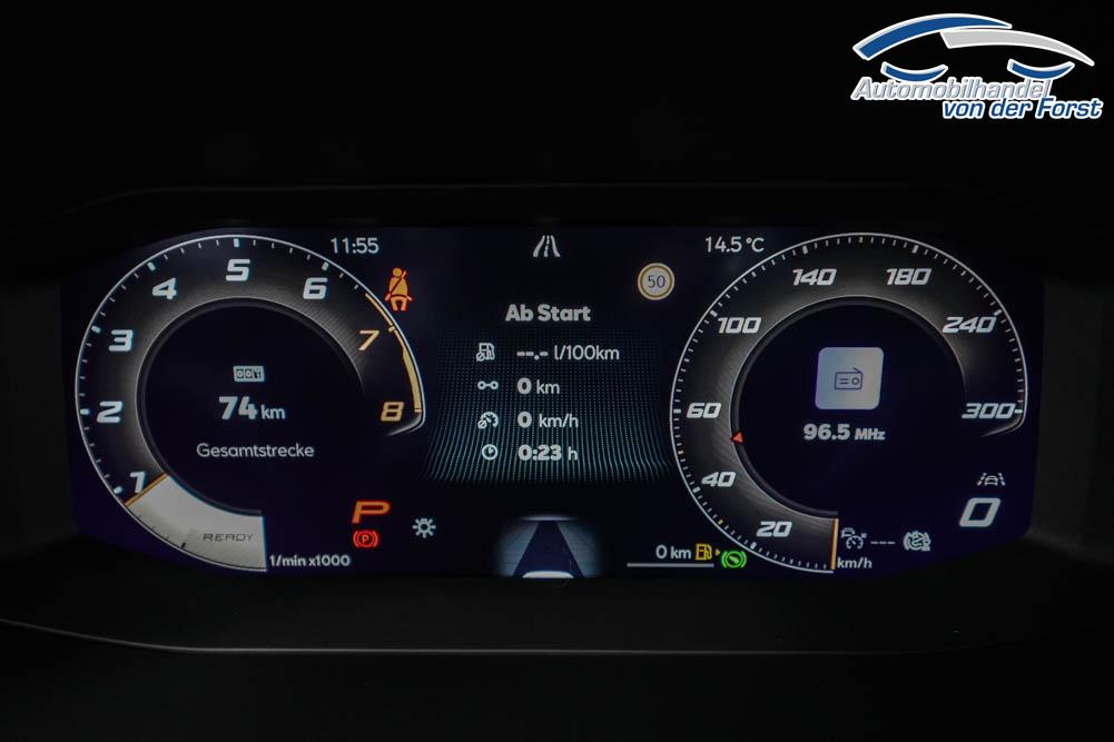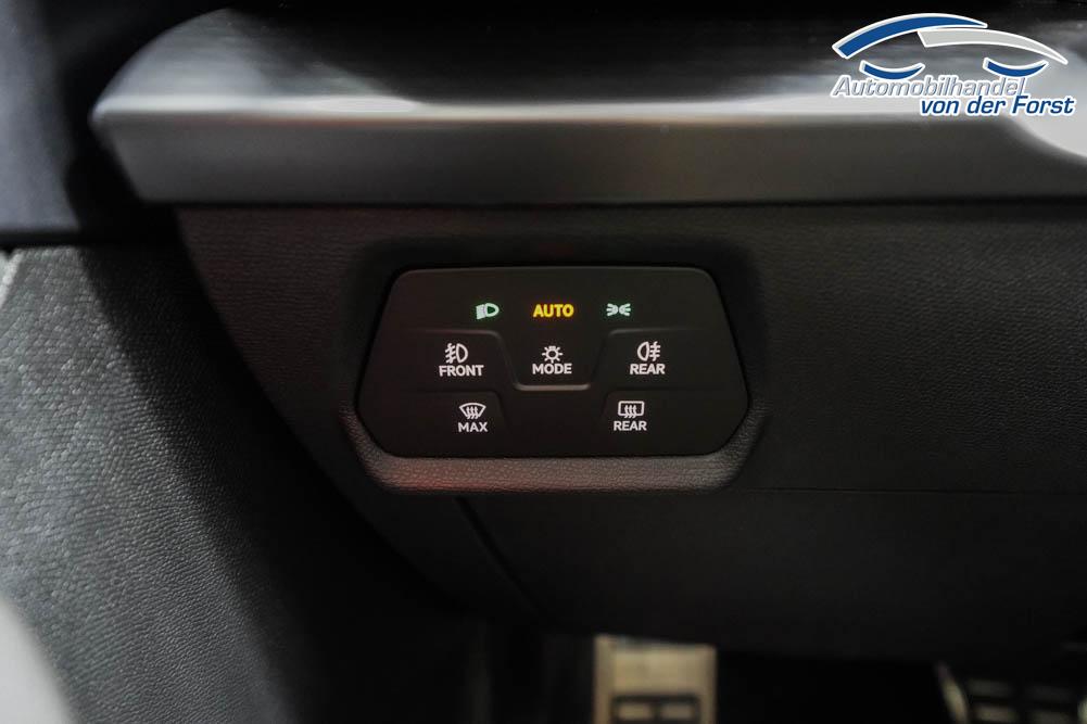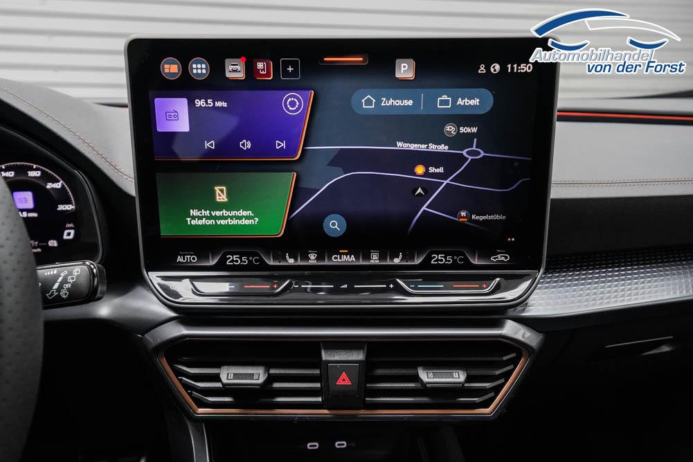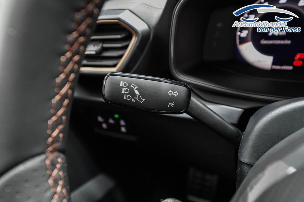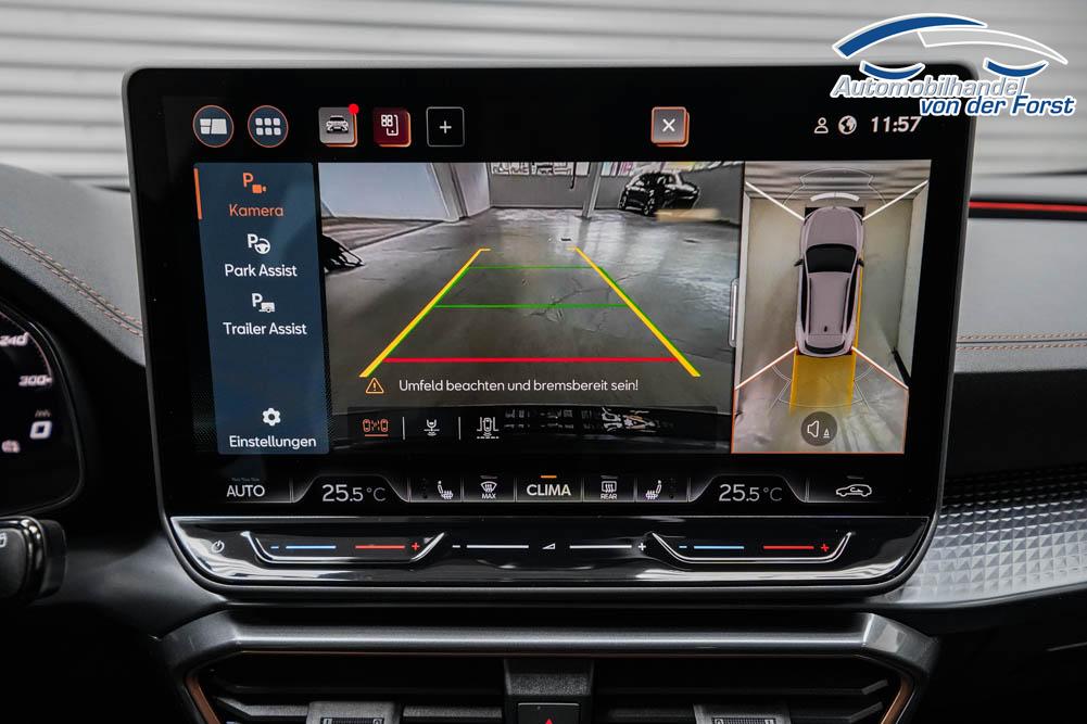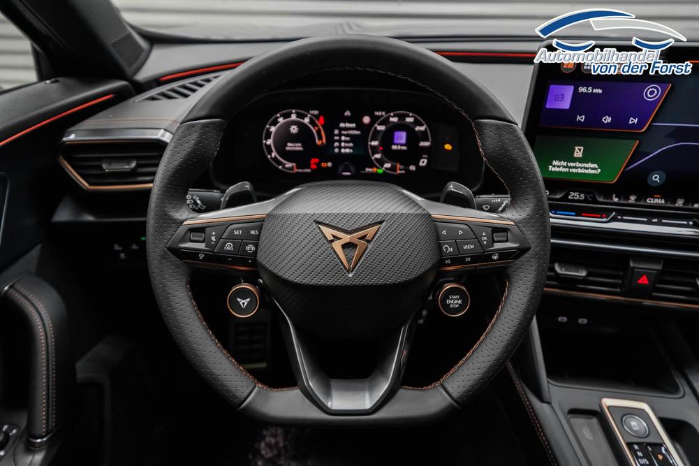 Beifahrersitz höhenverstellbar, Fahrersitz höhenverstellbar, Lederlenkrad, Lendenwirbelstütze, Mittelarmlehne vorne, Sitzbezug Stoff, Sportsitze, Gepäckraumabdeckung, geteilt umklappbare Rücksitzlehne, Lenkrad höhenverstellbar, Sitzbezug Dinamica, Ambiente-Beleuchtung, Elektrisch verstellbarer Fahrersitz mit Memory, Beheizbares Lenkrad, Multifunktionslenkrad mit Satellitentasten, Isofix, Isofix Beifahrersitz, abgedunkelte Scheiben, 19 Zoll Alufelgen Sandstorm Kupfer, Dachreling schwarz, ABS, Alarmanlage, Außenspiegel elektrisch anklappbar, Fensterheber elektrisch, Kopfairbags, Nebelscheinwerfer, Schiebedach, Seitenairbags, Servolenkung, Sitzheizung vorne, DCC, ESP, Wegfahrsperre, Außenspiegel beheizbar, Beifahrerairbag, Fahrerairbag, Parkpilot hinten, Parkpilot vorne, Reifendruckkontrolle, Regensensor, Lichtsensor, Digital Cockpit, Anhängekupplung schwenkbar, Tempomat Abstand ACC, Fernlichtassistent, Spurhalteassistent plus, Totwinkelassistent, Verkehrszeichenerkennung, LED Matrix Scheinwerfer, Tagfahrlicht LED, Pannenset, Rückfahrkamera, Intelligent Park-Assistent, Panoramadach, Elektrische Heckklappe inkl. Virtual Pedal, KeylessEntry, StartStopSystem, Innenspiegel automatisch abbl., Müdigkeitswarnsystem, Notrufsystem, Schaltwippen, Klimaautomatik 3-Zonen, 360-Grad-Kamera, Geschwindigkeitsbegrenzer, Freisprecheinrichtung, Induktionsladestation, Sprachsteuerung, USB, Radio DAB, Bluetooth, Bordcomputer, Radio-Navigationssystem, Schalensitze vorne, Cupra Full Link, variabler Ladeboden, erweiterte Herstellergarantie 5 Jahre/100.000km, Exit Assist, Stauassistent, Pre-Crash,