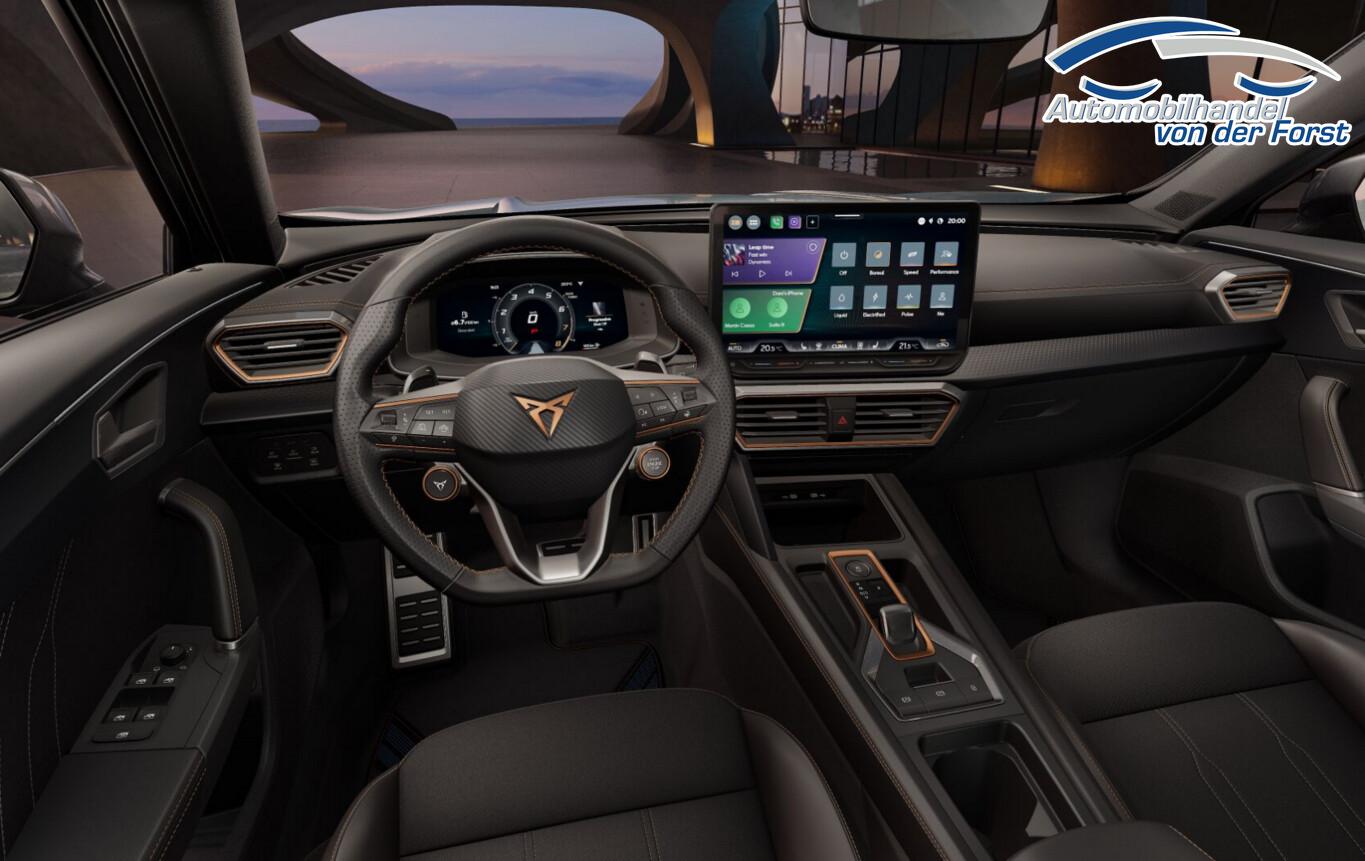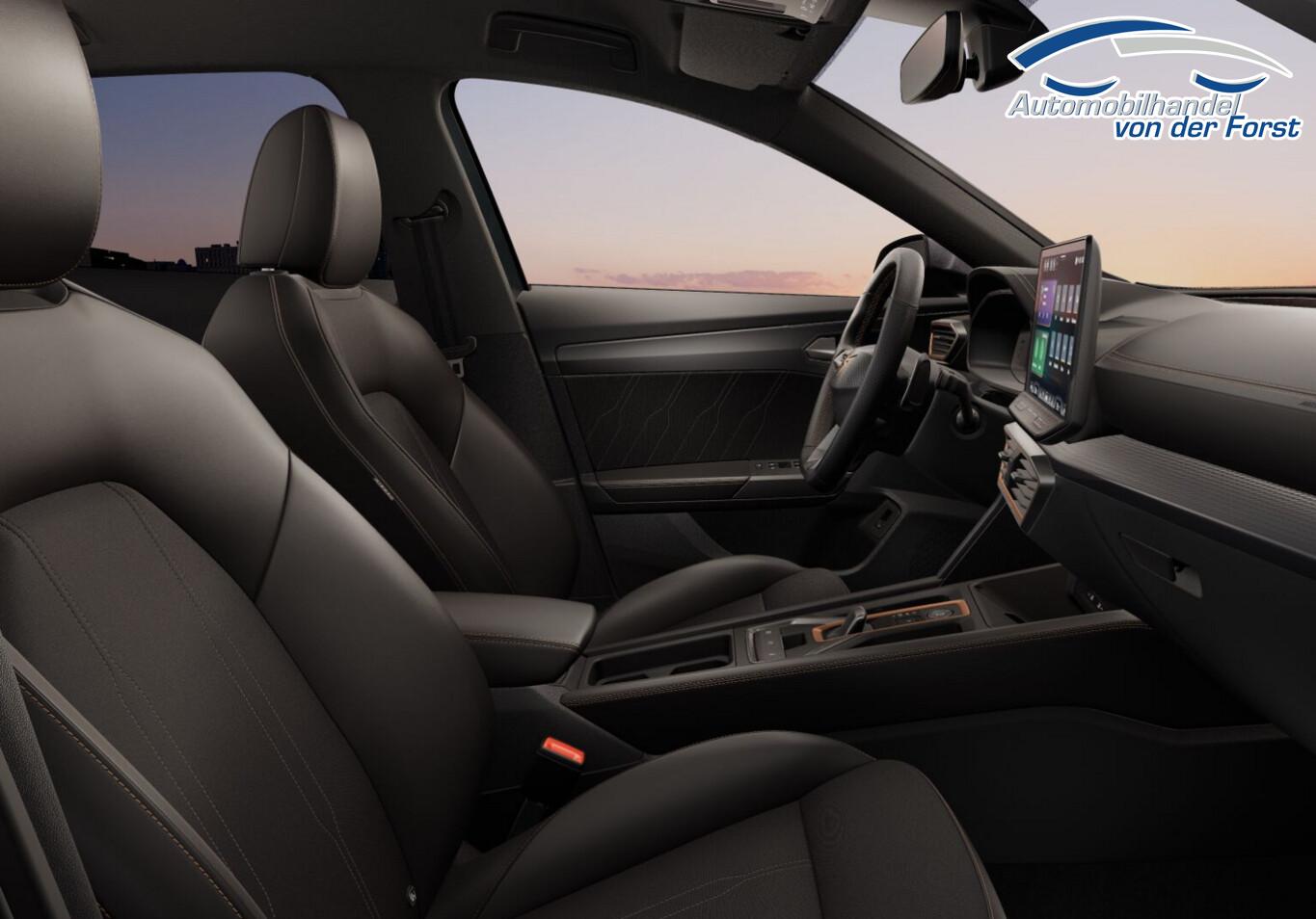 Edge-Paket (Ambiente-Beleuchtung LED / Ambiente-Beleuchtung Smart Ambient Light / Schließ-/Startsystem Kessy Advanced / Heckklappe/-Deckel elektr. betätigt (öffnen + schliessen, sensorgesteuert) / Rückfahrkamera / Diebstahl-Warnanlage mit Innenraumüberwachung und Abschleppschutz), Winter-Paket (Sitzheizung vorn), Audio-Infotainmentsystem mit Touchscreen Farbbildschirm 12,9", Außenspiegel elektr. verstell-, heiz- und anklappbar, Bluetooth-Freisprecheinrichtung, Fahrassistenz-System: Ausweich- und Abbiegeassistent, Induktionsladeschale für Smartphone, Kartentaschen an Vordersitzlehnen, LM-Felgen 18 Zoll (Tempest), Navigation in Verbindung mit dem Smartphone (über Apple Carplay / Android Auto /...), Pedale in Aluminium-Optik, Reifen 245/45 R18, Schadstoffarm nach Abgasnorm Euro 6e (EU6 EA), Sitzbezug / Polsterung: Stoff/Kunstlederkombination, Wegfahrsperre elektronisch, Licht- und Sicht-Paket (Innenspiegel mit Abblendautomatik / Einschaltautomatik für Fahrlicht / Licht- und Regensensor / Lichtassistent (Coming Home, Leaving Home)), Voll-LED-Paket (Leuchtweitenregelung automatisch / Heckleuchten Voll-LED mit dynamischem Lichtband (Infinite Light) / Nebelscheinwerfer LED mit Abbiegelicht / Scheinwerfer Voll-LED), 6 Lautsprecher, Abdeckkappen Außenspiegel Schwarz, Dachhimmel schwarz, Einstiegsleisten vorn beleuchtet, Fensterzierleisten schwarz, Gepäck-/Laderaumboden doppelt, Karosserie: 5-türig, Kombiinstrument digital (virtual cockpit), Kopfstützen hinten (3-fach), Lendenwirbelstütze Sitz vorn links, verstellbar, Lendenwirbelstütze Sitz vorn rechts, verstellbar, Leseleuchten hinten LED, Leseleuchten vorn LED, Motor 2,0 Ltr. - 110 kW TDI, Parkbremse elektrisch mit Auto-Hold-Funktion, Radioempfang digital (DAB+), Sitz vorn links höhenverstellbar, Sitz vorn rechts höhenverstellbar, Sonnenblende links mit Spiegel (beleuchtet), Sonnenblende rechts mit Spiegel (beleuchtet), Steckdose 230V im Gepäckraum, Warnanlage für Sicherheitsgurt-System, Full Link (MirrorLink, Apple CarPlay und Android Auto), USB-Ladeanschlüsse (2-fach, Typ C) für 2.Sitzreihe, USB-Schnittstelle vorn (2-fach, Typ C), Antriebsart: Frontantrieb, Elektron. Differentialsperre (XDS), Getriebe 7-Gang - Doppelkupplungsgetriebe DSG, Klimaanlage Climatronic 3-Zonen, Airbag Beifahrerseite abschaltbar, Airbag Fahrer-/Beifahrerseite, Fensterheber elektrisch vorn + hinten mit Komfortschaltung, Isofix-Aufnahmen für Kindersitz an Beifahrersitz und Rücksitz (inkl. i-Size-Kindersitze), Kopf-Airbag-System, Mittelarmlehne vorn, Rücksitzlehne geteilt/klappbar mit Mittelarmlehne und Durchladeeinrichtung, Seitenairbag vorn mitte (Central Airbag), Seitenscheiben ab 2.Sitzreihe und Heckscheibe dunkel getönt (Privacy Glass), Fahrassistenz-System: Fahrprofilauswahl (CUPRA Drive Profile), Dachreling schwarz, hochglänzend, Wärmeschutzverglasung, Fahrassistenz-System: Autom. Distanzregelung (ACC / PCC) mit vorausschauender Geschw.-Regelung, Fahrassistenz-System: Verkehrszeichenerkennung, Notrufsystem, Lenkrad heizbar (CUPRA Supersport, Leder) mit Multifunktion und Schaltfunktion, Progressivlenkung, Fahrassistenz-System: Fernlichtassistent, Einparkhilfe vorn und hinten, Fahrassistenz-System: Müdigkeitserkennung, Fahrassistenz-System: Spurhalteassistent, Fahrassistenz-System: Umfeldbeobachtungssystem (Front assist) mit City-Notbremsfunktion, Reifenkontroll-Anzeige, Rußpartikelfilter, Start/Stop-Anlage