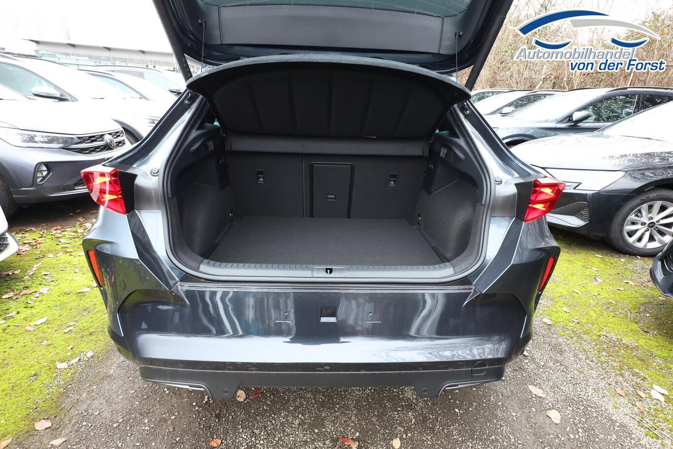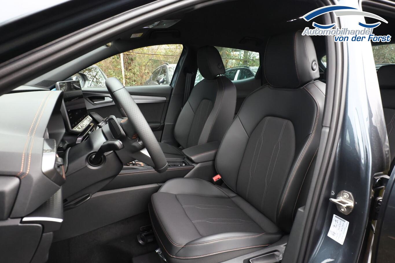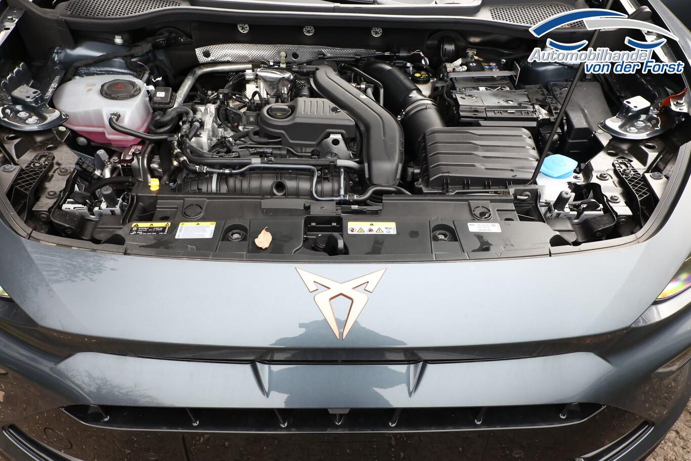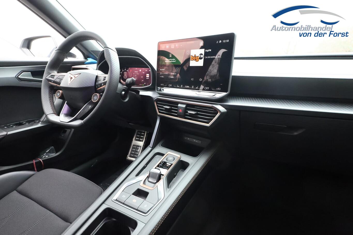 Edge-Paket (Ambiente-Beleuchtung LED / Ambiente-Beleuchtung Smart Ambient Light / Schließ-/Startsystem Kessy Advanced / Heckklappe/-Deckel elektr. betätigt (öffnen + schliessen, sensorgesteuert) / Rückfahrkamera / Diebstahl-Warnanlage mit Innenraumüberwachung und Abschleppschutz), Winter-Paket (Sitzheizung vorn), Anhängerkupplung Vorbereitung, Ablagetaschen an Vordersitzlehnen, Anschlussgarantie (3 Jahre / 100.000 km), Audio-Infotainmentsystem mit Touchscreen Farbbildschirm 12,9", Fahrassistenz-System: Ausweich- und Abbiegeassistent, Induktionsladeschale für Smartphone, Knieairbag vorn, LM-Felgen 8x18, Navigation in Verbindung mit dem Smartphone (über Apple Carplay / Android Auto /...), Navigationssystem Vorbereitung, Pedale Aluminium-Design, Reifen 245/45 R18, Schadstoffarm nach Abgasnorm Euro 6e (EU6 EA), Sprachsteuerungs-System, Tagfahrlicht, Wegfahrsperre elektrisch, Licht- und Sicht-Paket (Innenspiegel mit Abblendautomatik / Einschaltautomatik für Fahrlicht / Licht- und Regensensor / Lichtassistent (Coming Home, Leaving Home)), Voll-LED-Paket (Leuchtweitenregelung automatisch / Heckleuchten Voll-LED mit dynamischem Lichtband (Infinite Light) / Nebelscheinwerfer LED mit Abbiegelicht / Scheinwerfer Voll-LED), Abdeckkappen Außenspiegel Schwarz, Dachhimmel schwarz, Einstiegsleisten vorn beleuchtet, Fensterzierleisten schwarz, Gepäck-/Laderaumboden doppelt, Karosserie: 5-türig, Kombiinstrument digital (virtual cockpit), Lendenwirbelstütze Sitz vorn links, verstellbar, Lendenwirbelstütze Sitz vorn rechts, verstellbar, Leseleuchten hinten LED, Leseleuchten vorn LED, Mild-Hybrid 110 kW (Motor 1,5 Ltr. - 110 kW eTSI), Otto-Partikelfilter (OPF), Parkbremse elektrisch mit Auto-Hold-Funktion, Radioempfang digital (DAB+), Sitz vorn links höhenverstellbar, Sitz vorn rechts höhenverstellbar, Sitzbezug / Polsterung: Stoff/Kunstleder schwarz (Sharp Textil), Sonnenblende links mit Spiegel (beleuchtet), Sonnenblende rechts mit Spiegel (beleuchtet), Steckdose 230V im Gepäckraum, Warnanlage für Sicherheitsgurt-System, Full Link (MirrorLink, Apple CarPlay und Android Auto), USB-Ladeanschlüsse (2-fach, Typ C) für 2.Sitzreihe, USB-Schnittstelle vorn (2-fach, Typ C), Antriebsart: Frontantrieb, Elektron. Differentialsperre (XDS), Getriebe 7-Gang - Doppelkupplungsgetriebe DSG, Klimaanlage Climatronic 3-Zonen, Airbag Beifahrerseite abschaltbar, Airbag Fahrer-/Beifahrerseite, Fensterheber elektrisch vorn + hinten mit Komfortschaltung, Isofix-Aufnahmen für Kindersitz an Beifahrersitz und Rücksitz (inkl. i-Size-Kindersitze), Kopf-Airbag-System, Mittelarmlehne vorn, Rücksitzlehne geteilt/klappbar mit Mittelarmlehne und Durchladeeinrichtung, Seitenairbag, Seitenairbag vorn mitte (Central Airbag), Seitenscheiben ab 2.Sitzreihe und Heckscheibe dunkel getönt (Privacy Glass), Fahrassistenz-System: Fahrprofilauswahl (CUPRA Drive Profile), Dachreling schwarz, hochglänzend, Wärmeschutzverglasung, Fahrassistenz-System: Autom. Distanzregelung (ACC / PCC) mit vorausschauender Geschw.-Regelung, Fahrassistenz-System: Verkehrszeichenerkennung, Notrufsystem, Lenkrad heizbar (CUPRA Supersport, Leder) mit Multifunktion und Schaltfunktion, Außenspiegel elektr. verstell-, heiz- und anklappbar mit Spiegelabsenkung und Welcome Light, Fahrassistenz-System: Fernlichtassistent, Einparkhilfe vorn und hinten, Fahrassistenz-System: Müdigkeitserkennung, Fahrassistenz-System: Spurhalteassistent, Fahrassistenz-System: Umfeldbeobachtungssystem (Front assist) mit City-Notbremsfunktion, Reifenkontroll-Anzeige, Start/Stop-Anlage