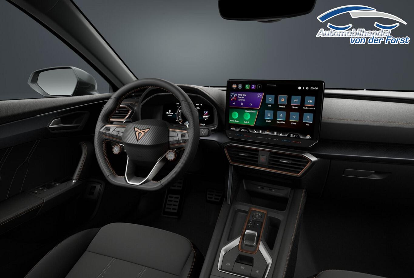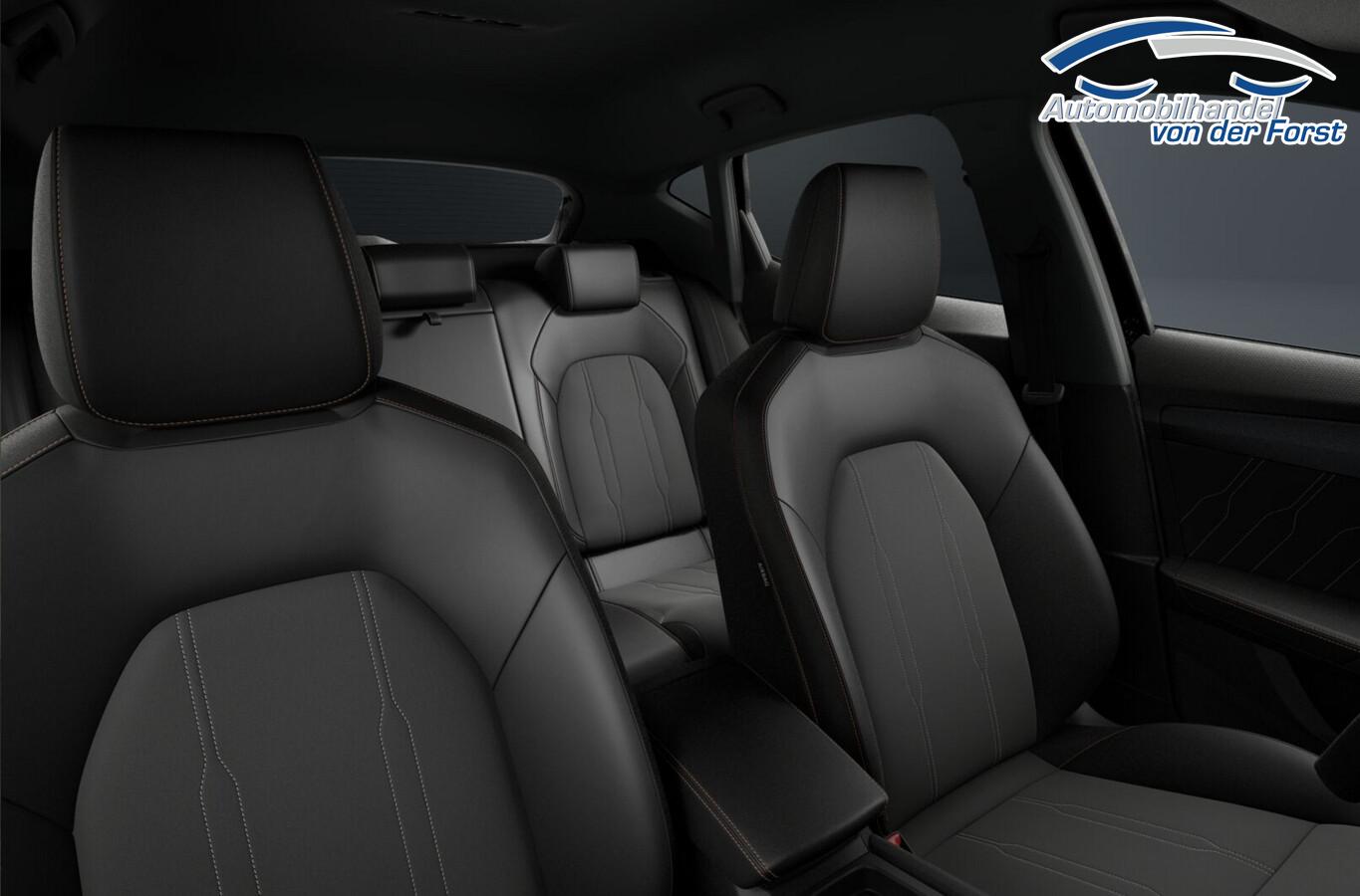 Intelligent-Drive-Paket (Fahrassistenz-Paket XL / Kamerasystem Umgebungsansicht (Top View, 360°) / Fahrassistenz-System: Totwinkel-Assistent mit Auspark-Assistent, Spurwechselassistent und Ausstiegswarnung / Fahrassistenz-System: Intelligent Park Assist (IPA) / Fahrassistenz-System: Pre-Crash-System / Fahrassistenz-System: Spurhalteassistent Plus inkl. Travel Assist, Emergency Assist und Stauassistent), LM-Felgen 8x19 (Sandstorm, schwarz / silber, glanzgedreht), Ablagetaschen an Vordersitzlehnen, Ambiente-Beleuchtung Smart Ambient Light, Audio-Navigationssystem mit Touchscreen Farbbildschirm 12,9", Diebstahl-Warnanlage mit Innenraumüberwachung und Abschleppschutz, Edge-Paket, Fahrassistenz-System: Ausweich- und Abbiegeassistent, Heckklappe/-Deckel elektr. betätigt (öffnen + schliessen, sensorgesteuert), Induktionsladeschale für Smartphone, Reifen 245/40 R19, Schließ-/Startsystem Kessy Advanced, Seitenairbag vorn, Start-/Stop-Anlage mit Rekuperation, Licht- und Sicht-Paket (Innenspiegel mit Abblendautomatik / Einschaltautomatik für Fahrlicht / Licht- und Regensensor / Lichtassistent (Coming Home, Leaving Home)), Voll-LED-Paket (Leuchtweitenregelung automatisch / Heckleuchten Voll-LED mit dynamischem Lichtband (Infinite Light) / Nebelscheinwerfer LED mit Abbiegelicht / Scheinwerfer Voll-LED), 6 Lautsprecher, Abdeckkappen Außenspiegel Schwarz, Dachhimmel schwarz, Einstiegsleisten vorn beleuchtet, Fensterzierleisten schwarz, Gepäck-/Laderaumboden doppelt, Innenausstattung: Interieurleisten Copper, Karosserie: 5-türig, Kombiinstrument digital (virtual cockpit), Lendenwirbelstütze Sitz vorn links, verstellbar, Lendenwirbelstütze Sitz vorn rechts, verstellbar, Leseleuchten hinten LED, Leseleuchten vorn LED, Mobile Online Dienste Cupra Connect plus, Motor 2,0 Ltr. - 110 kW TDI, Parkbremse elektrisch mit Auto-Hold-Funktion, Radioempfang digital (DAB+), Sitz vorn links höhenverstellbar, Sitz vorn rechts höhenverstellbar, Sitzbezug / Polsterung: Stoff/Kunstleder schwarz (Sharp Textil), Sonnenblende links mit Spiegel (beleuchtet), Sonnenblende rechts mit Spiegel (beleuchtet), Steckdose 230V im Gepäckraum, Warnanlage für Sicherheitsgurt-System, Full Link (MirrorLink, Apple CarPlay und Android Auto), USB-Ladeanschlüsse (2-fach, Typ C) für 2.Sitzreihe, USB-Schnittstelle vorn (2-fach, Typ C), Antriebsart: Frontantrieb, Differentialsperre (Vorderachse), Elektron. Differentialsperre (XDS), Getriebe 7-Gang - Doppelkupplungsgetriebe DSG, Klimaanlage Climatronic 3-Zonen, Airbag Beifahrerseite abschaltbar, Airbag Fahrer-/Beifahrerseite, Fensterheber elektrisch vorn + hinten mit Komfortschaltung, Isofix-Aufnahmen für Kindersitz an Beifahrersitz und Rücksitz (inkl. i-Size-Kindersitze), Kopf-Airbag-System, Mittelarmlehne vorn, Rücksitzlehne geteilt/klappbar mit Mittelarmlehne und Durchladeeinrichtung, Seitenairbag vorn mitte (Central Airbag), Seitenscheiben ab 2.Sitzreihe und Heckscheibe dunkel getönt (Privacy Glass), Sportsitze vorn, Fahrassistenz-System: Fahrprofilauswahl (CUPRA Drive Profile), Dachreling schwarz, hochglänzend, Fahrassistenz-System: Autom. Distanzregelung (ACC / PCC) mit vorausschauender Geschw.-Regelung, Fahrassistenz-System: Verkehrszeichenerkennung, Notrufsystem, Lenkrad heizbar (CUPRA Supersport, Leder) mit Multifunktion und Schaltfunktion, Außenspiegel elektr. verstell-, heiz- und anklappbar mit Spiegelabsenkung und Welcome Light, Fahrassistenz-System: Fernlichtassistent, Einparkhilfe vorn und hinten, Fahrassistenz-System: Müdigkeitserkennung, Fahrassistenz-System: Umfeldbeobachtungssystem (Front assist) mit City-Notbremsfunktion, Reifenkontroll-Anzeige, Rußpartikelfilter, Start/Stop-Anlage