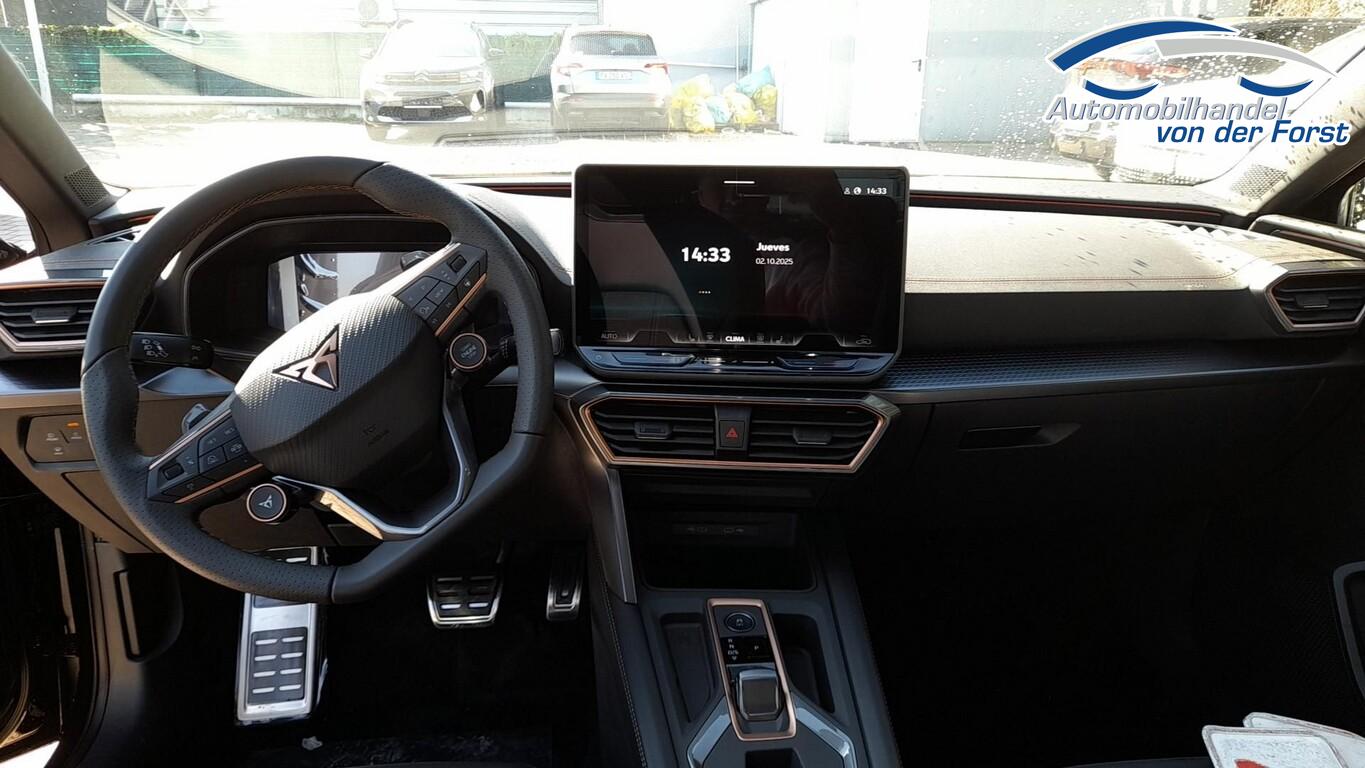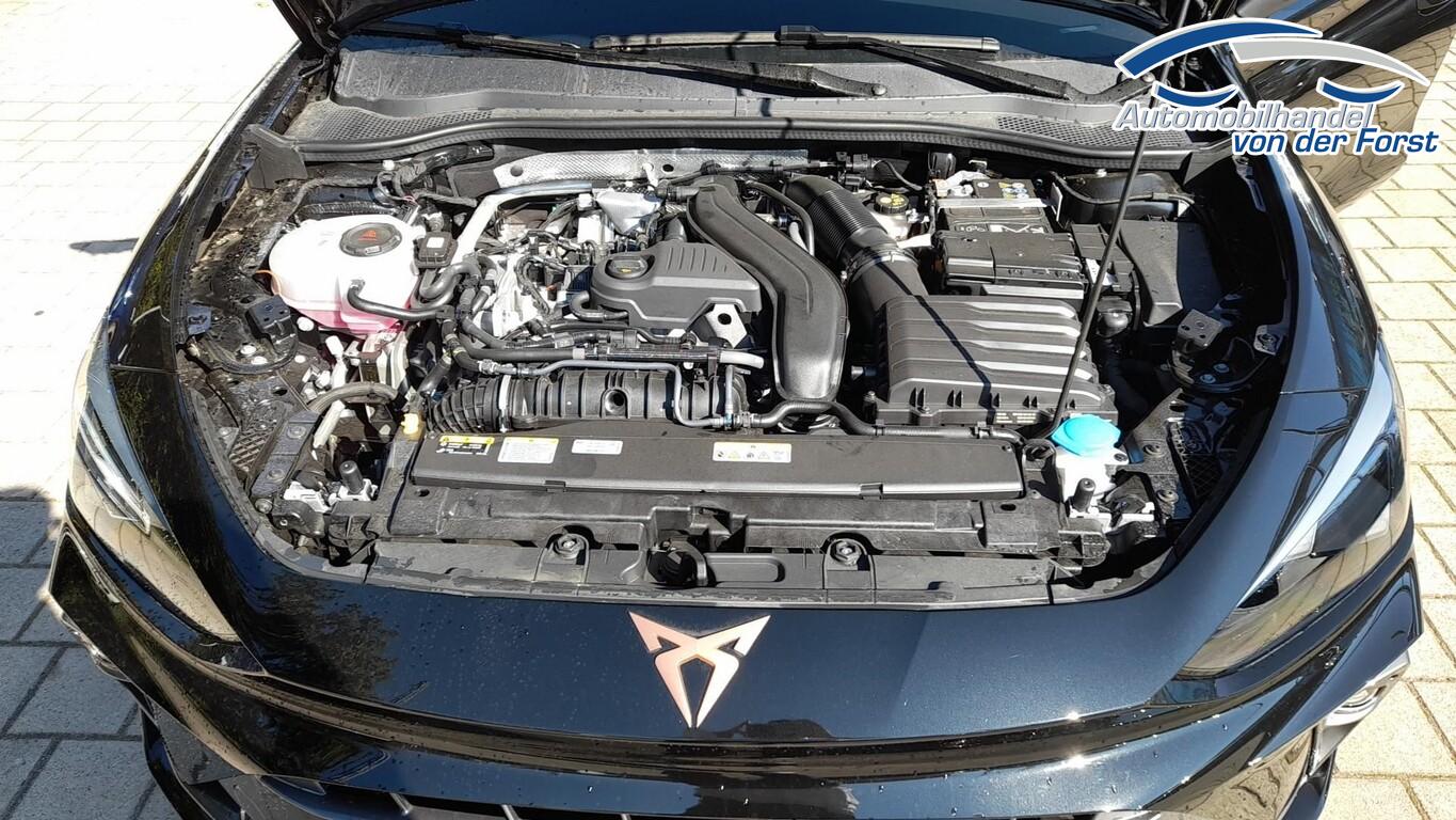 Intelligent-Drive-Paket II (Fahrassistenz-Paket XL / Mobile Online Dienste Cupra Connect plus / Audio-Navigationssystem mit Touchscreen Farbbildschirm 12,9" / Fahrassistenz-System: Totwinkel-Assistent mit Auspark-Assistent, Spurwechselassistent und Ausstiegswarnung / Fahrassistenz-System: Intelligent Park Assist (IPA) / Fahrassistenz-System: Pre-Crash-System / Fahrassistenz-System: Spurhalteassistent Plus inkl. Travel Assist, Emergency Assist und Stauassistent), Skyline-Paket (Panorama Schiebe-/Hebedach elektrisch), Matrix-LED-Scheinwerfer mit LED-Signatur, Edge-Paket (Ambiente-Beleuchtung LED / Ambiente-Beleuchtung Smart Ambient Light / Schließ-/Startsystem Kessy Advanced / Heckklappe/-Deckel elektr. betätigt (öffnen + schliessen, sensorgesteuert) / Rückfahrkamera / Diebstahl-Warnanlage mit Innenraumüberwachung und Abschleppschutz), Winter-Paket (Sitzheizung vorn), Anhängerkupplung Vorbereitung, Reserverad als Notrad, Fahrassistenz-System: Multikollisionsbremse, Heckleuchten LED mit dynamischem Blinklicht, Induktionsladeschale für Smartphone (15W), Isofix-Aufnahmen für Kindersitz an Rücksitz, LM-Felgen 7,5x18 (Garbi), Nebelscheinwerfer LED mit Abbiegelicht, Pedale Aluminium, Reifen 225/40 R18, Schadstoffarm nach Abgasnorm Euro 6e (EU6 EA), Licht- und Sicht-Paket (Innenspiegel mit Abblendautomatik / Einschaltautomatik für Fahrlicht / Licht- und Regensensor / Lichtassistent (Coming Home, Leaving Home)), Abdeckkappen Außenspiegel Dark Aluminium, Connectivity-Box, Dachhimmel schwarz, Einstiegsleisten vorn beleuchtet, Fensterzierleisten schwarz hochglänzend, Gepäck-/Laderaumboden doppelt, Gepäckraum-Abtrennung (Netz), Karosserie: 5-türig, Kombiinstrument digital (virtual cockpit), Leseleuchten hinten LED, Leseleuchten vorn LED, Mild-Hybrid 110 kW (Motor 1,5 Ltr. - 110 kW eTSI), Mobile Online Dienste Cupra Connect, Parkbremse elektrisch mit Auto-Hold-Funktion, Radioempfang digital (DAB+), Sitzbezug / Polsterung: Stoff/Kunstleder schwarz (Sharp Textil), Warnanlage für Sicherheitsgurt-System, Full Link (MirrorLink, Apple CarPlay und Android Auto), USB-Ladeanschlüsse (2-fach, Typ C) für 2.Sitzreihe, USB-Schnittstelle vorn (2-fach, Typ C), Antriebsart: Frontantrieb, Elektron. Differentialsperre (XDS), Getriebe 7-Gang - Doppelkupplungsgetriebe DSG, Klimaanlage Climatronic 3-Zonen, Airbag Beifahrerseite abschaltbar, Airbag Fahrer-/Beifahrerseite, Fensterheber elektrisch vorn + hinten mit Komfortschaltung, Kopf-Airbag-System, Mittelarmlehne vorn, Rücksitzlehne geteilt/klappbar mit Mittelarmlehne und Durchladeeinrichtung, Seitenairbag vorn mitte (Central Airbag), Seitenscheiben ab 2.Sitzreihe und Heckscheibe dunkel getönt (Privacy Glass), Sportsitze vorn, Fahrassistenz-System: Fahrprofilauswahl (CUPRA Drive Profile), Dachreling schwarz, hochglänzend, Fahrassistenz-System: Autom. Distanzregelung (ACC / PCC) mit vorausschauender Geschw.-Regelung, Fahrassistenz-System: Verkehrszeichenerkennung, Lenkrad heizbar (CUPRA Supersport, Leder) mit Multifunktion und Schaltfunktion, Progressivlenkung, Außenspiegel elektr. verstell-, heiz- und anklappbar mit Spiegelabsenkung und Welcome Light, Fahrassistenz-System: Fernlichtassistent, Einparkhilfe vorn und hinten, Fahrassistenz-System: Müdigkeitserkennung, Fahrassistenz-System: Umfeldbeobachtungssystem (Front assist) mit City-Notbremsfunktion, Reifenkontroll-Anzeige