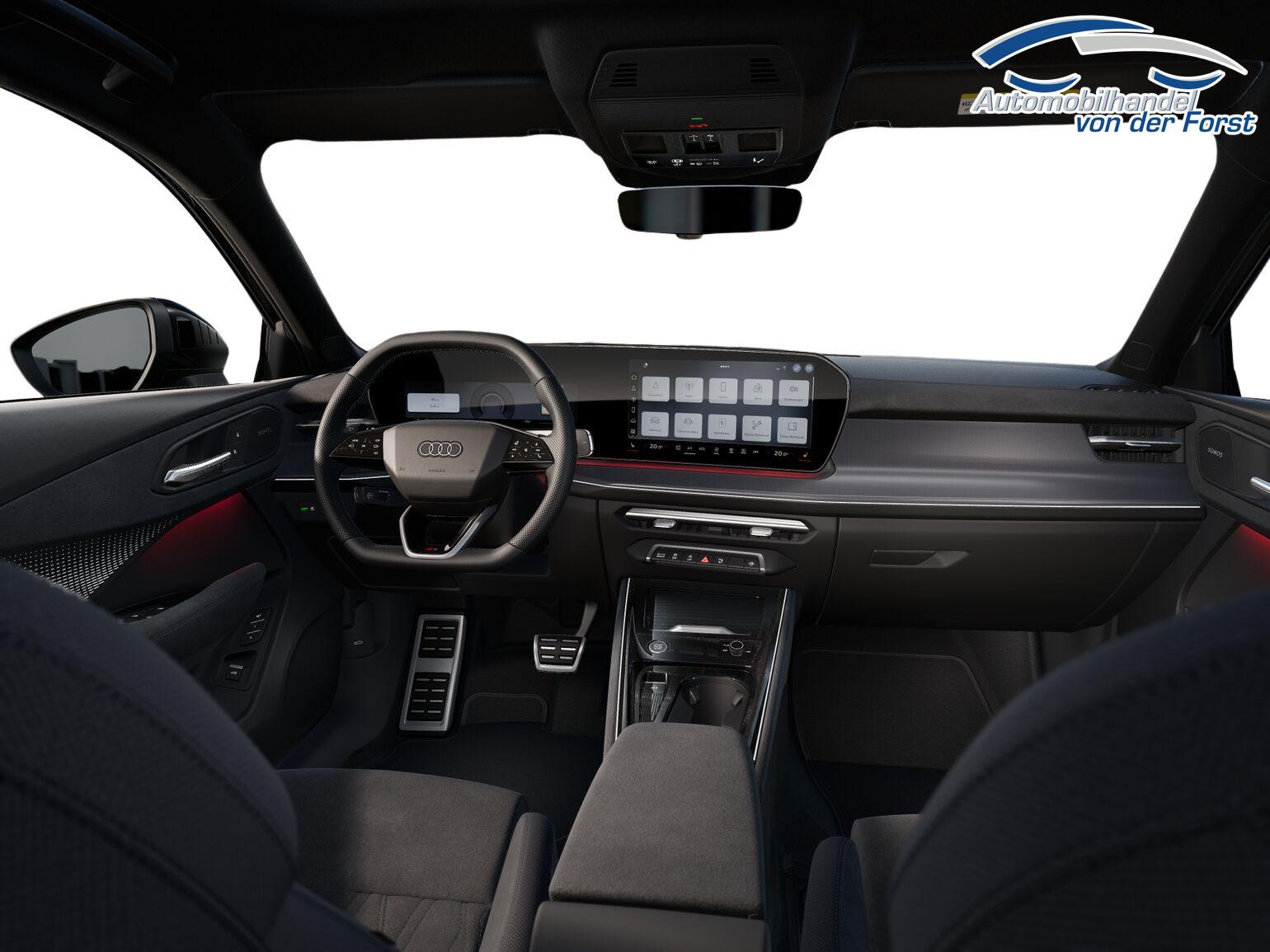 • Interieur S line mit Sportsitzen Mikrofaser (Sportsitze vorn, Sitzmittelbahnen in Mikrofaser Schwarz, Sitzseitenwangen und Kopfstützen in Stoff, Kontrastnähte in Grau, Vordersitze in Rautenmuster, Mikrofaser Dinamica, Ambientebeleuchtung Pro, Ladekantenschutz in Edelstahl, Pedale in Edelstahl)