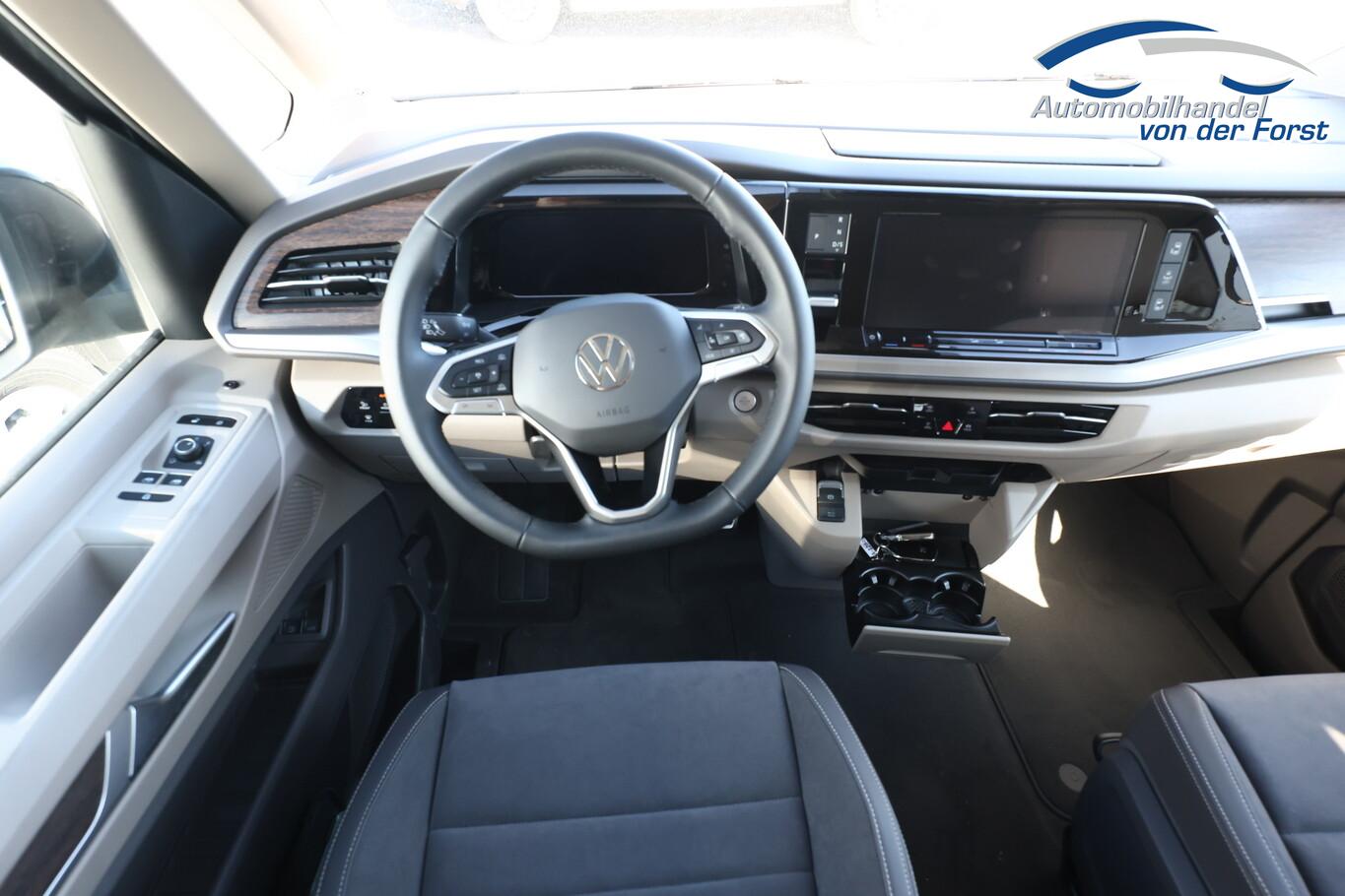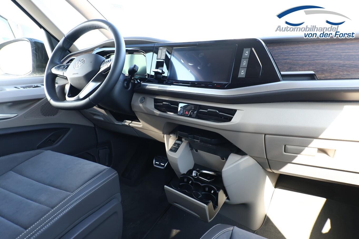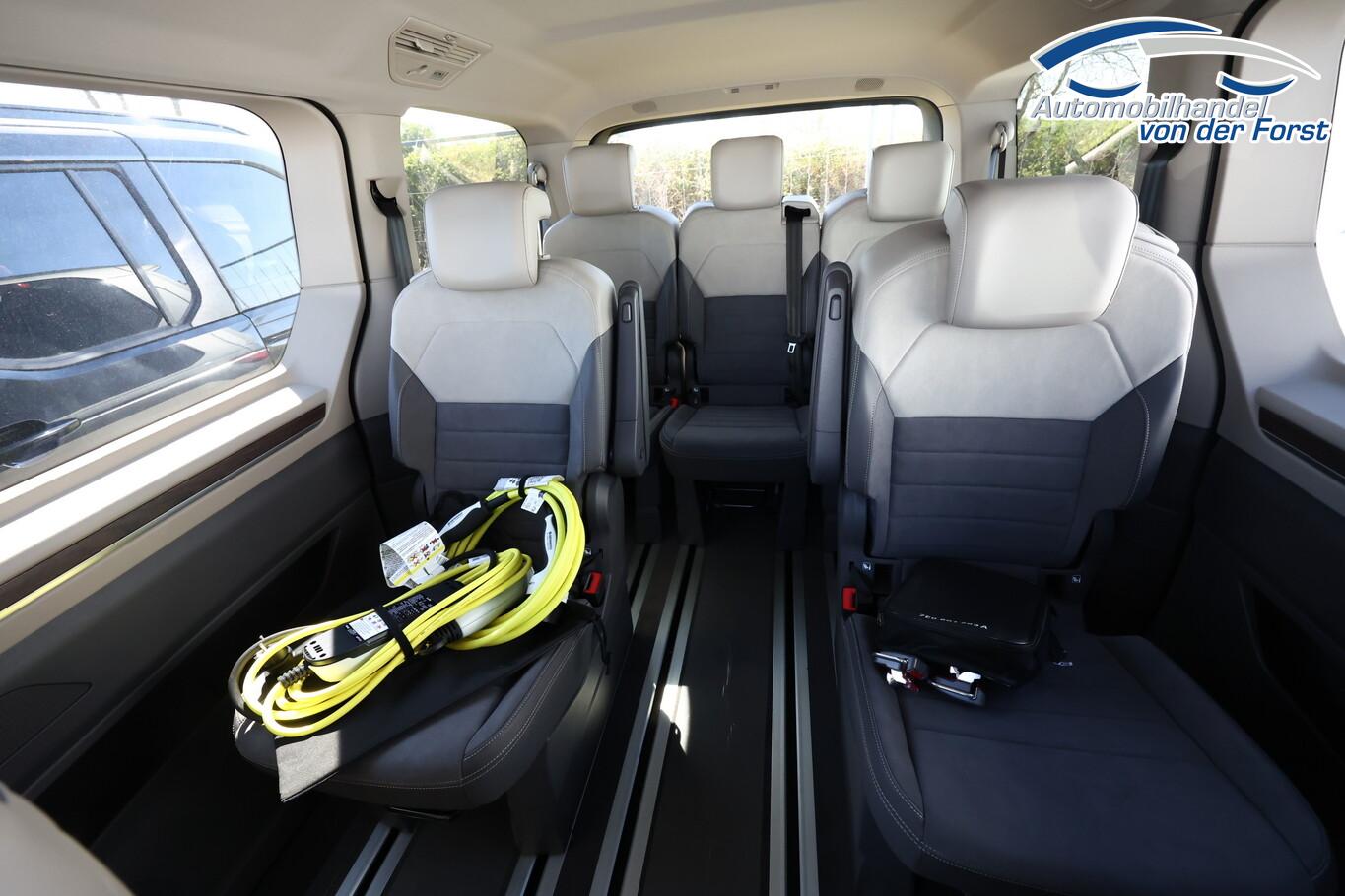 Audio-Navigationssystem Discover Pro (Touchscreen-Farbdisplay 10", inkl. Streaming & Internet), Fahrassistenz-Paket Basic (Service-System: Intelligente Fahrzeugvernetzung (Car2X) / Fahrassistenz-System: Autom. Distanzregelung (ACC inkl. Stop&Go-Funktion) / Fahrassistenz-System: Spurwechselassistent (Side Assist) mit Auspark-Assistent und Ausstiegswarnung), Heckklappe elektr. betätigt (öffnen + schliessen) (Servoschliessung Heckklappe), Schließ-/Startsystem Keyless Advanced mit Safesicherung, Verglasung hinten abgedunkelt (65 %), Schmutzfänger vorn und hinten, Blinkleuchten LED in Außenspiegel integriert, Fensterheber elektrisch vorn, Handschuhfach abschließbar, Reifen 235/55 R17, Sitz-Paket: 7-Sitzer, 2-2-3 (2 Einzelsitze, 2 Einzelsitze, 3 Einzelsitze), Sprachsteuerungs-System, Wegfahrsperre (elektronisch), Zusatzheizung, Mobile Online Dienste Vorbereitung We Connect und We Connect Plus (Vorbereitung Onlinedienste), Außenspiegel schwarz lackiert, Bodenbelag im Lade-/Fahrgastraum Teppich, Chromleisten seitlich und Heckklappe unten, Digital Cockpit Pro (Instrumentenanzeige Digital), Elektromotor 85 kW (Hybridantrieb), Fahrassistenz-System: Ausweich-Assistent und Abbiege-Assistent, Fenster im Lade-/FG-Raum: - feststehend, vorn links, Fenster im Lade-/FG-Raum: - feststehend, vorn rechts, Frontscheibe Verbundglas getönt, Funkschlüssel (2), Handschuhfach beleuchtet, Hybrid 180 kW (Motor 1,5 Ltr. - 130 kW TSI), Innenausstattung: Dekoreinlagen Dark Woodgrain Optic, Innenleuchtenkonzept im Fahrgastraum, Innenspiegel mit Abblendautomatik, Intelligent Speed Assist inkl. Geschwindigkeitsbegrenzer, Karosserie/Aufbau: Bus, Ladekantenabdeckung in Kunststoff, mit Edelstahleinsatz, Laderaumunterteilung und Gepäcksicherungsnetz, Lautsprecher (8), Lichtleiste zwischen Scheinwerfer, Mobile Online Dienste App-Connect inkl. App-Connect Wireless (Apple CarPlay, Android Auto), Otto-Partikelfilter (OPF), Pedale Edelstahl, Radioempfang digital (DAB+), Radstand 3124 mm, Schlechtwetter-Licht, Schubladen unter Rücksitze außen und 2 Abfallbehälter, Sitzbezug / Polsterung: ArtVelours / Kunstleder, Sitze im Fahrerhaus: 4 Armlehnen, Lendenwirbelstützen elektr. und Klapptische, Sitze im Fahrerhaus: Fahrersitz höhenverstellbar, Sitze im Lade-/FG-Raum: 1.Reihe mit 2 Armlehnen innen (abnehmbar), Sitze im Lade-/FG-Raum: 2.Reihe mit Vorbereitung für 2 Armlehnen innen, Sonnenblenden mit Spiegel (beleuchtet), Umfeldbeleuchtung seitlich mit Projektionsfunktion, Umfeldleuchte in Heckklappe und Ambiente-Beleuchtung (30 Farben), Warnanlage für Sicherheitsgurte vorn und hinten, Zul. Gesamtgewicht 2,95 t, Mobiltelefon Schnittstelle Bluetooth, Multimedia-Schnittstelle 2 x USB vorn und 4 x USB-Ladeanschluß Fahrgastraum (Typ C), Anti-Blockier-System (ABS), Fahrassistenz-System: Bremsassistent (HBA), Antriebsart: Allradantrieb, Elektron. Stabilitäts-Programm (ESP) mit Bremskraftverstärker elektro-mechanisch, LM-Felgen 6,5x17 (Dundrod, schwarz glanzgedreht), Getriebe 6-Gang - Doppelkupplungsgetriebe DSG, Klimaanlage Climatronic 3-Zonen inkl. Fondbedienung, Airbag Fahrer-/Beifahrerseite, Beifahrerairbag abschaltbar, Seitenairbag / Kopfairbag / Center-Airbag vorn und Kopfairbag hinten, Sitze im Fahrerhaus: Fahrer- und Beifahrersitz heizbar, Schiebetür Lade-/Fahrgastraum links elektr. betätigt, Schiebetür Lade-/Fahrgastraum rechts elektr. betätigt, Fahrassistenz-System: Verkehrszeichenerkennung, Rückfahrkamera, Notrufsystem, Lenkrad (Leder) mit Multifunktion und Schaltfunktion, Servolenkung elektro-mechanisch, geschwindigkeitsabhängig, Fahrassistenz-System: Dynamische Fernlichtregulierung (Dynamic Light Assist), Matrix-LED-Scheinwerfer (IQ.Light), Regensensor, Tagfahrlicht und Assistenzfahrlicht mit Coming Home / Leaving Home, Fahrassistenz-System: Parklenkassistent (Park Assist) inkl. Einparkhilfe vorn und hinten, Fahrassistenz-System: Ablenkungs- und Müdigkeitserkennung, Fahrassistenz-System: Spurhalteassistent (Lane Assist), Reifenkontroll-Anzeige, Diebstahl-Warnanlage + Innenraumüberwachung / Abschleppschutz + Back-up-Horn