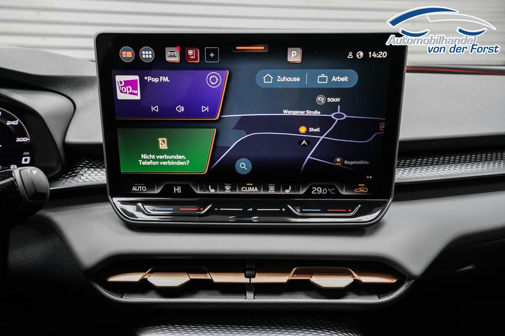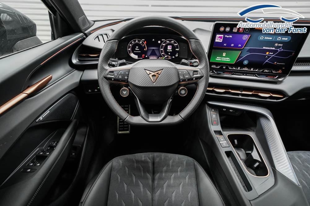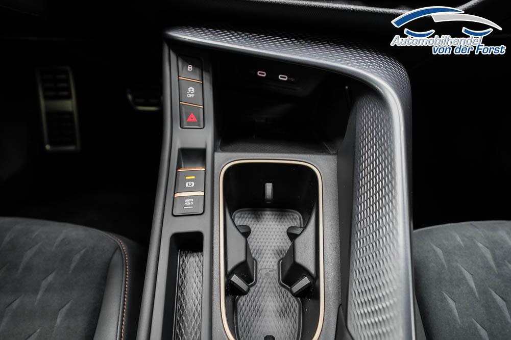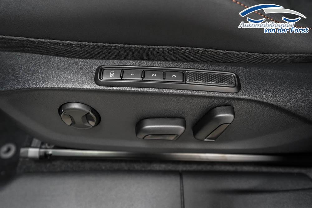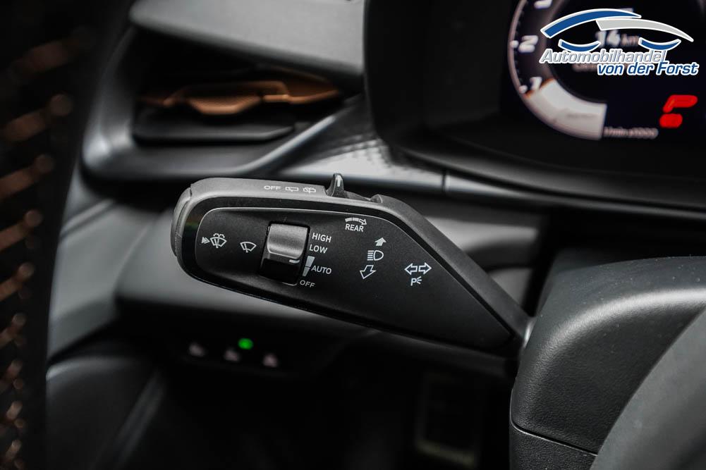 Beifahrersitz höhenverstellbar, Fahrersitz höhenverstellbar, Lederlenkrad, Lendenwirbelstütze, Mittelarmlehne vorne, Sportsitze, Gepäckraumabdeckung, geteilt umklappbare Rücksitzlehne, Lenkrad höhenverstellbar, Sitzbezug Dinamica, Ambiente-Beleuchtung, Elektrisch verstellbarer Fahrersitz mit Memory Funktion, Beheizbares Lenkrad, Multifunktionslenkrad, Isofix, Isofix Beifahrersitz, abgedunkelte Scheiben, 20 Zoll Alufelgen Hadron Kupfer, Dachreling schwarz, Außenspiegel in Wagenfarbe, Stoßfänger in Wagenfarbe, Türgriffe in Wagenfarbe, ABS, Alarmanlage, Außenspiegel elektrisch anklappbar, Fensterheber elektrisch, Kopfairbags, Nebelscheinwerfer, Schiebedach, Seitenairbags, Servolenkung, Sitzheizung, DCC, ESP, Standheizung, Wegfahrsperre, Zentralverriegelung mit Funk, Außenspiegel beheizbar, Beifahrerairbag, Fahrerairbag, Parkpilot hinten, Parkpilot vorne, Reifendruckkontrolle, Head-up Display, Regensensor, Lichtsensor, Digital Cockpit, Tempomat Abstand ACC, Fernlichtassistent, Spurhalteassistent plus, Totwinkelassistent, Verkehrszeichenerkennung, LED Matrix Scheinwerfer, Tagfahrlicht, Pannenset, Rückfahrkamera, Park-Assistent, Panoramadach, Elektrische Heckklappe inkl. Virtual Pedal, KeylessEntry, StartStopSystem, Innenspiegel automatisch abbl., Müdigkeitswarnsystem, Notrufsystem, Schaltwippen, Klimaautomatik 3-Zonen, 360-Grad-Kamera, Geschwindigkeitsbegrenzer, Android Auto, Apple Carplay, Freisprecheinrichtung, Induktionsladestation, Sprachsteuerung, USB, Radio DAB, Bluetooth, Bordcomputer, Radio-Navigationssystem, IMMERSIVE by Sennheiser, variabler Ladeboden, Full Link, AHK Vorbereitung, erweiterte Herstellergarantie 5 Jahre/100.000km, Schalensitze vorn, Exit Assist,