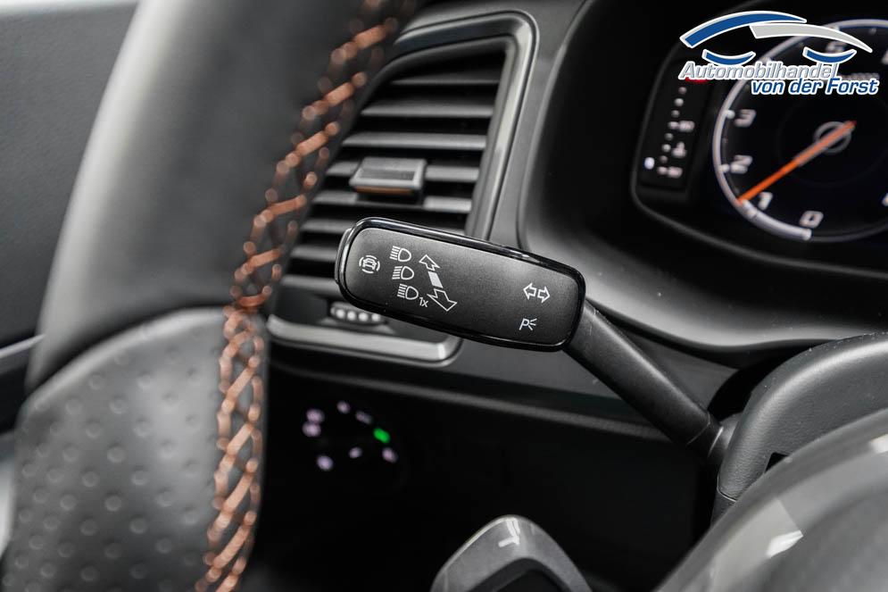 Beifahrersitz höhenverstellbar, Fahrersitz höhenverstellbar, Lederlenkrad, Lendenwirbelstütze vorne, Mittelarmlehne vorne, Sitzbezug Stoff, Sport-Schalensitze vorne, geteilt umklappbare Rücksitzlehne, Lenkrad höhenverstellbar, Ambiente-Beleuchtung, Beheizbares Lenkrad, Multifunktionslenkrad, Isofix, abgedunkelte Scheiben, 19 Zoll Alufelgen schwarz/silber, Dachreling schwarz, Stoßfänger in Wagenfarbe, Türgriffe in Wagenfarbe, ABS, Außenspiegel elektrisch einstell-/anklappbar, Fensterheber elektrisch, Klimaautomatik, Kopfairbags, Nebelscheinwerfer mit Abbiegelicht, Seitenairbags vorne, Servolenkung, Sitzheizung vorne, DCC, ESP, Wegfahrsperre, Zentralverriegelung mit Funk, Außenspiegel beheizbar, Beifahrerairbag, Fahrerairbag, Parkpilot hinten, Parkpilot vorne, Reifendruckkontrolle, Regensensor, Lichtsensor, Digital Cockpit, Anhängekupplung schwenkbar, Tempomat Abstand ACC, Fernlichtassistent, Notbremsassistent, Spurhalteassistent, Totwinkelassistent, Verkehrszeichenerkennung, LED-Scheinwerfer, LED-Tagfahrlicht, Pannenset, Rückfahrkamera, Elektrische Heckklappe inkl. Virtual Pedal, Kessy, StartStopSystem, Winterpaket, Berganfahrassistent, Müdigkeitswarnsystem, Notrufsystem, Schaltwippen, 360-Grad-Kamera, Geschwindigkeitsbegrenzer, Android Auto, Apple Carplay, Freisprecheinrichtung, Induktionsladestation, Touchscreen, USB Typ-C, Radio DAB, Bluetooth, Bordcomputer, Navigationssystem, Full Link, Sitzbezug Dinamica, 5 Jahre bis max. 100.000km Herstellergarantie, LED-Rückleuchten, 8 Lautsprecher, Fahrprofilauswahl, Dachhimmel schwarz, Travel Assist, Stau- und Notfallassistent,