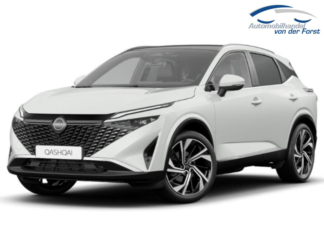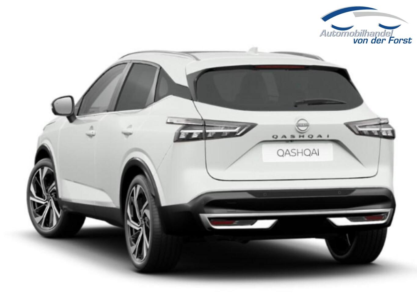 LM-Felgen 8x20, Allradlenkung, Garantie 3 Jahre oder 100.000 km, Interieur Dekor in Alcantara, Mehrlenker-Hinterradaufhängung, Mittelkonsole mit Ablagefach, Reifen 235/45 R20, Sicherheitsgurt-Kontrollsystem, Sitz vorn links mit Massagefunktion, Sitzbezug / Polsterung: Premium-Leder Nappa mit Alcantara-Einsätzen, Business-Paket (Induktionsladeschale für Smartphone / Heckklappe/-Deckel elektr. betätigt (Öffnung, sensorgesteuert)), Design-Paket (Dachreling silber / Panorama-Glasdach), Komfort-Paket (1) (Außenspiegel elektr. verstellbar, mit Memoryfunktion rechts / Lendenwirbelstütze Sitz vorn rechts / Sitz vorn links elektr. verstellbar (mit Memory) / Head-up-Display / Heckklappe/-Deckel elektr. betätigt (Öffnung, sensorgesteuert) / Außenspiegel elektr. verstellbar, mit Memoryfunktion links / Außenspiegel mit autom. Absenkfunktion), Sound-System BOSE Premium (10 Lautsprecher), Technologie-Paket Getriebe Automatik (Fahrassistenz-System: Autonomer Lenk-Assistent für selbstständiges Spurhalten / Fahrassistenz-System: ProPilot mit Navi-Link / Head-up-Display / Fahrassistenz-System: Autom. Distanzregelung mit vorausschauender Geschw.-Regelung / Fahrassistenz-System: Stauassistent inkl. Stop&Go-Funktion), Ausstattungs-Paket: Nissan Connect Navigationssystem mit Around View Monitor (Smartphone kabellose Schnittstelle (Apple CarPlay & Android Auto) / Sprachbediensystem Spracherkennung / Kamerasystem Around View / Service-System: Google Services / Service-System: Nissan Connect Services / Einparkhilfe vorn und hinten), Schließ-/Startsystem intelligent key (Keyless-Entry / Start-Stop-Knopf), Lenkrad (Leder) mit Multifunktion (Audiobedienung am Lenkrad), Winter-Paket (Lenkrad heizbar / Sitzheizung vorn / Frontscheibe heizbar), Ambiente-Beleuchtung erweitert, Gepäck-/Laderaum-Unterteilung (Flexi-Board), Geschwindigkeits-Begrenzeranlage, Innenspiegel mit Abblendautomatik, Instrumentenanzeige TFT-Farbdisplay (12,3 Zoll), Karosserie: 5-türig, Lendenwirbelstütze Sitz vorn links, elektr. verstellbar, Mild-Hybrid 116 kW (Motor 1,3 Ltr. - 116 kW DIG-T MHEV), Mittelarmlehne hinten mit Getränkehalter, Otto-Partikelfilter (OPF), Parkbremse elektrisch, Radstand 2666 mm, Schalt-/Wählhebelgriff Leder, Sitz vorn rechts mit Massagefunktion, Sonnenblenden mit Spiegel (beleuchtet), Stylingelement Stoßfänger vorn Chrom-Optik, Touchscreen-Farbdisplay (12,3 Zoll), Navigationssystem, USB-Anschluss im Fond, Anti-Blockier-System (ABS), Fahrassistenz-System: Moving Object Detection (MOD, Fußgängererkennung und bewegliche Objekterkennung), Antriebsart: Allradantrieb, Elektron. Stabilitäts-Programm (ESP), Getriebe Automatik stufenlos - X-Tronic-CVT, Klimaautomatik 2-Zonen, Airbag Fahrer-/Beifahrerseite, Fensterheber elektrisch vorn + hinten, Isofix-Aufnahmen für Kindersitz, Kopf-Airbag-System, Rücksitz geteilt/klappbar, Seitenairbag, Sitz vorn rechts elektr. verstellbar (mit Memory), Verglasung hinten abgedunkelt, Fahrmodusschalter, Around View Monitor (360° Umgebungsansicht), Auto-Hold-Funktion, Fahrassistenz-System: Auffahrwarnsystem (Forward Collision Warning, FCW), Fahrassistenz-System: Berganfahr-Assistent, Fahrassistenz-System: Verkehrszeichenerkennung, Geschwindigkeits-Regelanlage (Tempomat) mit Abstandsregelung, Fahrassistenz-System: Sicherheitssystem ERA GLONASS mit automatischem Notruf, Außenspiegel elektr. anklappbar, Außenspiegel elektr. verstell- und heizbar, Automatische Fahrlichtschaltung, Blinkleuchten LED in Außenspiegel integriert, Fahrassistenz-System: Adaptiver Fernlichtassistent, Fahrassistenz-System: Totwinkel-Assistent, Heckleuchten LED (Super rot), Scheibenwischer mit Regensensor, Scheinwerfer Voll-LED, Tagfahrlicht LED, Fahrassistenz-System: aktiver Spurhalteassistent, mit korrigierendem Bremseingriff, Fahrassistenz-System: Autonomer Notbrems-Assistent, Fahrassistenz-System: Müdigkeitserkennungs-Sensor, Fahrassistenz-System: Querverkehrs-Assistent Heck (Rear Cross Traffic Alert, RCTA), Reifendruck-Kontrollsystem, Diebstahl-Warnanlage