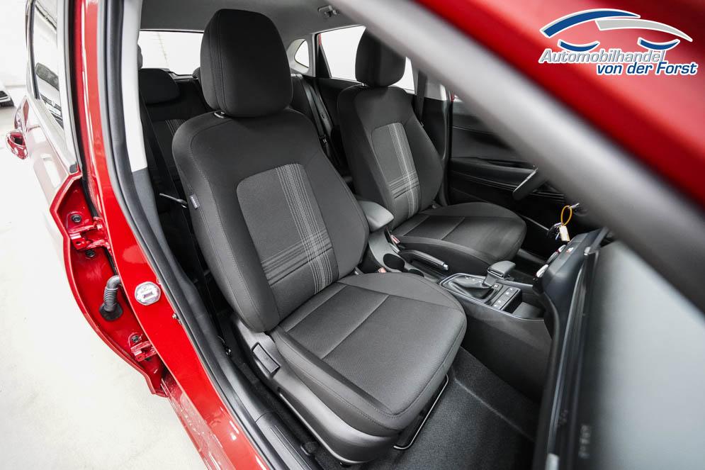 Fahrersitz höhenverstellbar, Lederlenkrad, Sitzbezug Stoff, Lenkrad höhenverstellbar, Beheizbares Lenkrad, Multifunktionslenkrad, Isofix, abgedunkelte Scheiben, 15 Zoll Stahlfelgen , Außenspiegel in Wagenfarbe, Stoßfänger in Wagenfarbe, ABS, Außenspiegel elektrisch, Fensterheber elektrisch, Klimaanlage, Kopfairbags, Seitenairbags, Servolenkung, Sitzheizung vorne, ESP, Tempomat, Wegfahrsperre, Zentralverriegelung mit Funk, Außenspiegel beheizbar, Beifahrerairbag, Fahrerairbag, Parkpilot hinten, Reifendruckkontrolle, Lichtsensor, Digitales Kombiinstrument, Fernlichtassistent, Spurhalteassistent, Verkehrszeichenerkennung, Tagfahrlicht, Rückfahrkamera, StartStopSystem, Winterpaket, Innenspiegel automatisch abbl., Müdigkeitswarnsystem, Notrufsystem, Geschwindigkeitsbegrenzer, Android Auto, Apple Carplay, Freisprecheinrichtung, USB, Bluetooth, Bordcomputer, Navigationssystem,