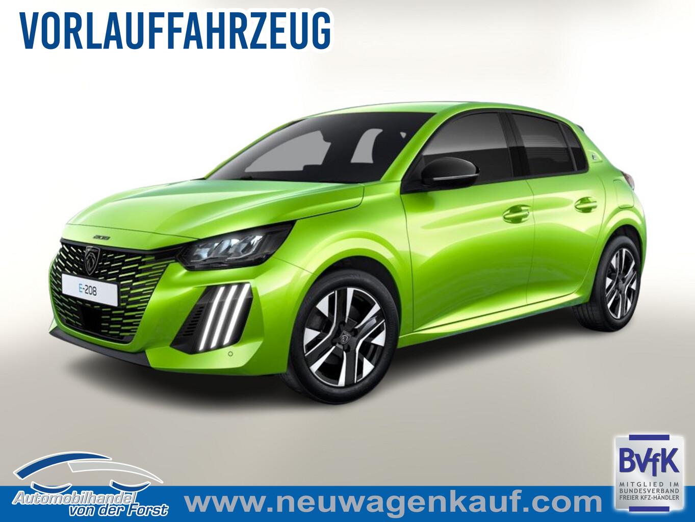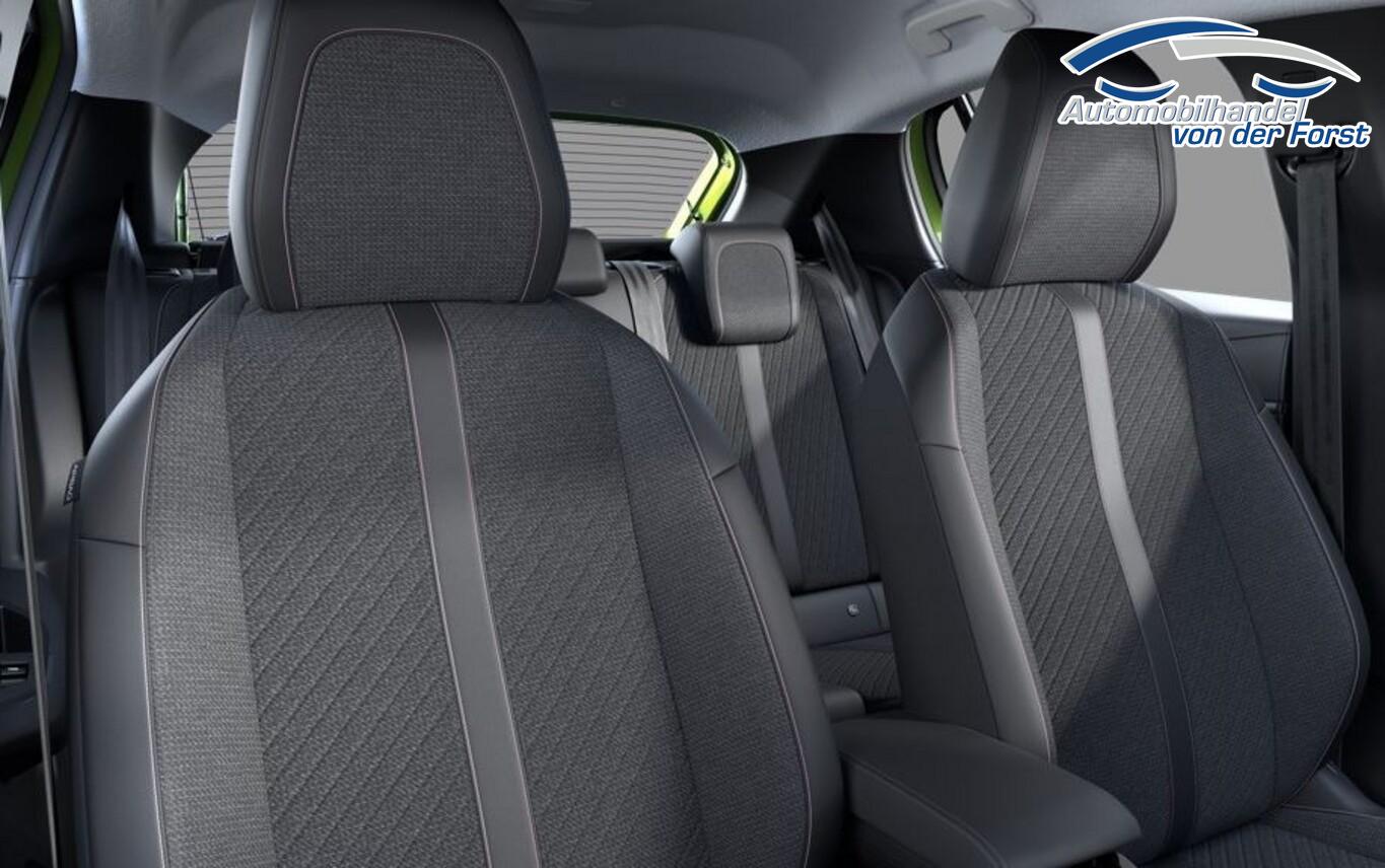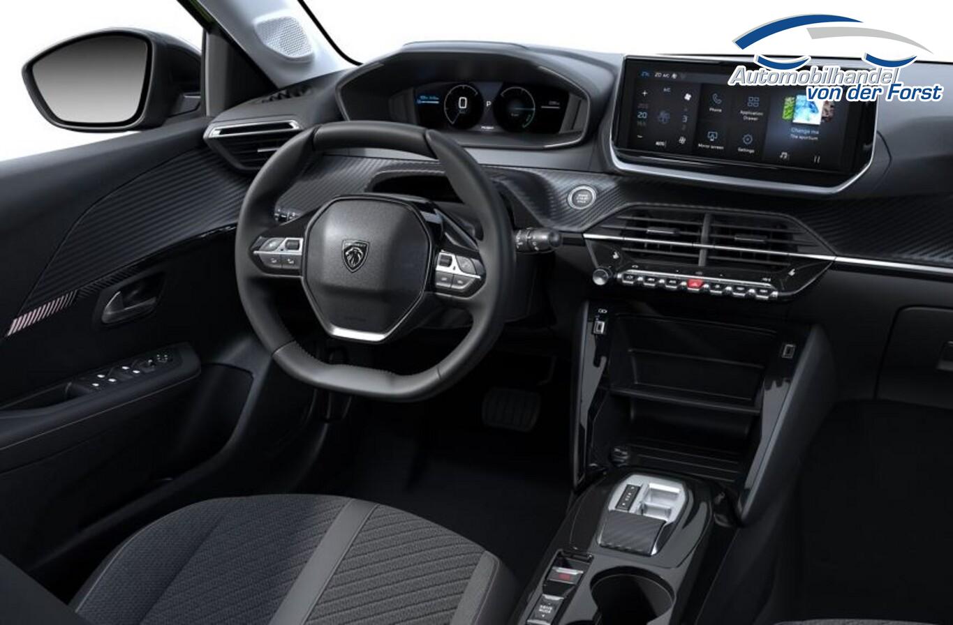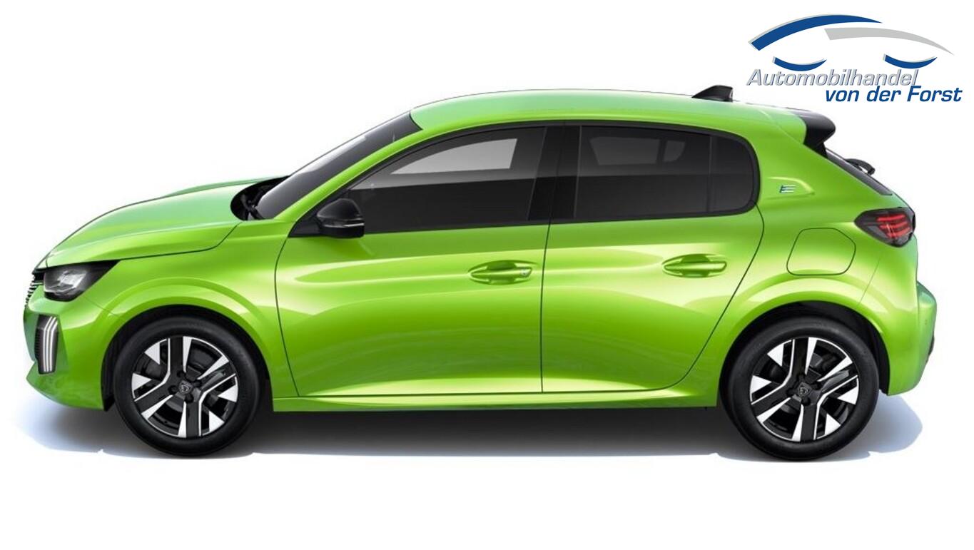 Zugangs-Paket (Induktionsladeschale für Smartphone / Zentralverriegelung / Startanlage Keyless System), Ladevorrichtung On-Board-Lader 11 kW, Reifen-Reparaturkit, 10"-HD-Touchscreen, 2x USB-Anschlus (Typ C), 3 Kopfstützen hinten, 6 Lautsprecher, Außenspiegel elektr. anklappbar, Fensterheber elektr. hinten, Freisprecheinrichtung Bluetooth, Gepäckraumbeleuchtung, Innenspiegel mit Abblendautomatik, Kindersicherung manuell, Kombiinstrument digital (10"), Kopf-Airbag-System vorn, Leseleuchten vorn, Leuchtweitenregulierung, LM-Felgen 16", Modelljahr 2025, Navigation in Verbindung mit dem Smartphone (über Apple Carplay / Android Auto /...), Reifen 195/55 R16, Scheibenwaschdüsen heizbar, Smartphone-Schnittstelle (Apple CarPlay & Android Auto), Sonnenblenden mit Spiegel, USB-Anschluss (Typ A), Wegfahrsperre (elektronisch), Komfort-Paket (Klimaautomatik / Scheibenwischer mit Regensensor), Radioempfang digital (DAB+) (Radioempfang digital), Fensterheber elektr. vorn, rechts mit Impulsgeber (Fensterheber elektrisch vorn rechts), Sitzbezug / Polsterung: Stoff/Kunstleder (Innenausstattung: Ziernähte farbig), Zentralverriegelung mit Fernbedienung (Fernbedienung für Zentralverriegelung), Außenspiegel elektr. verstell- und heizbar, beide (Außenspiegel elektr. verstell- und heizbar, links / Außenspiegel elektr. verstell- und heizbar, rechts), Akustischer Fußgängerschutz (Außensound), Außenspiegel mit Abdeckkappen schwarz, Elektr. Bremskraftverteilung, Elektrofahrzeug, Elektromotor 115 kW (cont. 62 kW), Frontscheibe geräuschdämmend, Heckspoiler, Infotainment-System i-Connect, Innenraumfilter: Staub- und Pollenfilter, Karosserie: 5-türig, Kartentasche an Vordersitze, Ladekabel mit Typ 2-Stecker (Mode 3), Parkbremse elektrisch, Pyrotechnischer Gurtstraffer, Sitz vorn links höhenverstellbar, Steckdose (12V-Anschluß) in Mittelkonsole, Türgriffe außen Wagenfarbe, Wärmepumpe zur Reichweitenoptimierung, Warnanlage für Sicherheitsgurte, Anti-Blockier-System (ABS), Fahrassistenz-System: Aktiver Notbrems-Assistent (Active Safety Brake), Antischlupfregelung (ASR), Elektron. Stabilitäts-Programm (ESP, Bosch), Getriebe für Elektrofahrzeug, Airbag Beifahrerseite abschaltbar, Airbag Fahrer-/Beifahrerseite, Fensterheber elektrisch vorn links, sequentiell, Isofix-Aufnahmen für Kindersitz, Kopf-Airbag-System hinten, Mittelarmlehne vorn, Seitenairbag vorn, Seitenscheiben hinten und Heckscheibe dunkel getönt, Sitzheizung vorn, Zentralverriegelung inkl. Türverriegelung automatisch, Bordcomputer, Fahrmodusschalter, Fahrassistenz-System: Berganfahrhilfe, Fahrassistenz-System: Verkehrszeichenerkennung, Geschwindigkeits-Regelanlage (Tempomat) inkl. Geschwindigkeits-Begrenzeranlage, Peugeot Connect-Box / SOS-Taste (Notruf für Lokalisierung Fahrzeug), Lenkrad (Leder), Lenkrad mit Multifunktion, Servolenkung elektrisch, Einschaltautomatik für Fahrlicht, Scheinwerfer Eco-LED, Tagfahrlicht LED, Einparkhilfe vorn und hinten, Fahrassistenz-System: aktiver Spurassistent (Lenkunterstützung), Fahrassistenz-System: Müdigkeitserkennungs-Sensor, Reifendruck-Kontrollsystem