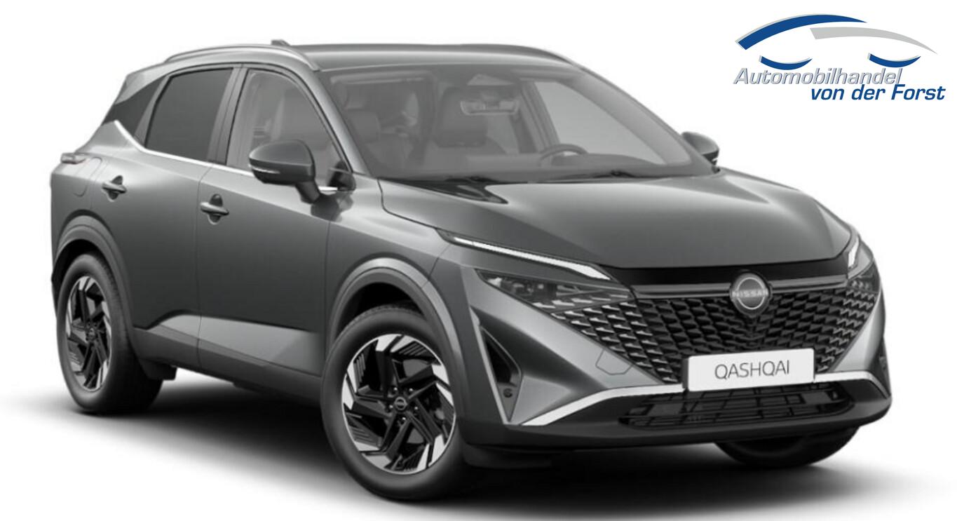 Technologie-Paket Getriebe Automatik (Fahrassistenz-System: Autonomer Lenk-Assistent für selbstständiges Spurhalten / Fahrassistenz-System: ProPilot mit Navi-Link / Head-up-Display / Fahrassistenz-System: Autom. Distanzregelung mit vorausschauender Geschw.-Regelung / Fahrassistenz-System: Stauassistent inkl. Stop&Go-Funktion), Komfort-Paket (Head-up-Display / Heckklappe/-Deckel elektr. betätigt (Öffnung, sensorgesteuert)), Design-Paket (Dachreling silber / Panorama-Glasdach), Winter-Paket (Lenkrad heizbar / Sitzheizung vorn / Frontscheibe heizbar), 6 Lautsprecher, Fahrassistenz-System: Notbrems-Assistent hinten, Gepäckraumboden variabel, Induktionsladeschale für Smartphone, LM-Felgen 18", Reifen 235/55 R18, Sitzbezug / Polsterung: Stoff/Kunstleder, Ausstattungs-Paket: Nissan Connect Navigationssystem mit Around View Monitor (Smartphone kabellose Schnittstelle (Apple CarPlay & Android Auto) / Sprachbediensystem Spracherkennung / Kamerasystem Around View / Service-System: Google Services / Service-System: Nissan Connect Services / Einparkhilfe vorn und hinten), Schließ-/Startsystem intelligent key (Keyless-Entry / Start-Stop-Knopf), Lenkrad (Leder) mit Multifunktion (Audiobedienung am Lenkrad), 3. Bremsleuchte, Ambiente-Beleuchtung, Dachantenne im Haifischflossen-Design, Elektr. Bremskraftverteilung (EBD), Geschwindigkeits-Begrenzeranlage, Innenspiegel mit Abblendautomatik, Instrumentenanzeige TFT-Farbdisplay (12,3 Zoll), Karosserie: 5-türig, Lendenwirbelstütze Sitz vorn links, elektr. verstellbar, Mild-Hybrid 116 kW (Motor 1,3 Ltr. - 116 kW DIG-T MHEV), Mittelarmlehne hinten mit Getränkehalter, Otto-Partikelfilter (OPF), Parkbremse elektrisch, Radstand 2666 mm, Schalt-/Wählhebelgriff Leder, Sitz vorn links höhenverstellbar, Sitz vorn rechts höhenverstellbar, Sonnenblenden mit Spiegel (beleuchtet), Touchscreen-Farbdisplay (12,3 Zoll), USB-Anschluss im Fond, Anti-Blockier-System (ABS), Fahrassistenz-System: Moving Object Detection (MOD, Fußgängererkennung und bewegliche Objekterkennung), Antriebsart: Frontantrieb, Elektron. Stabilitäts-Programm (ESP), Getriebe Automatik stufenlos - X-Tronic-CVT, Klimaautomatik 2-Zonen, Airbag Fahrer-/Beifahrerseite, Fensterheber elektrisch vorn + hinten, Kopf-Airbag-System, Rücksitz geteilt/klappbar, Seitenairbag, Seitenairbag vorn mitte (Center-Airbag), Fahrmodusschalter, Auto-Hold-Funktion, Fahrassistenz-System: Berganfahr-Assistent, Fahrassistenz-System: Verkehrszeichenerkennung, Fahrassistenz-System: Sicherheitssystem ERA GLONASS mit automatischem Notruf, Außenspiegel elektr. anklappbar, Außenspiegel elektr. verstell- und heizbar, Automatische Fahrlichtschaltung, Fahrassistenz-System: Fernlichtassistent, Fahrassistenz-System: Totwinkel-Assistent, Heckleuchten LED, Scheibenwischer mit Regensensor, Scheinwerfer LED, Tagfahrlicht LED, Fahrassistenz-System: aktiver Spurhalteassistent, mit korrigierendem Bremseingriff, Fahrassistenz-System: Autonomer Notbrems-Assistent, Fahrassistenz-System: Müdigkeitserkennungs-Sensor, Fahrassistenz-System: Querverkehrs-Assistent Heck (Rear Cross Traffic Alert, RCTA), Diebstahl-Warnanlage