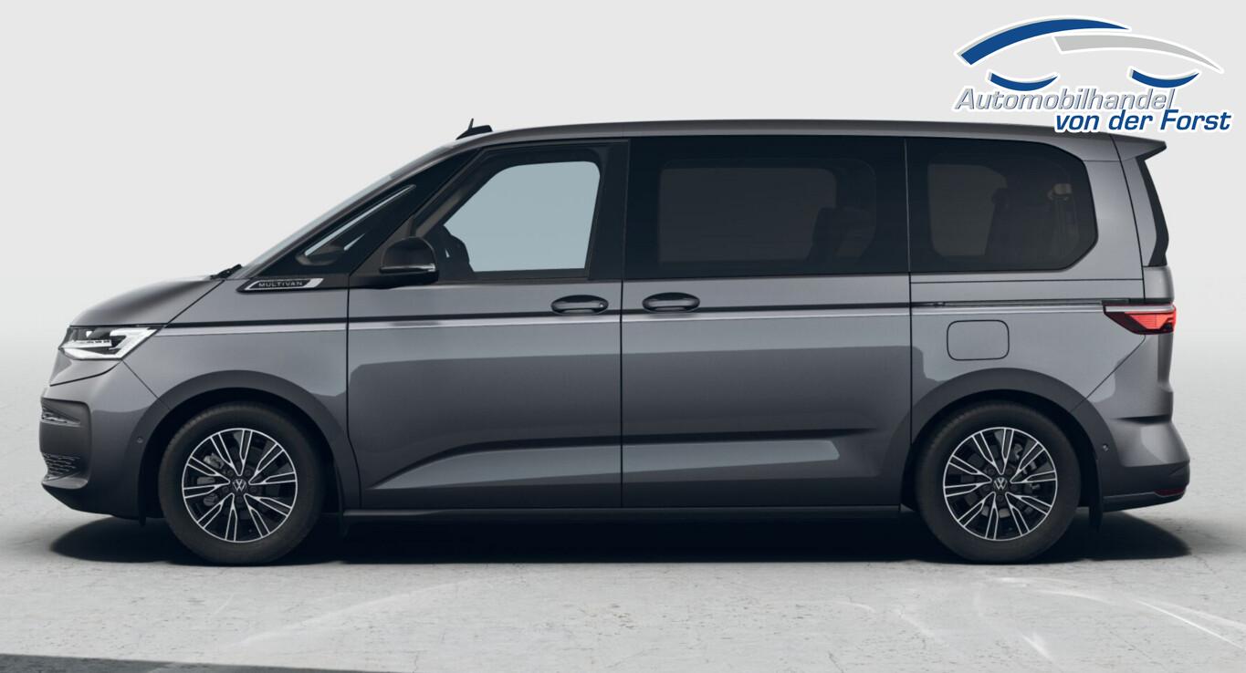 Audio-Navigationssystem Discover Pro (Touchscreen-Farbdisplay 10", inkl. Streaming & Internet), Fahrassistenz-Paket Basic (Service-System: Intelligente Fahrzeugvernetzung (Car2X) / Fahrassistenz-System: Autom. Distanzregelung (ACC inkl. Stop&Go-Funktion) / Fahrassistenz-System: Spurwechselassistent (Side Assist) mit Auspark-Assistent und Ausstiegswarnung), Heckklappe elektr. betätigt (öffnen + schliessen) (Servoschliessung Heckklappe), Schließ-/Startsystem Keyless Advanced mit Safesicherung, Verglasung hinten abgedunkelt (65 %), Schmutzfänger vorn und hinten, Fernlicht Automatisch für Matrix-Scheinwerfer, Handschuhfach abschließbar, Heckklappe mit Soft-Close-Funktion, Kreuzungsassistent vorn, LM-Felgen 6,5x17 (Dundrod, schwarz), Reifen 235/55 R17, Mobile Online Dienste Vorbereitung We Connect und We Connect Plus (Vorbereitung Onlinedienste), Sitz-Paket: 7-Sitzer, 2-2-3 (2 Einzelsitze, 2 Einzelsitze, 3 Einzelsitze) (Sitze im Lade-/FG-Raum: 1.Reihe, 2 Einzelsitze / Sitze im Lade-/FG-Raum: 2.Reihe, 3 Einzelsitze), Audiosystem Ready 2 Discover (Touchscreen-Farbdisplay 10", inkl. Streaming & Internet), Außenspiegel schwarz lackiert, Blinkleuchten LED in Außenspiegel integriert, Bodenbelag im Lade-/Fahrgastraum Teppich, Bordwerkzeug und Reifen-Reparaturkit, Chromleisten seitlich und Heckklappe unten, Diebstahlsicherung für Räder (Felgenschlösser), Digital Cockpit Pro (Instrumentenanzeige Digital), Fahrassistenz-System: Ausweich-Assistent und Abbiege-Assistent, Fenster im Lade-/FG-Raum: - feststehend, vorn links, Fenster im Lade-/FG-Raum: - feststehend, vorn rechts, Frontscheibe Verbundglas getönt, Funkschlüssel (2), Handschuhfach beleuchtet, Innenausstattung: Dekoreinlagen Dark Woodgrain Optic, Innenleuchtenkonzept im Fahrgastraum, Innenspiegel mit Abblendautomatik, Intelligent Speed Assist inkl. Geschwindigkeitsbegrenzer, Karosserie/Aufbau: Bus, Ladekantenabdeckung in Kunststoff, mit Edelstahleinsatz, Laderaumunterteilung und Gepäcksicherungsnetz, Lautsprecher (8), Lichtleiste zwischen Scheinwerfer, Mobile Online Dienste App-Connect inkl. App-Connect Wireless (Apple CarPlay, Android Auto), Motor 2,0 Ltr. - 110 kW TDI, Pedale Edelstahl, Radioempfang digital (DAB+), Radstand 3124 mm, Schlechtwetter-Licht, Schubladen unter Rücksitze außen und 2 Abfallbehälter, Sitzbezug / Polsterung: ArtVelours / Kunstleder, Sitze im Fahrerhaus: 4 Armlehnen, Lendenwirbelstützen elektr. und Klapptische, Sitze im Fahrerhaus: Beifahrersitz höhenverstellbar, Sitze im Fahrerhaus: Fahrersitz höhenverstellbar, Sitze im Lade-/FG-Raum: 1.Reihe mit 2 Armlehnen innen (abnehmbar), Sitze im Lade-/FG-Raum: 2.Reihe mit Vorbereitung für 2 Armlehnen innen, Sonnenblenden mit Spiegel (beleuchtet), Umfeldbeleuchtung seitlich mit Projektionsfunktion, Umfeldleuchte in Heckklappe und Ambiente-Beleuchtung (30 Farben), Vorbereitung für Alkohol-Wegfahrsperre (Alcolock), Warnanlage für Sicherheitsgurte vorn und hinten, Mobiltelefon Schnittstelle Bluetooth, Multimedia-Schnittstelle 2 x USB vorn und 4 x USB-Ladeanschluß Fahrgastraum (Typ C), Sprachassistent IDA und elektronische Sprachverstärkung, Anti-Blockier-System (ABS), Fahrassistenz-System: Bremsassistent (HBA), Antriebsart: Frontantrieb, Elektron. Stabilitäts-Programm (ESP) mit Bremskraftverstärker elektro-mechanisch, Getriebe 7-Gang - Doppelkupplungsgetriebe DSG, Klimaanlage Climatronic 3-Zonen inkl. Fondbedienung, Zusatzheizung, Airbag Fahrer-/Beifahrerseite, Beifahrerairbag abschaltbar, Fensterheber elektrisch vorn, Seitenairbag / Kopfairbag / Center-Airbag vorn und Kopfairbag hinten, Sitze im Fahrerhaus: Fahrer- und Beifahrersitz heizbar, Schiebetür Lade-/Fahrgastraum links elektr. betätigt, Schiebetür Lade-/Fahrgastraum rechts elektr. betätigt, Fahrassistenz-System: Verkehrszeichenerkennung, Rückfahrkamera, Notrufsystem, Lenkrad (Leder) mit Multifunktion und Schaltfunktion, Servolenkung elektro-mechanisch, geschwindigkeitsabhängig, Fahrassistenz-System: Dynamische Fernlichtregulierung (Dynamic Light Assist), Heckleuchten LED, Matrix-LED-Scheinwerfer (IQ.Light), Regensensor, Tagfahrlicht und Assistenzfahrlicht mit Coming Home / Leaving Home, Fahrassistenz-System: Parklenkassistent (Park Assist) inkl. Einparkhilfe vorn und hinten, Fahrassistenz-System: Ablenkungs- und Müdigkeitserkennung, Fahrassistenz-System: Spurhalteassistent (Lane Assist), Fahrassistenz-System: Umfeldbeobachtungssystem (Front Assist) mit City-Notbremsfunktion, Reifenkontroll-Anzeige, Diebstahl-Warnanlage + Innenraumüberwachung / Abschleppschutz + Back-up-Horn, Rußpartikelfilter