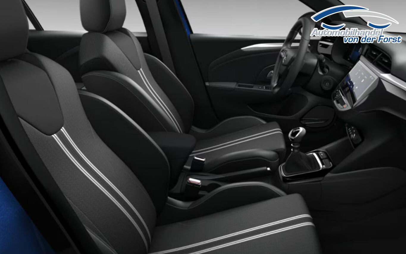 Technologie-Paket Park & Go Plus (Rückfahrkamera mit 180° Umgebungsansicht / Außenspiegel elektr. verstell- und heizbar / Außenspiegel elektr. verstell- und heizbar, elektr. anklappbar / Fahrassistenz-System: Totwinkel-Assistent / Parkpilotsystem hinten / Parkpilotsystem vorn und hinten), Bluetooth-Schnittstelle, Fahrassistenz-System: Autonomer Notbrems-Assistent, Fahrmodusschalter, Kombiinstrument digital (7 Zoll), LM-Felgen 16 Zoll (Tornado Gloss Black), Navigation in Verbindung mit dem Smartphone (über Apple Carplay / Android Auto /...), Reifen 195/55 R16, Sitz vorn links verstellbar (4-fach), Sitz vorn rechts verstellbar (6-fach), Smartphone Schnittstelle (Apple CarPlay & Android Auto), Start-Stop-Anlage, Tagfahrlicht LED, USB-Schnittstelle, Audiosystem Multimedia (DAB-Tuner (Radioempfang digital) / Touchscreen-Farbdisplay (10")), Sicht-Paket (Innenspiegel mit Abblendautomatik / Einschaltautomatik für Fahrlicht / Scheibenwischer mit Regensensor), Geschwindigkeits-Regelanlage (Tempomat) inkl. Geschwindigkeits-Begrenzeranlage (Geschwindigkeits-Regelanlage (Tempomat)), Scheinwerfer LED (Blinkleuchten LED in Außenspiegel integriert / Leuchtweitenregelung / Fahrassistenz-System: Fernlichtassistent / Tagfahrlicht LED), 6 Lautsprecher, B-Säulen schwarz Hochglanz (außen), Dach Kontrast-Lackierung, Dachhimmel schwarz, Karosserie: 5-türig, Motor 1,2 Ltr. - 74 kW, Otto-Partikelfilter (OPF), Reifen-Reparaturkit, Sitzbezug / Polsterung: Stoff, Stoßfänger Sport-Design, Türgriffe außen Wagenfarbe, Türgriffe innen verchromt, Warnanlage für Sicherheitsgurt, Beifahrerseite, Warnanlage für Sicherheitsgurt, Fahrerseite, Warnanlage für Sicherheitsgurte hinten, Anti-Blockier-System (ABS), Elektron. Stabilitäts-Programm Plus (ESP), Getriebe 6-Gang, Klimaanlage, Airbag Fahrer-/Beifahrerseite, Fensterheber elektrisch vorn + hinten, Fensterheber vorn elektr. mit Einklemmschutz, Mittelarmlehne vorn mit Ablagefach, Fahrassistenz-System: Verkehrszeichenerkennung, Lenkrad (Leder, vegan) mit Multifunktion, Heckleuchten LED, Einparkhilfe vorn und hinten mit Parksensoren seitlich, Fahrassistenz-System: Müdigkeitserkennungs-Sensor, Fahrassistenz-System: Spurhalteassistent