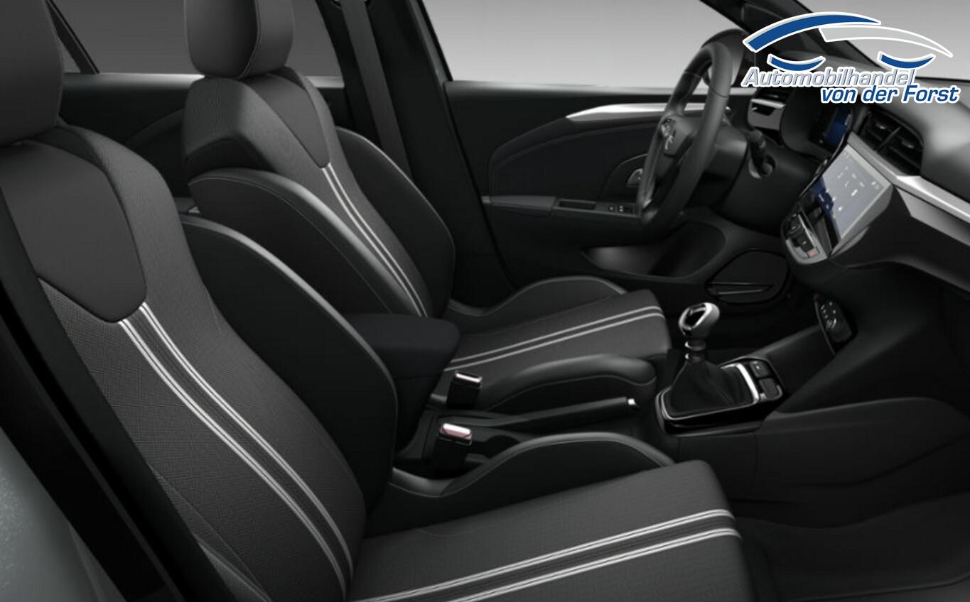 Infotainment-Paket (Ambiente-Beleuchtung LED / DAB-Tuner (Radioempfang digital) / Feststellbremse elektrisch / Induktionsladeschale für Smartphone (Wireless Charging) / Opel Connect / Technologie-Paket Park & Go Plus / Audio-Navigationssystem Multimedia Navi Pro (10" Display) / Smartphone Schnittstelle (Apple CarPlay & Android Auto) / USB-Schnittstelle hinten (2-fach) / Klimaautomatik / Mittelarmlehne vorn mit Ablagefach / Schließ-/Startsystem Keyless Open / Wärmeschutzverglasung hinten abgedunkelt (Solar-Protect) / Rückfahrkamera mit 180° Umgebungsansicht / Außenspiegel elektr. verstell- und heizbar / Außenspiegel elektr. verstell- und heizbar, elektr. anklappbar / Fahrassistenz-System: Totwinkel-Assistent / Parkpilotsystem hinten / Parkpilotsystem vorn und hinten), Bluetooth-Schnittstelle, Fahrassistenz-System: Autonomer Notbrems-Assistent, Fahrmodusschalter, Kombiinstrument digital (7 Zoll), LM-Felgen 16 Zoll (Tornado Gloss Black), Reifen 195/55 R16, Sitz vorn links verstellbar (6-fach), Sitz vorn rechts verstellbar (4-fach), Start-Stop-Anlage, Tagfahrlicht LED, Sicht-Paket (Innenspiegel mit Abblendautomatik / Einschaltautomatik für Fahrlicht / Scheibenwischer mit Regensensor), Geschwindigkeits-Regelanlage (Tempomat) inkl. Geschwindigkeits-Begrenzeranlage (Geschwindigkeits-Regelanlage (Tempomat)), Scheinwerfer LED (Blinkleuchten LED in Außenspiegel integriert / Leuchtweitenregelung / Fahrassistenz-System: Fernlichtassistent / Tagfahrlicht LED), 6 Lautsprecher, B-Säulen schwarz Hochglanz (außen), Dach Kontrast-Lackierung, Dachhimmel schwarz, Karosserie: 5-türig, Motor 1,2 Ltr. - 74 kW, Otto-Partikelfilter (OPF), Reifen-Reparaturkit, Sitzbezug / Polsterung: Stoff, Stoßfänger Sport-Design, Türgriffe außen Wagenfarbe, Türgriffe innen verchromt, Warnanlage für Sicherheitsgurt, Beifahrerseite, Warnanlage für Sicherheitsgurt, Fahrerseite, Warnanlage für Sicherheitsgurte hinten, Anti-Blockier-System (ABS), Elektron. Stabilitäts-Programm Plus (ESP), Getriebe 6-Gang, Airbag Fahrer-/Beifahrerseite, Fensterheber elektrisch vorn + hinten, Fensterheber vorn elektr. mit Einklemmschutz, Fahrassistenz-System: Verkehrszeichenerkennung, Lenkrad (Leder, vegan) mit Multifunktion, Heckleuchten LED, Fahrassistenz-System: Müdigkeitserkennungs-Sensor, Fahrassistenz-System: Spurhalteassistent