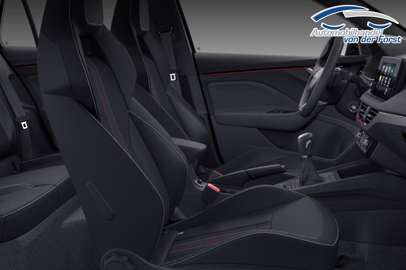 Außenspiegel elektr. verstell-, heiz- und anklappbar, mit Abblendautomatik (Außenspiegel mit Abblendautomatik, links), Einparkhilfe vorn und hinten, Dach in Kontrastfarbe - schwarz, Induktionsladeschale, LM-Felgen 17" (Kajam), Navigation in Verbindung mit dem Smartphone (über Apple Carplay / Android Auto /...), Reifen 205/55 R17, Sitzheizung vorne, Infotainment-Paket Bolero (SmartLink (Apple CarPlay und Android Auto)), Interieur-Design-Paket Monte Carlo (Ambiente-Beleuchtung LED in Rot / Einstiegsleisten (Aluminium-Design) / Innenausstattung: Dekoreinlagen Carbon Optik / Innenausstattung: Interieurleisten Schwarz / Rot / Innenausstattung: Luftausströmer Rot / Sportsitze), Phonebox (Induktionsladeschale für Smartphone), Panoramadach fest (Glas) (Dachreling), Fahrassistenz-System: Einschaltautomatik für Fahrlicht (Fahrlichtassistent) (Innenspiegel mit Abblendautomatik / Scheibenwischer mit Regensensor), 3. Bremsleuchte LED, 8 Lautsprecher, Ablagetasche an Vordersitzlehnen, Außenspiegel schwarz lackiert, Edelstahlpedale Sportdesign, Gepäckraumabdeckung / Rollo, Handschuhfach beleuchtet, Infotainment-Paket Basic, Infotainment-System mit 8,2" Display, Karosserie: 5-türig, Kombiinstrument digital (virtual cockpit), Lendenwirbelstütze Sitz vorn links, Lendenwirbelstütze Sitz vorn rechts, Lenkrad heizbar, Mittelarmlehne hinten, Modellpflege, Motor 1,5 Ltr. - 110 kW 16V TSI ACT, Netzprogramm im Kofferraum, Otto-Partikelfilter (OPF), Radioempfang digital (DAB+), Radstand 2651 mm, Schadstoffarm nach Abgasnorm Euro 6e, Schalt-/Wählhebelgriff Leder, Sitz vorn links höhenverstellbar, Sitz vorn rechts höhenverstellbar, Sitzbezug / Polsterung: Monte Carlo, Steckdose (12V-Anschluß) im Koffer-/Laderaum, USB-Schnittstelle vorn (2-fach, Typ C), Wireless SmartLink, Anti-Blockier-System (ABS), Bremsassistent, Antriebs-Schlupfregelung (ASR), Antriebsart: Frontantrieb, Elektron. Differentialsperre (EDS), Elektron. Querdifferentialsperre (XDS), Elektron. Stabilitäts-Programm (ESP), Getriebe 7-Gang - Doppelkupplungsgetriebe DSG, Klimaanlage Climatronic 2-Zonen, Airbag Beifahrerseite abschaltbar, Airbag Fahrer-/Beifahrerseite, Fensterheber elektrisch vorn + hinten, Fernbedienung für Zentralverriegelung, Kopf-Airbag-System, Mittelarmlehne vorn, Rücksitzlehne geteilt/klappbar (1/3-2/3), Schließ-/Startsystem Kessy, Seitenairbag vorn, Seitenscheiben hinten und Heckscheibe abgedunkelt (SunSet), Zentralverriegelung, Fahrassistenz-System: Auffahrwarnsystem mit City-Notbremsfunktion (Frontradar-Assistent), Fahrassistenz-System: Berganfahr-Assistent (Hill-Holder), Frontkamera, Geschwindigkeits-Regelanlage (Tempomat) inkl. Geschwindigkeits-Begrenzeranlage, Rückfahrkamera, Lenkrad (Sport/Leder - 3-Speichen, unten abgeflacht) mit Multifunktion und Schaltfunktion, Servolenkung, Blinkleuchten LED in Außenspiegel integriert, Heckleuchten LED mit dynamischem Blinklicht, Lichtassistent (Coming Home, Leaving Home), Matrix-LED-Scheinwerfer, Nebelscheinwerfer mit Abbiegelicht, Tagfahrlicht LED, Fahrassistenz-System: Spurhalteassistent (Lane Assist), Start/Stop-Anlage