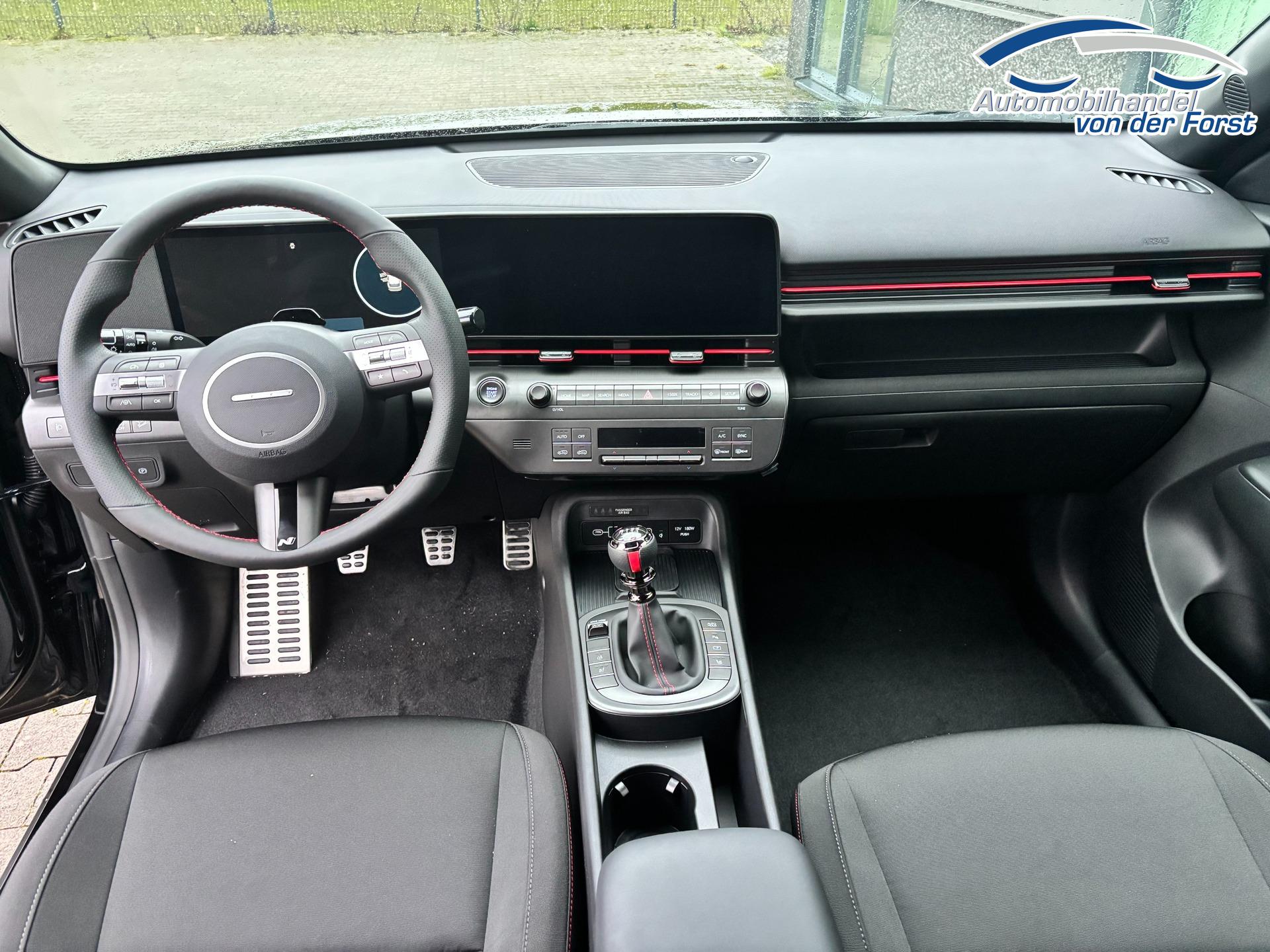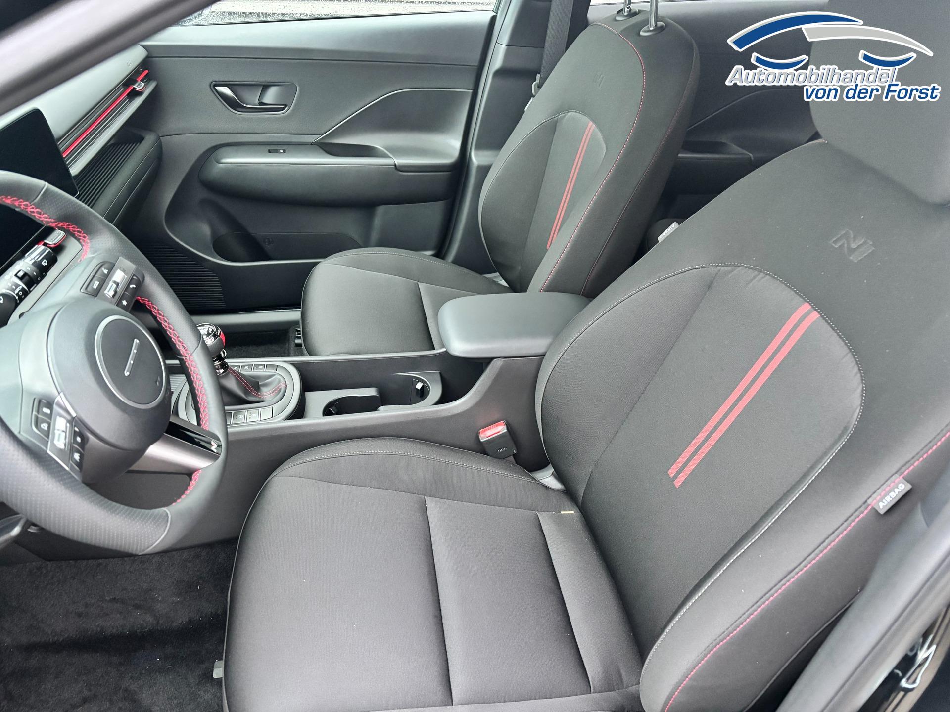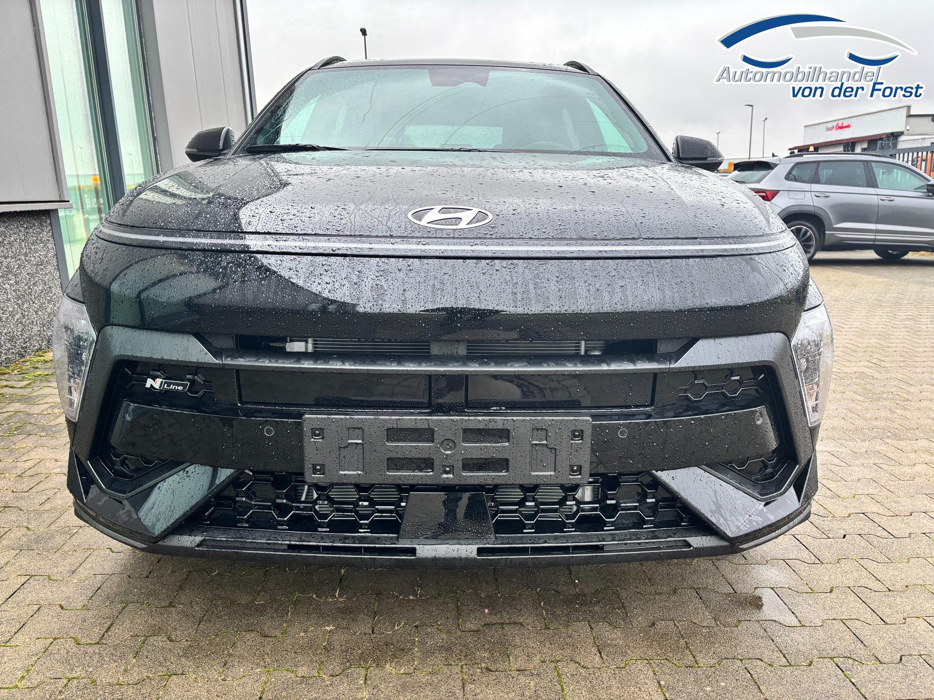 Hyundai KONA "N Line" LIEFERUNG KOSTENLOS! 1.6 T-GDI 150PS, Schwarz-Metallic, 18" ALU, Privacy-Glas, Winter-Paket, 2-Zonen-Klimaautomatik, Dachreling, Lederlenkrad, Tempomat, NAVIGATION 12,3", Parksensoren vorrn/hinten, Rückfahrkamera, Alarm, LED-Scheinwerfer, Smart Key, Armlehne vorn