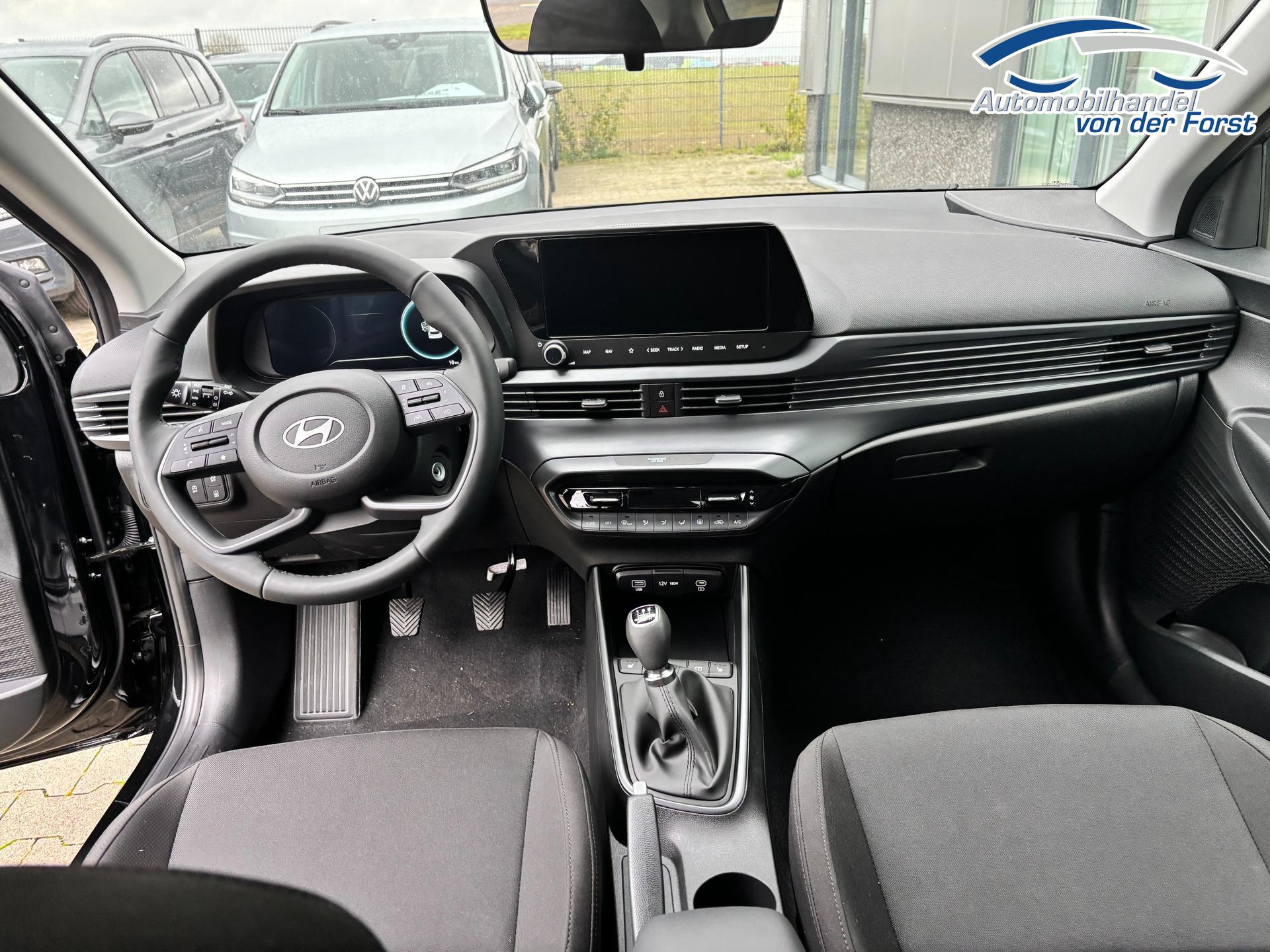 Hyundai i20 "Family" 1.2i 79PS, SCHWARZ-METALLIC, 16" ALUFELGEN, 5 Jahre Garantie, WINTER-PAKET, KLIMAAUTOMATIK, Abgedunkelte Scheiben, NAVIGATION 10,25", Parksensoren hinten, Rückfahrkamera, Alarm, Lederlenkrad, Tempomat, Armlehne vorne, Reserverad