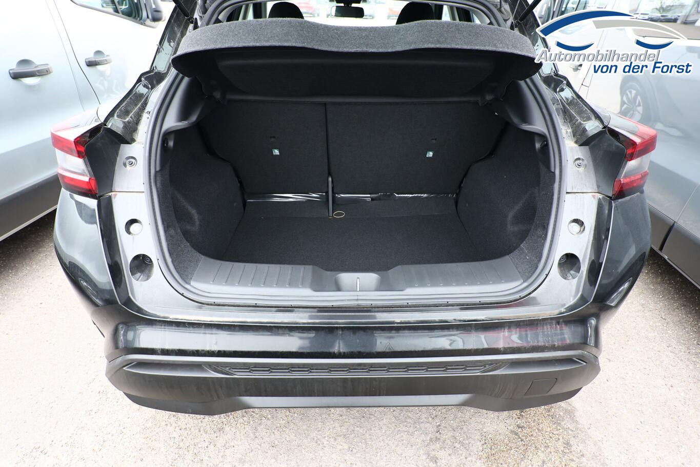 Komfort-Paket (Innenraumfilter: Pollenfilter / Klimaautomatik / Sitzheizung vorn / Außenspiegel heizbar / Scheibenwischer mit Regensensor), 4 Lautsprecher, Bluetooth-Schnittstelle, elektr. Bremskraftverteilung (EBD), Fahrassistenz-System: Aufmerksamkeitssystem, Fahrassistenz-System: Intelligente Spurverlassenswarnung, Fahrassistenz-System: Kreuzungsassistent, Fahrassistenz-System: Lichtautomatik, Feststellbremse elektrisch mit Auto Hold-Funktion, Freisprecheinrichtung Bluetooth, Herstellgarantie: 3 Jahre / 100.000km, Instrumentenanzeige TFT-Farbdisplay (7 Zoll), MirrorLink (Android Auto, Apple Carplay), Navigation in Verbindung mit dem Smartphone (über Apple Carplay / Android Auto /...), Radioempfang digital (DAB), Reifen 215/60 R17, Stahlfelgen 17 Zoll, USB-Schnittstelle vorn, Anti-Blockier-System (ABS) (Elektr. Bremskraftverteilung (EBD)), Außenspiegel elektr. verstellbar (Blinkleuchte in Außenspiegel integriert), Fahrassistenz-System: Autonomer Notbrems-Assistent (Fahrassistenz-System: Fußgängererkennung), Geschwindigkeits-Begrenzeranlage, Karosserie: 5-türig, Motor 1,0 Ltr. - 84 kW 12V KAT, Radstand 2636 mm, Sitz vorn links höhenverstellbar, Sonnenblenden mit Spiegel, Steckdose (12V-Anschluß), Touchscreen-Farbdisplay (12,3 Zoll), Bremsassistent (Nissan Brake-Assist), Antriebsart: Frontantrieb, Elektron. Stabilitäts-Programm (ESP), Getriebe 7-Gang - Doppelkupplungsgetriebe DCT, Airbag Beifahrerseite abschaltbar, Airbag Fahrer-/Beifahrerseite und Seitenairbag vorn, Fensterheber elektrisch vorn + hinten, Isofix-Aufnahmen für Kindersitz, Kopf-Airbag-System, Rücksitz geteilt/klappbar, Sportsitze vorn (Monoform-Design), Fahrer-Informations-System (FIS) mit Farbdisplay, Fahrassistenz-System: Verkehrszeichenerkennung, Geschwindigkeits-Regelanlage (Tempomat), Rückfahrkamera, Fahrassistenz-System: Sicherheitssystem ERA GLONASS mit automatischem Notruf, Fahrassistenz-System: Fernlichtassistent, Scheinwerfer LED, Fahrassistenz-System: Kurvenbremskontrolle (Aktive Spurkontrolle), Reifendruck-Kontrollsystem, Start/Stop-Anlage