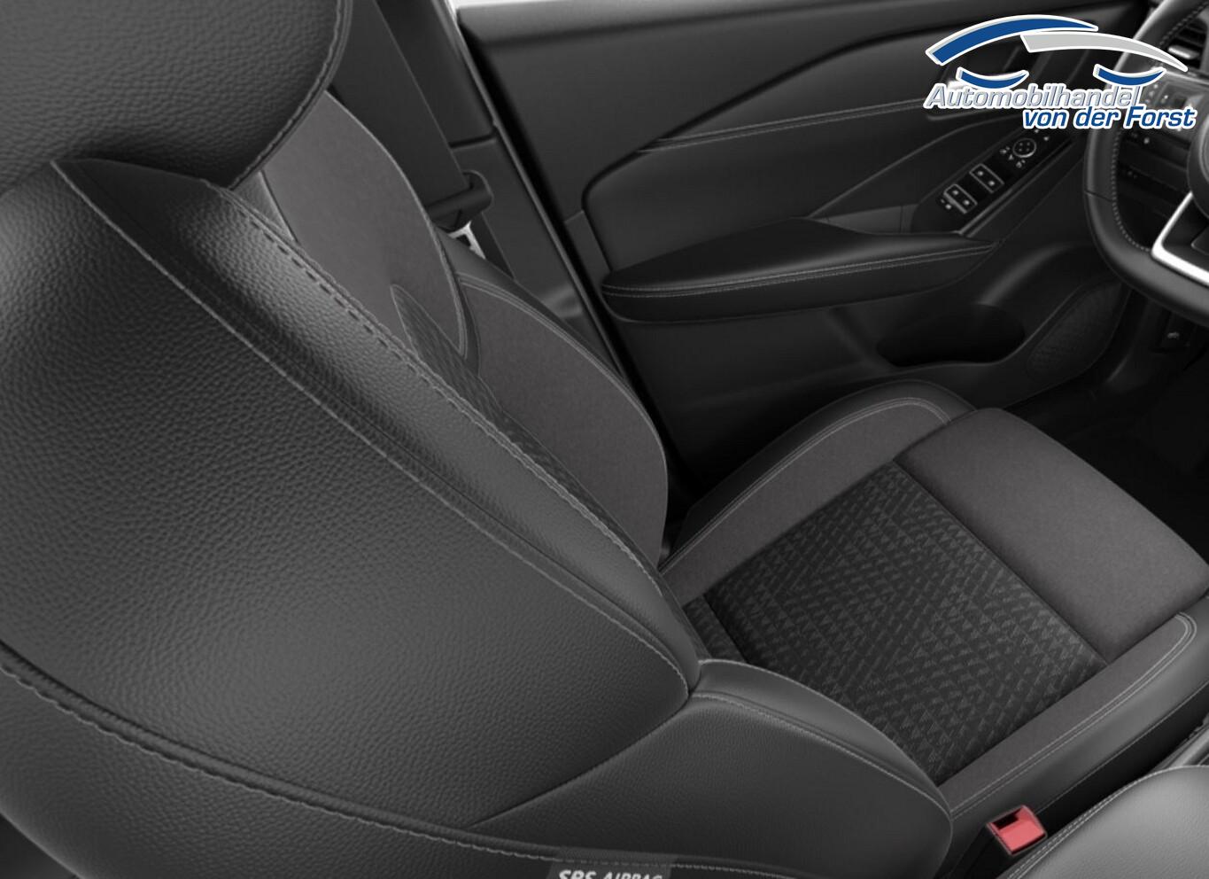 Design-Paket (Dachreling silber / Panorama-Glasdach), Winter-Paket (Lenkrad heizbar / Sitzheizung vorn / Frontscheibe heizbar), 6 Lautsprecher, Airbag Beifahrerseite abschaltbar, Automatikgetriebe, Bluetooth-Schnittstelle, Fahrassistenz-System: ProPilot mit Navi-Link, Freisprecheinrichtung Bluetooth, Gepäckraumbeleuchtung, Getränkehalter vorn, Gurtwarnanlage, Heckspoiler, Induktionsladeschale für Smartphone, Lenkrad (Kunstleder) mit Multifunktion, Mittelarmlehne vorn mit Ablagefach, Radioempfang digital (DAB+), Servolenkung (elektronisch), Sitzbezug/Polsterung: Stoff, Sommerreifen 235/55 R18, Zentralverriegelung mit Fernbedienung, Fahrassistenz-System: ProPilot Park (Fahrassistenz-System: Intelligenter Parklenkassistent), Ausstattungs-Paket: Nissan Connect Navigationssystem mit Around View Monitor (Smartphone kabellose Schnittstelle (Apple CarPlay & Android Auto) / Sprachbediensystem Spracherkennung / Kamerasystem Around View / Service-System: Google Services / Service-System: Nissan Connect Services / Einparkhilfe vorn und hinten), Schließ-/Startsystem intelligent key (Keyless-Entry / Start-Stop-Knopf), 3. Bremsleuchte, Ambiente-Beleuchtung, Dachantenne im Haifischflossen-Design, Elektr. Bremskraftverteilung (EBD), Elektromotor mit Range Extender 151 kW (Motor 1,5 Ltr. - 116 kW), Gepäck-/Laderaum-Unterteilung (Flexi-Board), Geschwindigkeits-Begrenzeranlage, Innenspiegel mit Abblendautomatik, Instrumentenanzeige TFT-Farbdisplay (12,3 Zoll), Karosserie: 5-türig, Kniepolster Mittelkonsole seitlich, Lendenwirbelstütze Sitz vorn links, elektr. verstellbar, Lenksäule (Lenkrad) höhen-/längsverstellbar, Mittelarmlehne hinten mit Getränkehalter, Notbrems-Warnblinkautomatik, Otto-Partikelfilter (OPF), Parkbremse elektrisch, Radstand 2666 mm, Sitz vorn links höhenverstellbar, Sitz vorn rechts höhenverstellbar, Sonnenblenden mit Spiegel (beleuchtet), Steckdose (12V-Anschluß) im Koffer-/Laderaum, Steckdose (12V-Anschluß) in Mittelkonsole, Touchscreen-Farbdisplay (12,3 Zoll), USB-Anschluss im Fond, USB-Schnittstelle, Anti-Blockier-System (ABS), Fahrassistenz-System: Moving Object Detection (MOD, Fußgängererkennung und bewegliche Objekterkennung), Antriebsart: Frontantrieb, Elektron. Stabilitäts-Programm (ESP), LM-Felgen 7,5x18, Klimaautomatik 2-Zonen, Airbag Fahrer-/Beifahrerseite, Fensterheber elektrisch vorn + hinten, Isofix-Aufnahmen für Kindersitz, Kopf-Airbag-System, Lastenverankerung / Verzurrösen, Rücksitz geteilt/klappbar, Seitenairbag, Verglasung hinten abgedunkelt, Fahrmodusschalter, Auto-Hold-Funktion, Fahrassistenz-System: Auffahrwarnsystem (Forward Collision Warning, FCW), Fahrassistenz-System: Berganfahr-Assistent, Fahrassistenz-System: Verkehrszeichenerkennung, Geschwindigkeits-Regelanlage (Tempomat) mit Abstandsregelung, Fahrassistenz-System: Sicherheitssystem ERA GLONASS mit automatischem Notruf, Außenspiegel elektr. anklappbar, Außenspiegel elektr. verstell- und heizbar, Automatische Fahrlichtschaltung, Fahrassistenz-System: Fernlichtassistent, Fahrassistenz-System: Totwinkel-Assistent, Heckleuchten LED, Scheibenwischer mit Regensensor, Scheinwerfer LED, Tagfahrlicht LED, Fahrassistenz-System: aktiver Spurhalteassistent, mit korrigierendem Bremseingriff, Fahrassistenz-System: Autonomer Notbrems-Assistent, Fahrassistenz-System: Müdigkeitserkennungs-Sensor, Fahrassistenz-System: Querverkehrs-Assistent Heck (Rear Cross Traffic Alert, RCTA), Reifendruck-Kontrollsystem, Diebstahl-Warnanlage, Start/Stop-Anlage