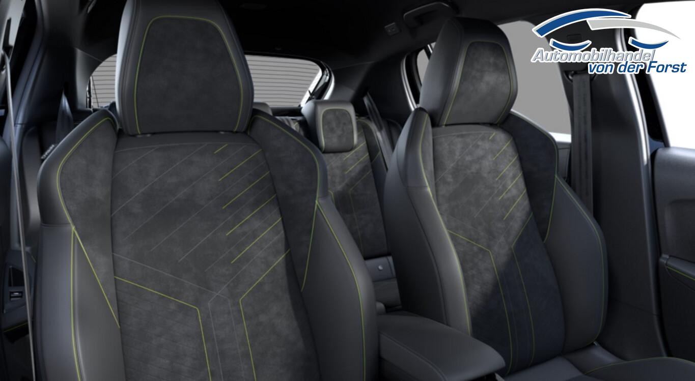 Alcantara / Kunstleder Paket (Innenausstattung: Ziernähte farbig / Sitz vorn links mit Massagefunktion / Sitzbezug / Polsterung: Alcantara / Kunstleder / Sitz vorn links elektr. verstellbar / Sitzheizung vorn), Sicht & Navigations-Paket (Induktionsladeschale für Smartphone / Multifunktionsanzeige mit HD Touchscreen-Farbdisplay 10 Zoll / Navigationssystem i-Connect Advanced / USB-Anschlüsse (Typ C und Typ A) / USB-Schnittstelle / Rückfahrkamera mit 360° Umgebungsansicht / Peugeot Connect-Box / SOS-Taste (Notruf für Lokalisierung Fahrzeug) / Fahrassistenz-System: Totwinkel-Assistent (SAM)), 6 Lautsprecher, Adaptive Geschwindigkeitsregelanlage (ACC), Bluetooth-Freisprecheinrichtung, Drive-Assist-Paket Plus, Einstiegsleisten Aluminium mit Peugeot-Schriftzug, Fahrassistenz-System: Aktiver Notbrems-Assistent (Active Safety Brake Plus), Fahrassistenz-System: aktiver Spurpositionierungsassistent, Fußraumbeleuchtung LED, Handschuhfach beleuchtet, Kombiinstrument digital (3D-Optik), Kopf-Airbag-System vorn, Lenkrad (Lenksäule) höhen- und tiefenverstellbar, Mittelarmlehne hinten, Smartphone-Schnittstelle kabellos (Apple CarPlay / Android Auto), Sommerreifen 205/45 R17, Fensterheber elektrisch hinten, sequentiell, mit Einklemmschutz (Fensterheber elektrisch vorn / Fensterheber elektrisch vorn links), Fensterrahmen / Zierleisten schwarz glänzend (Fensterzierleisten schwarz glänzend), Radioempfang digital (DAB+) (Radioempfang digital), Sonnenblenden mit Spiegel (beleuchtet) (Sonnenblenden mit Spiegel), Außenspiegel elektr. verstell- und heizbar, beide (Außenspiegel elektr. verstell- und heizbar, links / Außenspiegel elektr. verstell- und heizbar, rechts), Scheinwerfer Full-LED (Leuchtweitenregelung), Ambiente-Beleuchtung, Außenspiegel mit Abdeckkappen schwarz, Dachhimmel mit LED-Beleuchtung, Dachhimmel schwarz, Elektr. Bremskraftverteilung, Heckscheibe heizbar, Heckschürze, schwarz glänzend, Heckspoiler schwarz glänzend, Innenspiegel mit Abblendautomatik, Karosserie: 5-türig, LM-Felgen 6,5x17 (Yanaka, zweifarbig), Mild-Hybrid 107 kW (Motor 1,2 Ltr. - 100 kW), Otto-Partikelfilter (GPF), Parkbremse elektrisch, Pedale Aluminium, Sitz vorn links höhenverstellbar, Sitz vorn rechts höhenverstellbar, Warnanlage für Sicherheitsgurte, Anti-Blockier-System (ABS), Fahrassistenz-System: Kollisionswarnsystem, Antischlupfregelung (ASR), Elektron. Stabilitäts-Programm (ESP, Bosch), Getriebe Automatik - Doppelkupplungsgetriebe (6-Stufen, Hybrid), Klimaautomatik, Airbag Fahrer-/Beifahrerseite, Isofix-Aufnahmen für Kindersitz, Kopf-Airbag-System hinten, Mittelarmlehne vorn, Rücksitzbank klappbar 1/3-2/3, Seitenairbag vorn, Seitenscheiben hinten und Heckscheibe dunkel getönt, Zentralverriegelung / Startanlage Keyless System, Zentralverriegelung inkl. Türverriegelung automatisch, Bordcomputer, Fahrmodusschalter, Fahrassistenz-System: Berganfahrhilfe, Fahrassistenz-System: Verkehrszeichenerkennung, Lenkrad (Leder), Lenkrad mit Multifunktion, Servolenkung elektrisch, Außenspiegel elektr. anklappbar, Einschaltautomatik für Fahrlicht, Fahrassistenz-System: Fernlichtassistent, Heckleuchten Voll-LED, Scheibenwischer mit Regensensor, Tagfahrlicht LED, Einparkhilfe vorn und hinten, Fahrassistenz-System: aktiver Spurassistent (Lenkunterstützung), Fahrassistenz-System: Müdigkeitserkennungs-Sensor, Reifendruck-Kontrollsystem