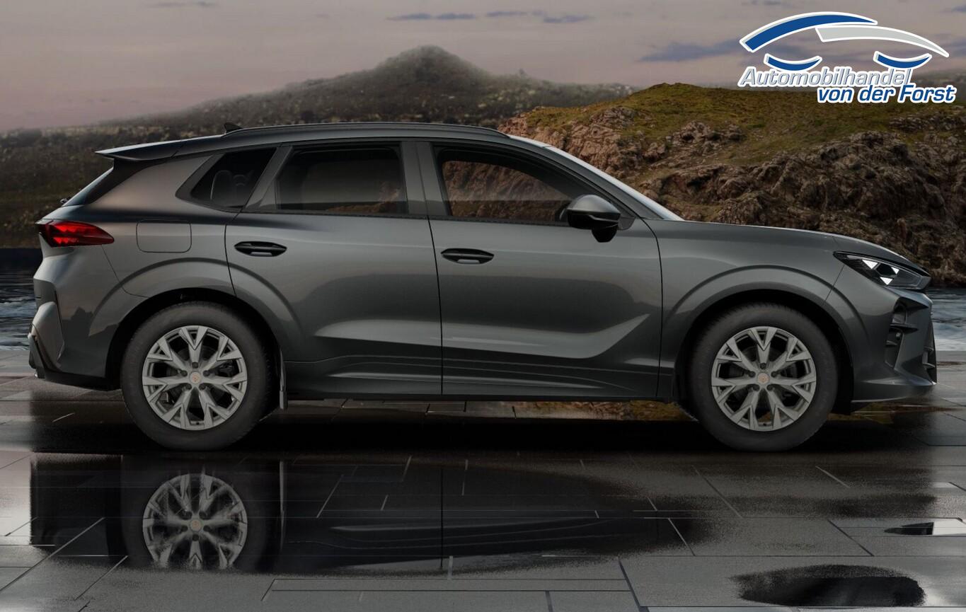 Edge-Paket (Ambiente-Beleuchtung Smart Ambient Light / Einstiegsleisten vorn beleuchtet / Mittelarmlehne hinten / Klimaanlage Climatronic 3-Zonen / Schließ-/Startsystem Kessy / Seitenscheiben hinten und Heckscheibe abgedunkelt / Heckklappe/-Deckel elektr. betätigt (öffnen + schliessen, sensorgesteuert) / Fahrassistenz-System: Automatische Distanzregelung (ACC) / Lenkrad heizbar (Sport/Leder) mit Multifunktion und Schaltfunktion / Außenspiegel elektr. verstell-, heiz- und anklappbar / Diebstahl-Warnanlage mit Innenraumüberwachung und Abschleppschutz), Design-Paket Dynamic (Ambiente-Beleuchtung Smart Ambient Light mit Beleuchtung in Türinnenverkleidung / Lendenwirbelstützen vorn, elektr. verstellbar / Sitzbezug / Polsterung: Stoff Dinamica / Kunstleder Soul Black / Dark Slate-Grau mit Copper Steppung / Sitze vorn elektr. verstellbar (links mit Memory) / Sitzheizung vorn / Außenspiegel elektr. verstell-, heiz- und anklappbar, Spiegelabsenkung, Welcome Light, Memory), Intelligent-Drive-Paket (Kamerasystem Umgebungsansicht (Top View, 360°) / Fahrassistenz-System: Fernlichtassistent / Fahrassistenz-System: Totwinkel-Assistent mit Auspark-Assistent, Spurwechselassistent und Ausstiegswarnung / Fahrassistenz-System: Intelligent Park Assist (IPA) / Fahrassistenz-System: Intelligenter Parkassistent inkl. trainiertem Parken / Fahrassistenz-System: Pre-Crash-System / Fahrassistenz-System: Spurhalteassistent Plus inkl. Travel Assist, Emergency Assist und Stauassistent), Bluetooth-Schnittstelle, Freisprecheinrichtung Bluetooth, Head-up-Display, Induktionsladeschale für Smartphone, Isofix-Aufnahmen für Kindersitz an Beifahrersitz und Rücksitz, Leuchtweitenregulierung automatisch, LM-Felgen 8x18, Navigation in Verbindung mit dem Smartphone (über Apple Carplay / Android Auto /...), Ottopartikelfilter (OPF), Rücksitzlehne geteilt/klappbar, Serviceintervall 30000 km oder 2 Jahre, Sommerreifen 235/55 R18, Steckdose 230V im Gepäckraum, Vorbereitung Navigationssystem, Zentralverriegelung mit Fernbedienung, Media-System Plus (Audiosystem mit 12,9" Touchscreen-Farbdisplay), Motor 1,5 Ltr. - 110 kW 16V eTSI Mild-Hybrid (DXDB) (Mild-Hybrid 110 kW (Motor 1,5 Ltr. - 110 kW eTSI)), 9 Lautsprecher, Dachhimmel schwarz, Doppeltonhorn, Fahrassistenz-System: Abbiegebremsfunktion und Ausweichunterstützung, Fußraumbeleuchtung LED, Gepäck-/Laderaumboden doppelt, Geschwindigkeitsbegrenzer mit vorausschauender Geschw.-Regelung, Innenspiegel mit Abblendautomatik, Karosserie: 5-türig, Kombiinstrument digital (10,25 Zoll), Kopfstützen hinten (3-fach), Leseleuchten hinten LED, Leseleuchten vorn LED, Mobile Online Dienste Cupra Connect, Parkbremse elektrisch mit Auto-Hold-Funktion, Pedale Aluminium-Design, Radioempfang digital (DAB+), Radstand Standard, Sonnenblende links mit Spiegel (beleuchtet), Sonnenblende rechts mit Spiegel (beleuchtet), Steckdose (12V-Anschluß) vorn, Warnanlage für Sicherheitsgurt-System, Full Link (MirrorLink, Apple CarPlay und Android Auto), Sprachsteuerungs-System, USB-Ladeanschlüsse (2-fach, Typ C) für 2.Sitzreihe, USB-Schnittstelle vorn (2-fach, Typ C), Antriebsart: Frontantrieb, Elektron. Stabilitäts-Programm (ESP) mit Bremskraftverstärker elektro-mechanisch, Wegfahrsperre (elektronisch), Getriebe 7-Gang - Doppelkupplungsgetriebe DSG, Airbag Beifahrerseite abschaltbar, Airbag Fahrer-/Beifahrerseite, Fensterheber elektrisch vorn + hinten mit Komfortschaltung, Kopf-Airbag-System, Mittelarmlehne vorn, Seitenairbag, Seitenairbag vorn mitte (Central Airbag), Sport-Schalensitze vorn mit integrierten Kopfstützen, Fahrassistenz-System: Fahrprofilauswahl (CUPRA Drive Profile), Dachreling schwarz, Wärmeschutzverglasung, Fahrassistenz-System: Verkehrszeichenerkennung, Notrufsystem, Progressivlenkung, Heckleuchten LED mit dynamischem Blinklicht, Licht- und Regensensor, Lichtassistent (Coming Home, Leaving Home), Nebelscheinwerfer LED mit Abbiegelicht, Scheinwerfer Voll-LED, Tagfahrlicht LED, Einparkhilfe vorn und hinten, Fahrassistenz-System: Ablenkungs- und Müdigkeitserkennung, Fahrassistenz-System: Kreuzungs-Assistent (Crossroad Assist), Fahrassistenz-System: Spurhalteassistent, Fahrassistenz-System: Umfeldbeobachtungssystem (Front assist) mit City-Notbremsfunktion, Reifenkontroll-Anzeige