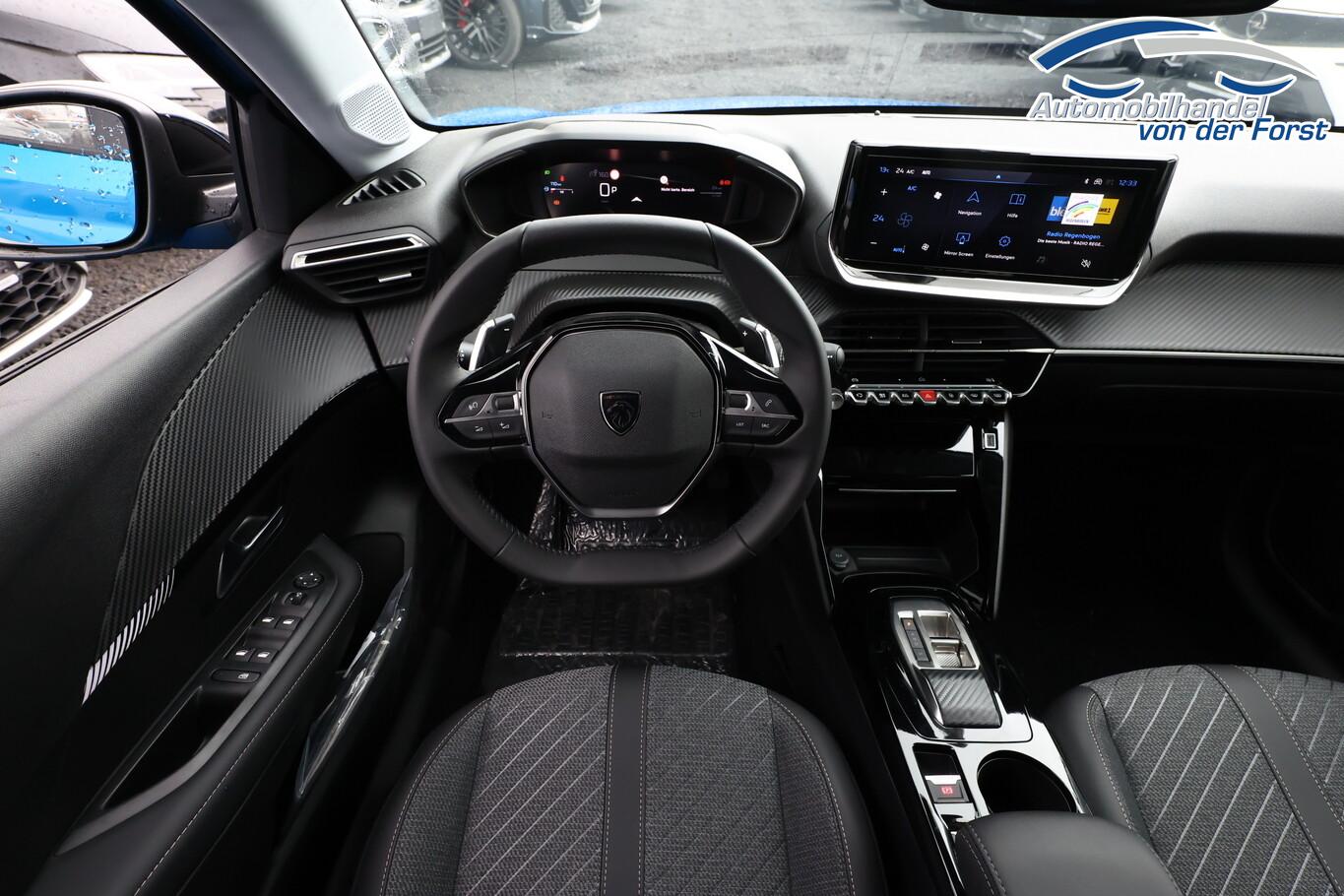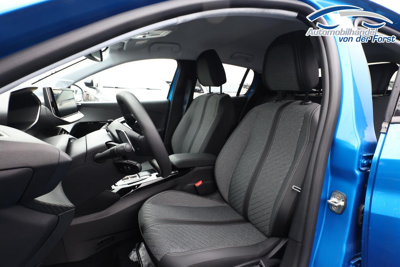 Sicht & Navigations-Paket (Multifunktionsanzeige mit HD Touchscreen-Farbdisplay 10 Zoll / Navigationssystem i-Connect Advanced / USB-Anschlüsse (Typ C und Typ A) / USB-Schnittstelle / Rückfahrkamera mit 360° Umgebungsansicht / Peugeot Connect-Box / SOS-Taste (Notruf für Lokalisierung Fahrzeug) / Fahrassistenz-System: Totwinkel-Assistent (SAM)), Fahrassistenz-System: Spurassistent, Freisprecheinrichtung Bluetooth, Kombiinstrument digital (10"), Leseleuchten vorn, LM-Felgen 16", Reifen 195/55 R16, Schadstoffarm nach Abgasnorm Euro 6e (EU6 EA), Smartphone-Schnittstelle (Apple CarPlay & Android Auto), Fensterheber elektrisch hinten, sequentiell, mit Einklemmschutz (Fensterheber elektrisch vorn / Fensterheber elektrisch vorn links), Radioempfang digital (DAB+) (Radioempfang digital), Sitzbezug / Polsterung: Stoff/Kunstleder (Innenausstattung: Ziernähte farbig), Zentralverriegelung mit Fernbedienung (Fernbedienung für Zentralverriegelung), Außenspiegel elektr. verstell- und heizbar, beide (Außenspiegel elektr. verstell- und heizbar, links / Außenspiegel elektr. verstell- und heizbar, rechts), Außenspiegel mit Abdeckkappen schwarz, Elektr. Bremskraftverteilung, Frontscheibe geräuschdämmend, Innenraumfilter: Staub- und Pollenfilter, Innenspiegel mit Abblendautomatik, Karosserie: 5-türig, Kartentasche an Vordersitze, Otto-Partikelfilter (GPF), Parkbremse elektrisch, Reifen-Reparaturkit, Sitz vorn links höhenverstellbar, Türgriffe außen Wagenfarbe, Warnanlage für Sicherheitsgurte, Anti-Blockier-System (ABS), Fahrassistenz-System: Aktiver Notbrems-Assistent (Active Safety Brake), Antischlupfregelung (ASR), Elektron. Stabilitäts-Programm (ESP, Bosch), Getriebe Automatik - Doppelkupplungsgetriebe (6-Stufen, Hybrid), Klimaautomatik, Airbag Beifahrerseite abschaltbar, Airbag Fahrer-/Beifahrerseite, Isofix-Aufnahmen für Kindersitz, Mittelarmlehne vorn, Rücksitzlehne geteilt/klappbar, Seitenairbag vorn, Seitenscheiben hinten und Heckscheibe dunkel getönt, Bordcomputer, Fahrmodusschalter, Fahrassistenz-System: Berganfahrhilfe, Fahrassistenz-System: Verkehrszeichenerkennung, Geschwindigkeits-Regelanlage (Tempomat) inkl. Geschwindigkeits-Begrenzeranlage, Lenkrad (Leder), Lenkrad mit Multifunktion, Servolenkung elektrisch, Außenspiegel elektr. anklappbar, Blinkleuchte in Außenspiegel integriert, Einschaltautomatik für Fahrlicht, Scheibenwischer mit Regensensor, Scheinwerfer Eco-LED, Tagfahrlicht LED, Einparkhilfe vorn und hinten, Fahrassistenz-System: Müdigkeitserkennungs-Sensor, Reifendruck-Kontrollsystem