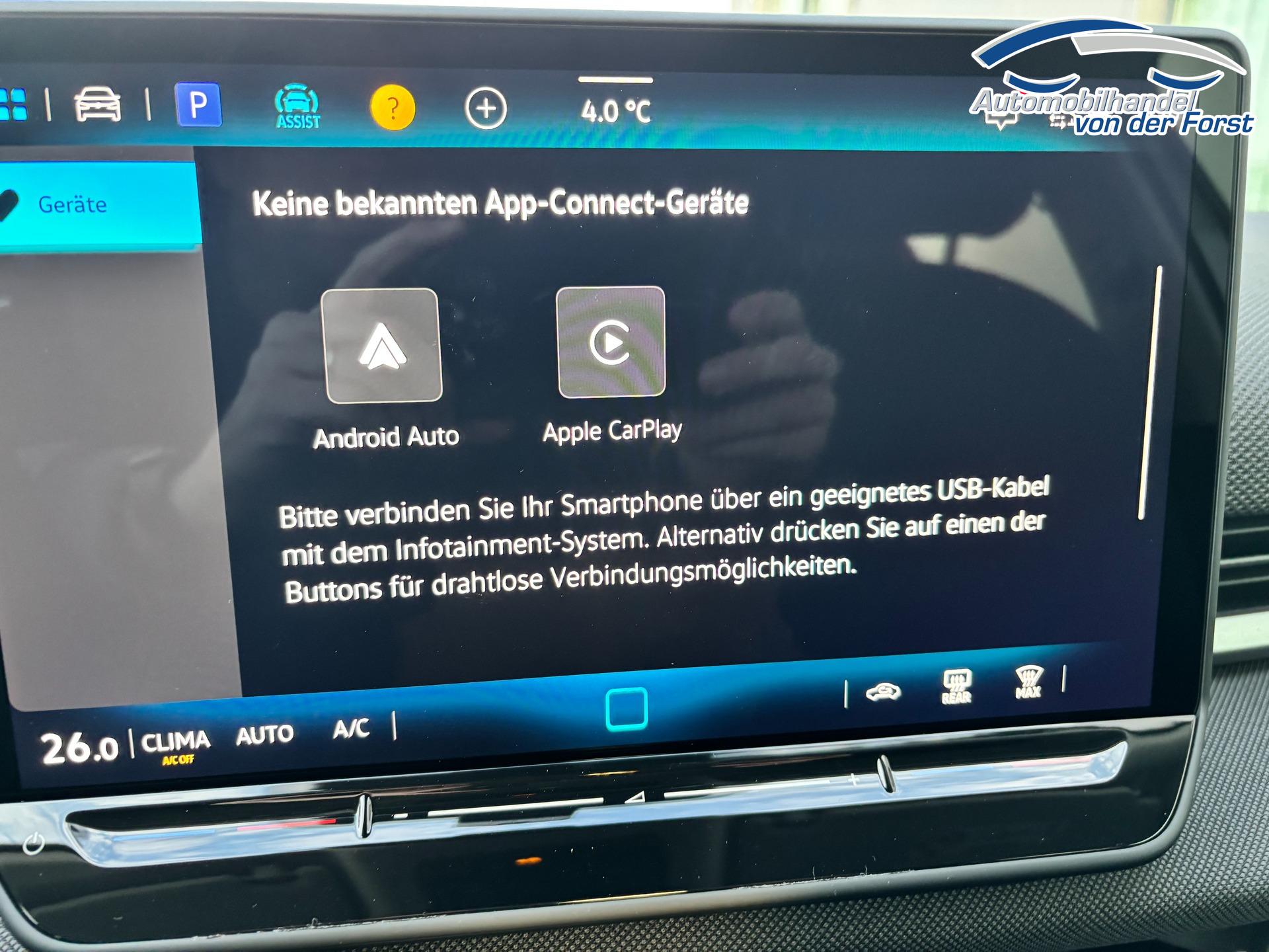 • App-Connect Wireless – kabellose Telefonverbindung über AndroidAuto oder Apple CarPlay vorhanden