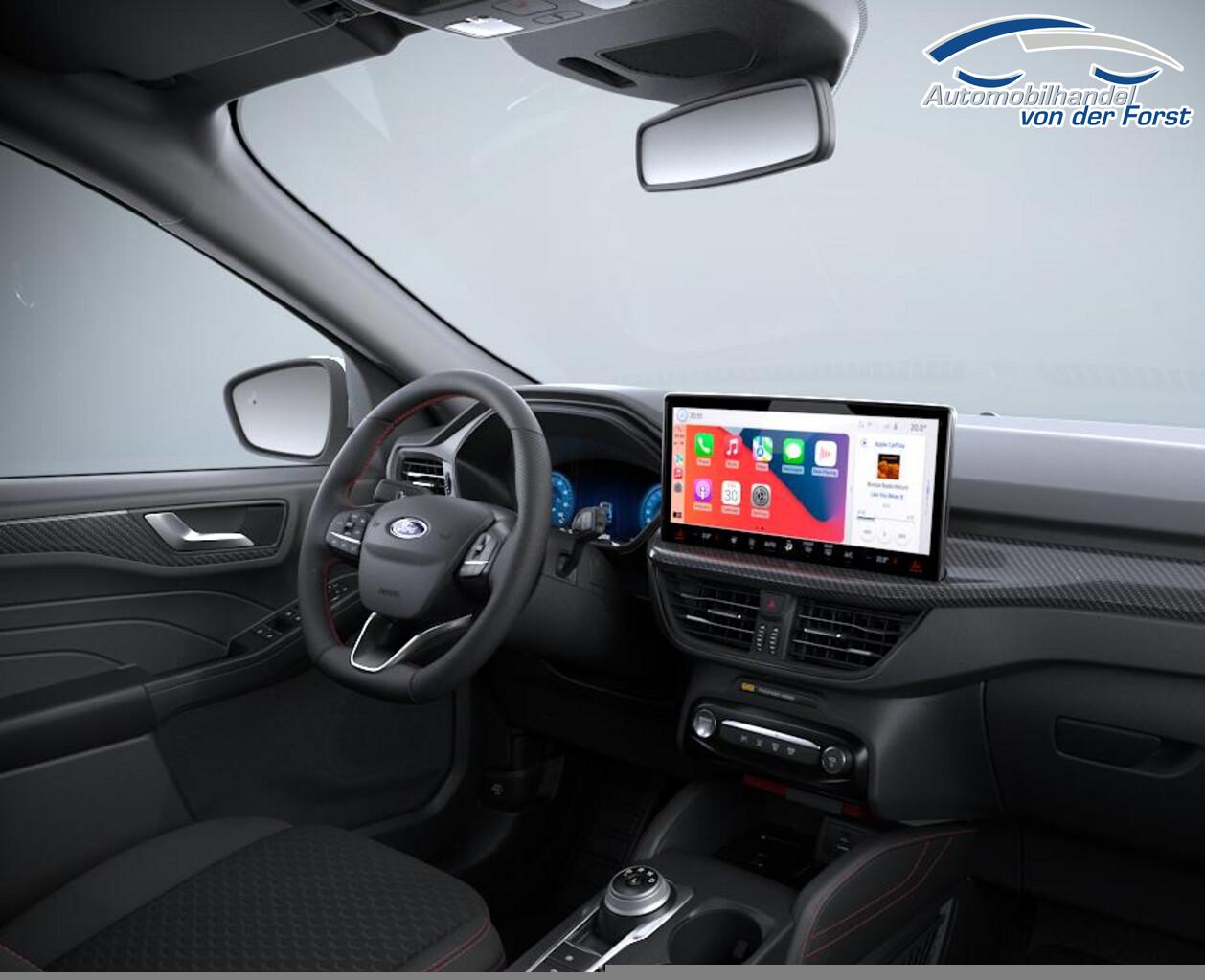 Matrix-LED-Scheinwerfer, Winter-Paket (Lenkrad heizbar / Sitzheizung hinten / Frontscheibe heizbar), Verglasung hinten abgedunkelt (Privacy Glass), LM-Felgen 7,5x19 (5x2-Speichen, schwarz, glanzgedreht), 12V-Anschluß im Gepäckraum, 13"-Touchscreen für Infotainment-System, Ablagetaschen an Vordersitzlehnen, Außenspiegel mit Umfeldleuchte, Fahrassistenz-System: Falschfahrer-Warnfunktion, Fahrassistenz-System: Fernlichtassistent (Scheinwerfer mit Abblendautomatik), Fahrassistenz-System: Müdigkeitserkennungs-Sensor, Fahrassistenz-System: Verkehrsschildassistent, Fahrmodusschalter, Fußraumbeleuchtung, Kombiinstrument Digitalanzeige 13 Zoll, Lenkrad (Sport/Sensico, 3-Speichen), Parkbremse elektrisch, Reifen 225/55 R19, Rücksitze verschiebbar, Schadstoffarm nach Abgasnorm Euro 6e (EU6 EA), Sonnenblenden beleuchtet, USB-Anschluss im Fond, Wegfahrsperre, Body-Styling-Paket (Kühlergrill schwarz / Seitenschweller Wagenfarbe / Stoßfänger Sport-Ausführung), Sitz vorn links verstellbar (8-fach) (Lendenwirbelstütze Sitz vorn links), Sitz vorn rechts verstellbar (8-fach) (Lendenwirbelstütze Sitz vorn rechts), Audio-Navigationssystem Ford mit AppLink (6 Lautsprecher / Radioempfang digital (DAB) / Ford SYNC IV mit Navigation / Sprachsteuerung und Bluetooth-Schnittstelle / USB-Anschluss / Audiobedienung am Lenkrad), Fahrassistenz-System: Pre-Collision-System (Fahrassistenz-System: Active City Stop / Fahrassistenz-System: Auffahrwarnsystem), KeyFree-System (Power KeyFree-Startfunktion), Mittelkonsole mit Armlehne (Getränkehalter vorn / Mittelarmlehne vorn mit Staufach und 12V-Anschluß), Geschwindigkeits-Regelanlage (Tempomat) (Intelligenter Geschwindigkeits-Begrenzer), Intelligent Protection System (IPS) (3-Punkt-Sicherheitsgurt hinten / Warnanlage für Sicherheitsgurte hinten / Warnanlage für Sicherheitsgurte vorn / Airbag Fahrer-/Beifahrerseite / Kopf-Schulter-Airbag vorn und hinten / Seitenairbag vorn), Ambiente-Beleuchtung vorn (LED), Dachhimmel Stoff, dunkel, FordPass Connect inkl. eCall, Hybrid 134 kW (Motor 2,5 Ltr. - 112 kW), Induktionsladeschale für mobile Endgeräte, Innenspiegel mit Abblendautomatik, Karosserie: 5-türig, Scheibenrahmen schwarz, Scheinwerfer mit Ausschaltverzögerung, Anti-Blockier-System (ABS), Fahrassistenz-System: Post-Collision-System, Antischlupfregelung (ASR), Antriebsart: Allradantrieb, Elektron. Stabilitäts-Programm (ESP), Getriebe Automatik - ECVT, Klimaautomatik 2-Zonen, Fensterheber elektrisch vorn + hinten mit Komfortschließung, Rücksitzlehne geteilt, Rücksitzlehne klappbar, Sitzheizung vorn, Sportsitze, Bordcomputer, Eco-Anzeige für verbrauchsoptimiertes Fahren (EcoCoach), Dachreling schwarz, Servolenkung elektrisch, Außenspiegel elektr. anklappbar, Außenspiegel elektr. verstell- und heizbar, Heckleuchten LED, Scheibenwischer mit Regensensor, Scheinwerfer-Assistent mit Tag-/Nachtsensor, Tagfahrlicht LED, Parkpilotsystem vorn und hinten, Fahrassistenz-System: Spurhalteassistent, Reifendruck-Kontrollsystem