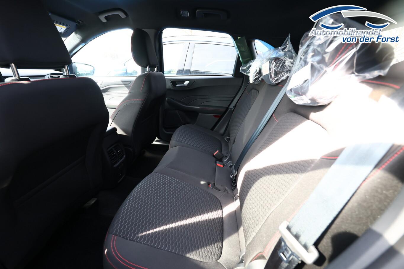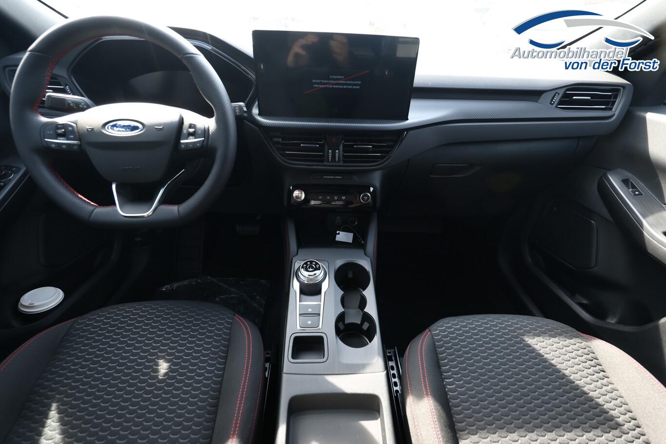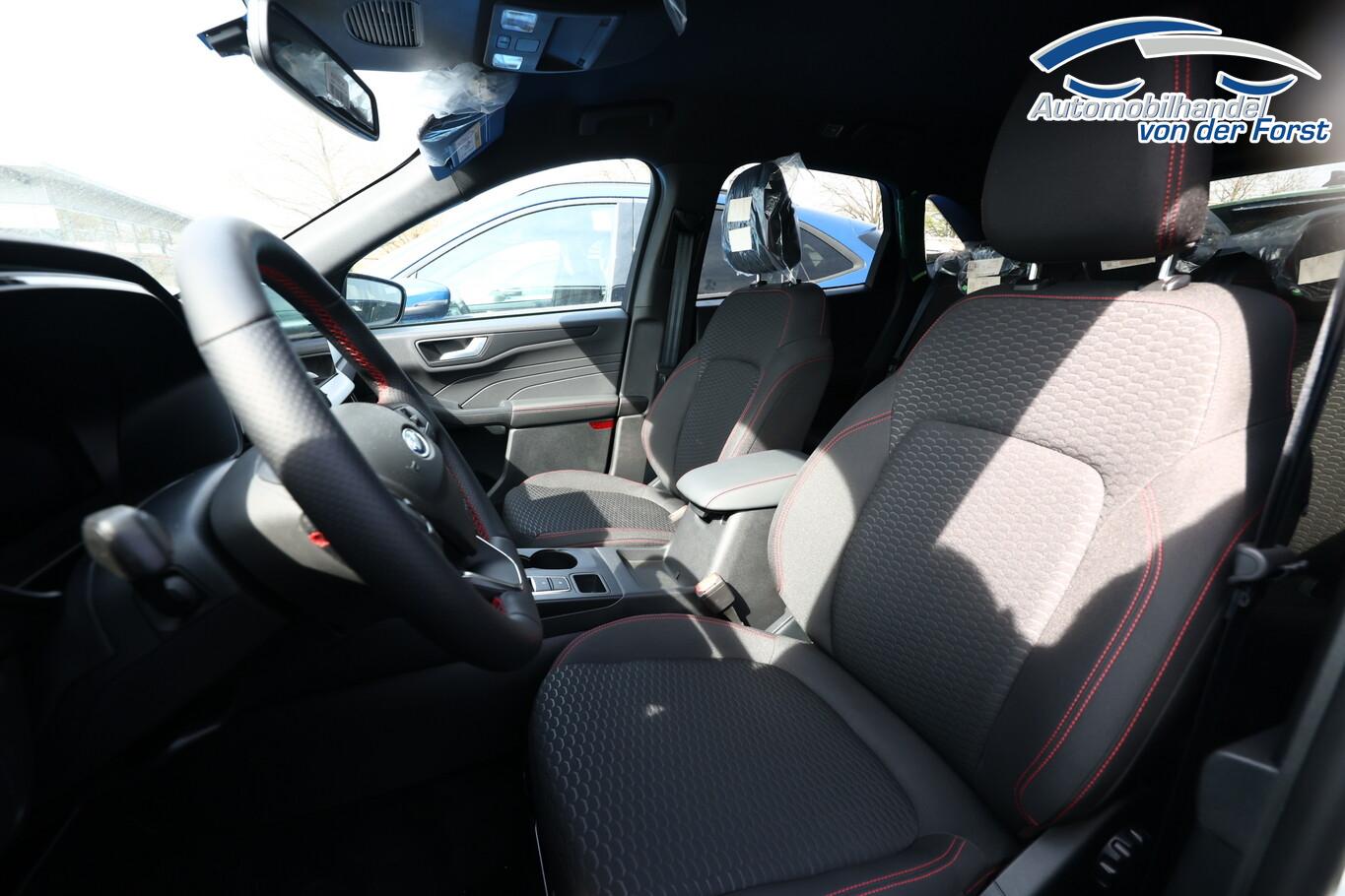 Matrix-LED-Scheinwerfer, Head-up-Display, Winter-Paket (Lenkrad heizbar / Sitzheizung hinten / Frontscheibe heizbar), Verglasung hinten abgedunkelt (Privacy Glass), Reserverad als Notrad, LM-Felgen 7,5x19 (5x2-Speichen, schwarz, glanzgedreht), 4 Verzurrösen, Ablagetaschen an Vordersitzlehnen, Beifahrerairbag deaktivierbar, Fahrassistenz-System: Falschfahrer-Warnfunktion, Fahrassistenz-System: Fernlichtassistent (Scheinwerfer mit Abblendautomatik), Fahrassistenz-System: Müdigkeitserkennungs-Sensor, Fahrassistenz-System: Verkehrsschildassistent, Handschuhfach beleuchtet, Lendenwirbelstütze Sitz vorn links, Parkbremse elektrisch, Reifen 225/55 R19, Sitz vorn links verstellbar (4-fach), Touchscreen-Farbdisplay 13,2 Zoll, Body-Styling-Paket (Kühlergrill schwarz / Seitenschweller Wagenfarbe / Stoßfänger Sport-Ausführung), Sitz vorn rechts verstellbar (8-fach) (Lendenwirbelstütze Sitz vorn rechts), Audio-Navigationssystem Ford mit AppLink (6 Lautsprecher / Radioempfang digital (DAB) / Ford SYNC IV mit Navigation / Sprachsteuerung und Bluetooth-Schnittstelle / USB-Anschluss / Audiobedienung am Lenkrad), Fahrassistenz-System: Pre-Collision-System (Fahrassistenz-System: Active City Stop / Fahrassistenz-System: Auffahrwarnsystem), KeyFree-System (Power KeyFree-Startfunktion), Mittelkonsole mit Armlehne (Getränkehalter vorn / Mittelarmlehne vorn mit Staufach und 12V-Anschluß), Geschwindigkeits-Regelanlage (Tempomat) (Intelligenter Geschwindigkeits-Begrenzer), Intelligent Protection System (IPS) (3-Punkt-Sicherheitsgurt hinten / Warnanlage für Sicherheitsgurte hinten / Warnanlage für Sicherheitsgurte vorn / Airbag Fahrer-/Beifahrerseite / Kopf-Schulter-Airbag vorn und hinten / Seitenairbag vorn), Ambiente-Beleuchtung vorn (LED), Dachhimmel Stoff, dunkel, Gepäckraumabdeckung / Rollo, Induktionsladeschale für mobile Endgeräte, Innenspiegel mit Abblendautomatik, Karosserie: 5-türig, Kombiinstrument Digitalanzeige 12,3 Zoll, Lenksäule (Lenkrad) höhen-/längsverstellbar, Motor 1,5 Ltr. - 137 kW EcoBoost KAT, Scheibenrahmen schwarz, Sonnenblende links mit Spiegel (beleuchtet), Sonnenblende rechts mit Spiegel (beleuchtet), Anti-Blockier-System (ABS), Antischlupfregelung (ASR), Antriebsart: Frontantrieb, Elektron. Stabilitäts-Programm (ESP), Getriebe Automatik - Typ: 8F35 (8-Stufen), Klimaautomatik 2-Zonen, Fensterheber elektrisch vorn + hinten mit Komfortschließung, Isofix-Aufnahmen für Kindersitz, Rücksitzlehne geteilt, Rücksitzlehne klappbar, Sitzheizung vorn, Zentralverriegelung mit Fernbedienung, Bordcomputer, Dachreling schwarz, Rückfahrkamera, Lenkrad (Sport/Leder, ST), Servolenkung elektrisch, Außenspiegel elektr. anklappbar, Außenspiegel elektr. verstell- und heizbar, Scheibenwischer mit Regensensor, Scheinwerfer-Assistent mit Tag-/Nachtsensor, Parkpilotsystem vorn und hinten, Fahrassistenz-System: Spurhalteassistent, Reifendruck-Kontrollsystem, Start/Stop-Anlage