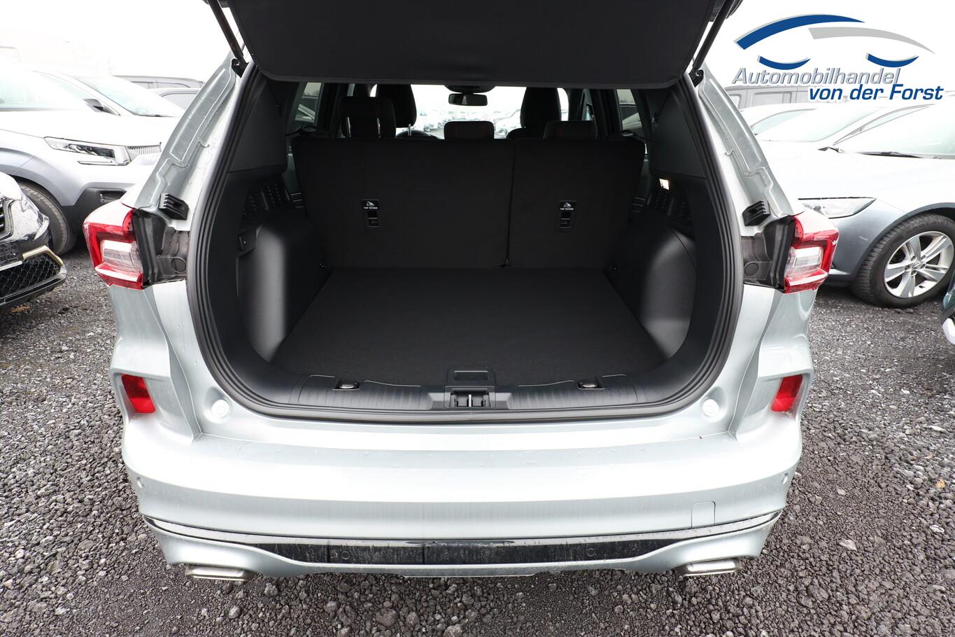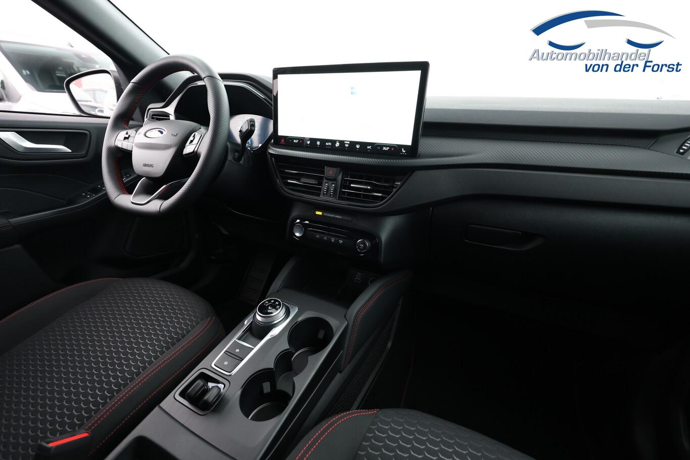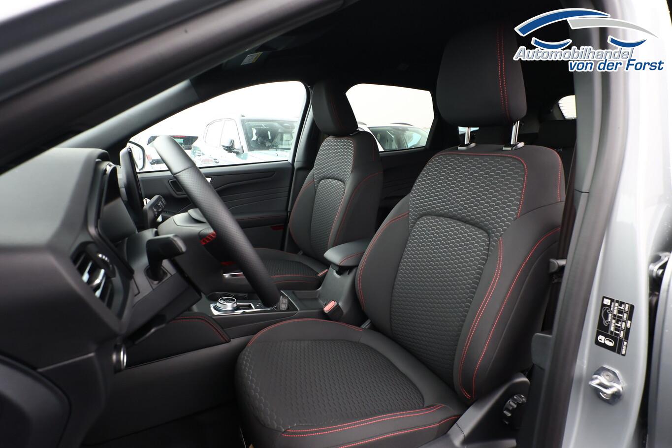 Winter-Paket (Lenkrad heizbar / Sitzheizung hinten / Frontscheibe heizbar), Verglasung hinten abgedunkelt (Privacy Glass), Reserverad als Notrad, 12V Steckdosen im Fond, 13,2 Zoll Farb-Touchscreen, 3. Bremsleuchte, Ablagetasche an Rückseite Vordersitzlehnen, Außenspiegel in Wagenfarbe, Außenspiegel mit Umfeldbeleuchtung, Beifahrerairbag deaktivierbar, Fahrassistenz-System: Fernlichtassistent (Scheinwerfer mit Abblendautomatik), Fahrassistenz-System: Müdigkeitserkennungssystem, Fahrassistenz-System: Verkehrszeichenerkennung, Gepäckraumbeleuchtung, Handschuhfach beleuchtet, Kindersicherung, Kopfstützen hinten (3-Stück), Lenkrad (Sport/Leder, ST) mit Multifunktion, LM-Felgen 7,5J x 18 Zoll, Nebelscheinwerfer LED, Nebelschlussleuchte, Notrufsystem, Reifen 225/60 R18, Schadstoffarm nach Abgasnorm Euro 6e (EU6EA), Scheibenwischer hinten, Scheinwerfer LED, Stoßfänger in Wagenfarbe, Türgriffe außen in Wagenfarbe, Umlaufheizung, Verzurrösen (4-fach), Body-Styling-Paket (Kühlergrill schwarz / Seitenschweller Wagenfarbe / Stoßfänger Sport-Ausführung), Parkbremse elektrisch mit Auto-Hold-Funktion (Fahrassistenz-System: Berganfahr-Assistent (Hill-Holder)), Sitz vorn links verstellbar (8-fach) (Lendenwirbelstütze Sitz vorn links), Sitz vorn rechts verstellbar (8-fach) (Lendenwirbelstütze Sitz vorn rechts), Audio-Navigationssystem Ford mit AppLink (6 Lautsprecher / Radioempfang digital (DAB) / Ford SYNC IV mit Navigation / Sprachsteuerung und Bluetooth-Schnittstelle / USB-Anschluss / Audiobedienung am Lenkrad), Fahrassistenz-System: Pre-Collision-System (Fahrassistenz-System: Active City Stop / Fahrassistenz-System: Auffahrwarnsystem), KeyFree-System (Power KeyFree-Startfunktion), Mittelkonsole mit Armlehne (Getränkehalter vorn / Mittelarmlehne vorn mit Staufach und 12V-Anschluß), Geschwindigkeits-Regelanlage (Tempomat) (Intelligenter Geschwindigkeits-Begrenzer), Intelligent Protection System (IPS) (3-Punkt-Sicherheitsgurt hinten / Warnanlage für Sicherheitsgurte hinten / Warnanlage für Sicherheitsgurte vorn / Airbag Fahrer-/Beifahrerseite / Kopf-Schulter-Airbag vorn und hinten / Seitenairbag vorn), Ambiente-Beleuchtung vorn (LED), Dachhimmel Stoff, dunkel, Dachspoiler Wagenfarbe, Induktionsladeschale für mobile Endgeräte, Innenspiegel mit Abblendautomatik, Karosserie: 5-türig, Kombiinstrument Digitalanzeige 12,3 Zoll, Lenksäule (Lenkrad) höhen-/längsverstellbar, Motor 1,5 Ltr. - 137 kW EcoBoost KAT, Radstand 2710 mm, Scheibenrahmen schwarz, Sonnenblende links mit Spiegel (beleuchtet), Sonnenblende rechts mit Spiegel (beleuchtet), Anti-Blockier-System (ABS), Fahrassistenz-System: Notbrems-Assistent, Antriebsart: Frontantrieb, Elektron. Stabilitäts-Programm (ESP), Getriebe Automatik - Typ: 8F35 (8-Stufen), Klimaautomatik 2-Zonen, Fensterheber elektrisch vorn + hinten mit Komfortschließung, Isofix-Aufnahmen für Kindersitz, Rücksitzlehne geteilt, Rücksitzlehne klappbar, Sitzheizung vorn, Zentralverriegelung mit Fernbedienung, Bordcomputer, Dachreling schwarz, Rückfahrkamera, Servolenkung elektrisch, Außenspiegel elektr. anklappbar, Außenspiegel elektr. verstell- und heizbar, Heckleuchten LED, Scheibenwischer mit Regensensor, Scheinwerfer-Assistent mit Tag-/Nachtsensor, Tagfahrlicht LED, Parkpilotsystem vorn und hinten, Fahrassistenz-System: Spurhalteassistent, Reifendruck-Kontrollsystem