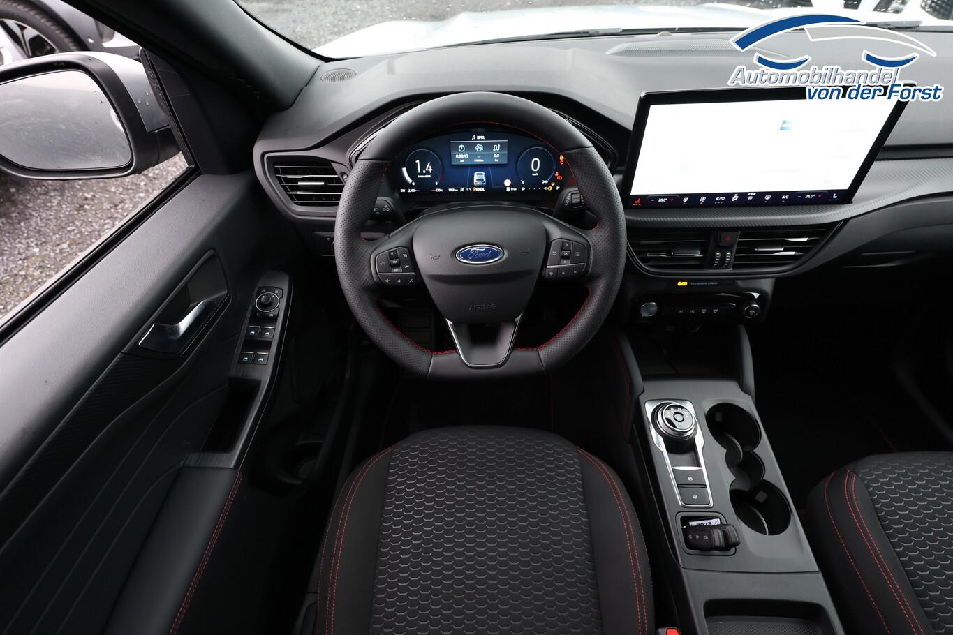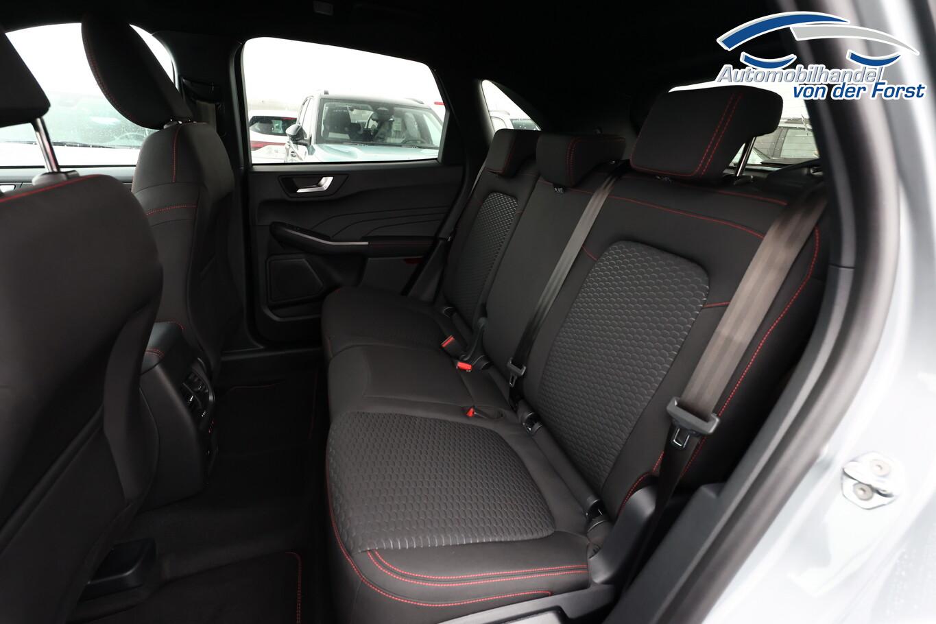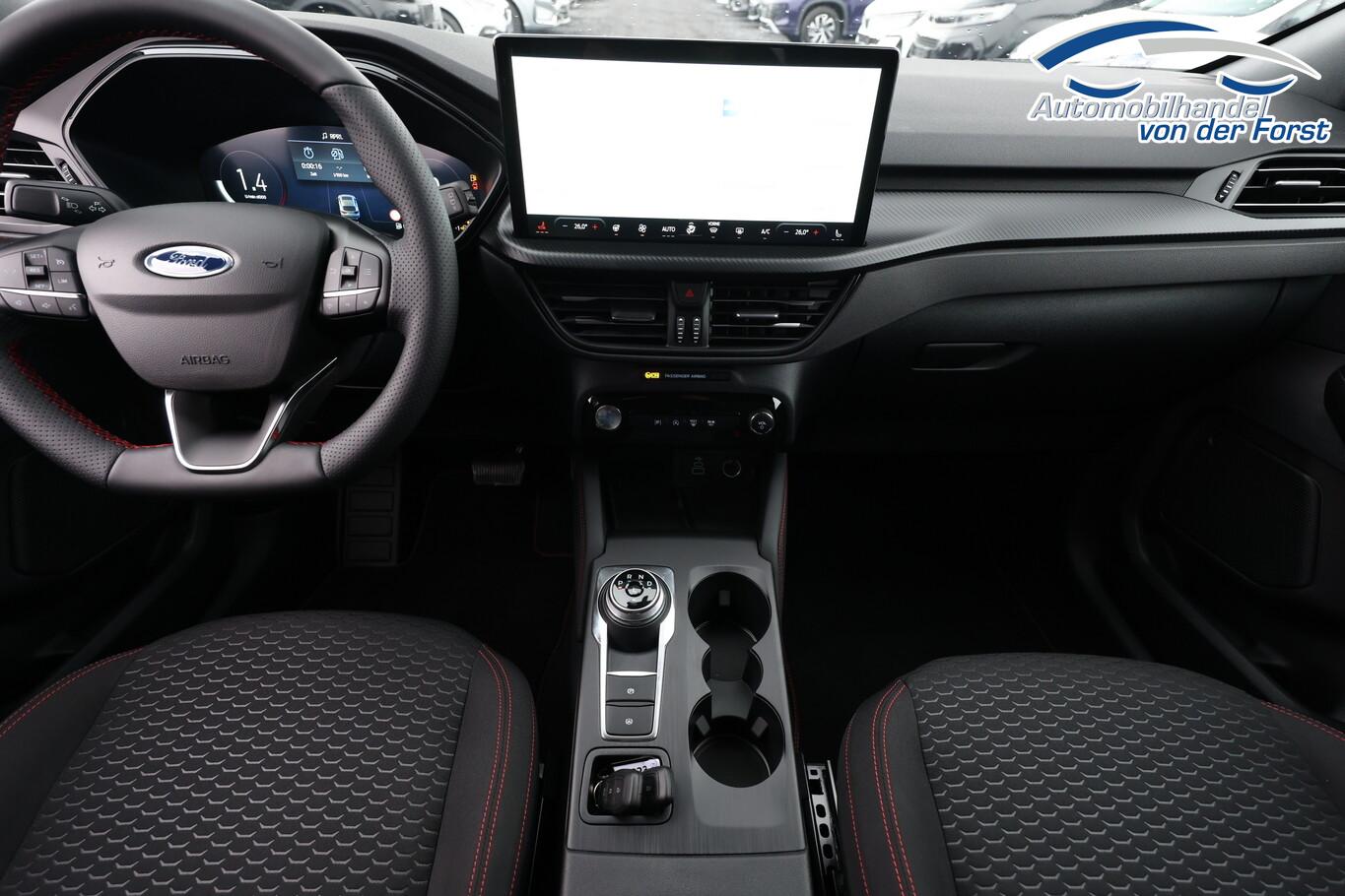 Winter-Paket (Lenkrad heizbar / Sitzheizung hinten / Frontscheibe heizbar), Verglasung hinten abgedunkelt (Privacy Glass), Reserverad als Notrad, 12V Steckdosen im Fond, 13,2 Zoll Farb-Touchscreen, 3. Bremsleuchte, Ablagetasche an Rückseite Vordersitzlehnen, Außenspiegel in Wagenfarbe, Außenspiegel mit Umfeldbeleuchtung, Beifahrerairbag deaktivierbar, Fahrassistenz-System: Fernlichtassistent (Scheinwerfer mit Abblendautomatik), Fahrassistenz-System: Müdigkeitserkennungssystem, Fahrassistenz-System: Verkehrszeichenerkennung, Gepäckraumbeleuchtung, Handschuhfach beleuchtet, Kindersicherung, Kopfstützen hinten (3-Stück), Lenkrad (Sport/Leder, ST) mit Multifunktion, LM-Felgen 7,5J x 18 Zoll, Nebelscheinwerfer LED, Nebelschlussleuchte, Notrufsystem, Reifen 225/60 R18, Schadstoffarm nach Abgasnorm Euro 6e (EU6EA), Scheibenwischer hinten, Scheinwerfer LED, Stoßfänger in Wagenfarbe, Türgriffe außen in Wagenfarbe, Umlaufheizung, Verzurrösen (4-fach), Body-Styling-Paket (Kühlergrill schwarz / Seitenschweller Wagenfarbe / Stoßfänger Sport-Ausführung), Parkbremse elektrisch mit Auto-Hold-Funktion (Fahrassistenz-System: Berganfahr-Assistent (Hill-Holder)), Sitz vorn links verstellbar (8-fach) (Lendenwirbelstütze Sitz vorn links), Sitz vorn rechts verstellbar (8-fach) (Lendenwirbelstütze Sitz vorn rechts), Audio-Navigationssystem Ford mit AppLink (6 Lautsprecher / Radioempfang digital (DAB) / Ford SYNC IV mit Navigation / Sprachsteuerung und Bluetooth-Schnittstelle / USB-Anschluss / Audiobedienung am Lenkrad), Fahrassistenz-System: Pre-Collision-System (Fahrassistenz-System: Active City Stop / Fahrassistenz-System: Auffahrwarnsystem), KeyFree-System (Power KeyFree-Startfunktion), Mittelkonsole mit Armlehne (Getränkehalter vorn / Mittelarmlehne vorn mit Staufach und 12V-Anschluß), Geschwindigkeits-Regelanlage (Tempomat) (Intelligenter Geschwindigkeits-Begrenzer), Intelligent Protection System (IPS) (3-Punkt-Sicherheitsgurt hinten / Warnanlage für Sicherheitsgurte hinten / Warnanlage für Sicherheitsgurte vorn / Airbag Fahrer-/Beifahrerseite / Kopf-Schulter-Airbag vorn und hinten / Seitenairbag vorn), Ambiente-Beleuchtung vorn (LED), Dachhimmel Stoff, dunkel, Dachspoiler Wagenfarbe, Induktionsladeschale für mobile Endgeräte, Innenspiegel mit Abblendautomatik, Karosserie: 5-türig, Kombiinstrument Digitalanzeige 12,3 Zoll, Lenksäule (Lenkrad) höhen-/längsverstellbar, Motor 1,5 Ltr. - 137 kW EcoBoost KAT, Radstand 2710 mm, Scheibenrahmen schwarz, Sonnenblende links mit Spiegel (beleuchtet), Sonnenblende rechts mit Spiegel (beleuchtet), Anti-Blockier-System (ABS), Fahrassistenz-System: Notbrems-Assistent, Antriebsart: Frontantrieb, Elektron. Stabilitäts-Programm (ESP), Getriebe Automatik - Typ: 8F35 (8-Stufen), Klimaautomatik 2-Zonen, Fensterheber elektrisch vorn + hinten mit Komfortschließung, Isofix-Aufnahmen für Kindersitz, Rücksitzlehne geteilt, Rücksitzlehne klappbar, Sitzheizung vorn, Zentralverriegelung mit Fernbedienung, Bordcomputer, Dachreling schwarz, Rückfahrkamera, Servolenkung elektrisch, Außenspiegel elektr. anklappbar, Außenspiegel elektr. verstell- und heizbar, Heckleuchten LED, Scheibenwischer mit Regensensor, Scheinwerfer-Assistent mit Tag-/Nachtsensor, Tagfahrlicht LED, Parkpilotsystem vorn und hinten, Fahrassistenz-System: Spurhalteassistent, Reifendruck-Kontrollsystem