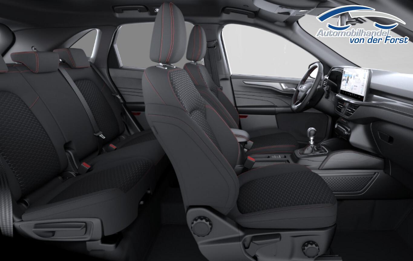 Winter-Paket (Lenkrad heizbar / Sitzheizung hinten / Frontscheibe heizbar), Verglasung hinten abgedunkelt (Privacy Glass), Reserverad als Notrad, Ablagetasche an Vordersitzlehnen, Beifahrerairbag deaktivierbar, Fahrassistenz-System: Falschfahrer-Warnfunktion, Fahrassistenz-System: Müdigkeitserkennungssensor, Fahrassistenz-System: Verkehrsschildassistent, Handschuhfach beleuchtet, LM-Felgen 7,5x18, Notrufsystem, Parkbremse elektrisch, Reifen 225/60 R18, Scheinwerfer LED, Sitzbezug / Polsterung: Stoff Anthrazit mit Ziernähten in Rot, Smartphone Schnittstelle (Apple CarPlay / Android Auto), Touchscreen 13,2 Zoll, Body-Styling-Paket (Kühlergrill schwarz / Seitenschweller Wagenfarbe / Stoßfänger Sport-Ausführung), Sitz vorn links verstellbar (8-fach) (Lendenwirbelstütze Sitz vorn links), Sitz vorn rechts verstellbar (8-fach) (Lendenwirbelstütze Sitz vorn rechts), Audio-Navigationssystem Ford mit AppLink (6 Lautsprecher / Radioempfang digital (DAB) / Ford SYNC IV mit Navigation / Sprachsteuerung und Bluetooth-Schnittstelle / USB-Anschluss / Audiobedienung am Lenkrad), Fahrassistenz-System: Pre-Collision-System (Fahrassistenz-System: Active City Stop / Fahrassistenz-System: Auffahrwarnsystem), KeyFree-System (Power KeyFree-Startfunktion), Mittelkonsole mit Armlehne (Getränkehalter vorn / Mittelarmlehne vorn mit Staufach und 12V-Anschluß), Geschwindigkeits-Regelanlage (Tempomat) (Intelligenter Geschwindigkeits-Begrenzer), Intelligent Protection System (IPS) (3-Punkt-Sicherheitsgurt hinten / Warnanlage für Sicherheitsgurte hinten / Warnanlage für Sicherheitsgurte vorn / Airbag Fahrer-/Beifahrerseite / Kopf-Schulter-Airbag vorn und hinten / Seitenairbag vorn), Ambiente-Beleuchtung vorn (LED), Dachhimmel Stoff, dunkel, Hybrid 132 kW (Motor 2,5 Ltr. - 112 kW), Induktionsladeschale für mobile Endgeräte, Innenspiegel mit Abblendautomatik, Karosserie: 5-türig, Kombiinstrument Digitalanzeige 12,3 Zoll, Scheibenrahmen schwarz, Scheinwerfer mit Ausschaltverzögerung, Sonnenblende links mit Spiegel (beleuchtet), Sonnenblende rechts mit Spiegel (beleuchtet), Anti-Blockier-System (ABS), Antischlupfregelung (ASR), Antriebsart: Frontantrieb, Elektron. Stabilitäts-Programm (ESP), Sport-Fahrwerk, Getriebe Automatik - ECVT, Klimaautomatik 2-Zonen, Fensterheber elektrisch vorn + hinten mit Komfortschließung, Isofix-Aufnahmen für Kindersitz, Rücksitzlehne geteilt, Rücksitzlehne klappbar, Sitzheizung vorn, Sportsitze, Bordcomputer, Dachreling schwarz, Rückfahrkamera, Lenkrad (Sport/Leder, ST), Servolenkung elektrisch, Außenspiegel elektr. anklappbar, Außenspiegel elektr. verstell- und heizbar, Heckleuchten LED, Scheibenwischer mit Regensensor, Scheinwerfer-Assistent mit Tag-/Nachtsensor, Tagfahrlicht LED, Parkpilotsystem vorn und hinten, Fahrassistenz-System: Spurhalteassistent, Reifendruck-Kontrollsystem