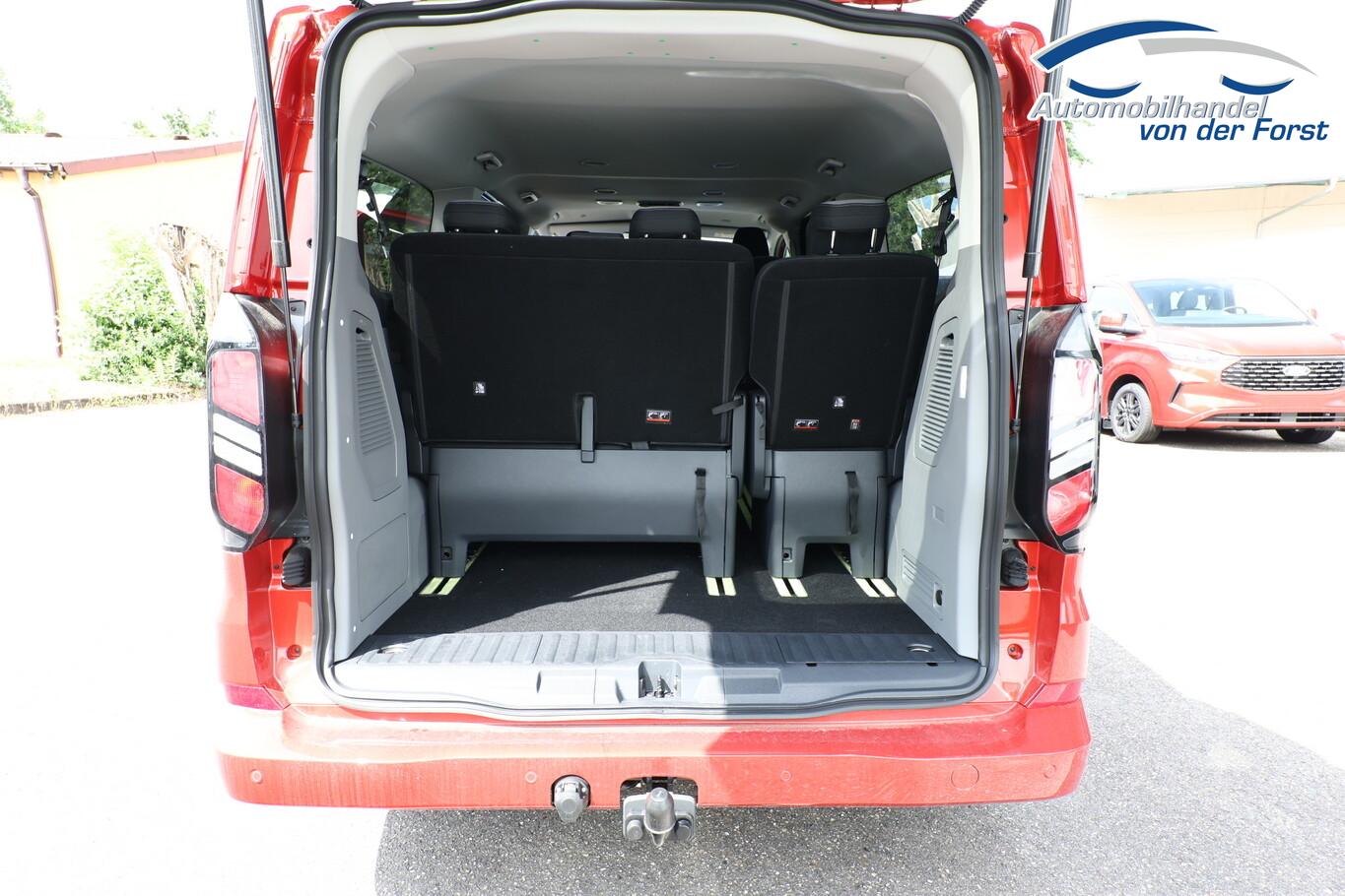 Technologie-Paket 5 (Audiosystem: Radioempfang Digital (DAB / DAB+) mit 13" Multifunktionsdisplay und SYNC 4 / Außenspiegel elektr. anklappbar / Fahrassistenz-System: Falschfahrer-Warnfunktion / Fahrassistenz-System: Notbrems-Assistent, rückwärts / Fahrassistenz-System: Spurwechsel-Warnsystem / Audio-Navigationssystem / Adaptive Geschwindigkeitsregelanlage / Fahrassistenz-System: Adaptive Geschwindigkeitsregelanlage (ACC, Stop&Go) / Außenspiegel elektr. verstell- und heizbar / Blinkleuchte in Außenspiegel integriert / Fahrassistenz-System: Totwinkel-Assistent inkl. Cross Traffic Alert / Fahrassistenz-System: Müdigkeits-Warner / Fahrassistenz-System: Spurhalteassistent), Klimaautomatik 3-Zonen (Zusatzheizung elektrisch / Zusatzheizung hinten mit Temperaturregelung), Anhängerkupplung: Kugelkopf fest, Fenster im Lade-/FG-Raum: - ausstellbar, 2.Reihe, 10 Lautsprecher inkl. Subwoofer, Beifahrerairbag deaktivierbar, Bluetooth-Freisprecheinrichtung, Einparkhilfe vorn und hinten, Fahrassistenz-System: Pre-Collision-Assist, Fahrassistenz-System: Verkehrszeichenerkennung inkl. Intelligenter Geschwindigkeitsbegrenzer, Fahrersitz mit Lendenwirbelstütze, Isofix-Halterungen hinten, Kopf-Airbag-System vorn, Lenkrad (Leder) mit Multifunktion, LM-Felgen 17 Zoll, Rückfahrkamera, Schadstoffarm nach Abgasnorm Euro 6e (EU6 EA), Schiebetür Lade-/Fahrgastraum links, Servolenkung elektrisch, Sitz-Paket: Fahrersitz (4-fach verstellbar) - Beifahrerdoppelsitz, Seitenairbag und Sitzheizung (äußere Sitze), Sitzbezug-/Polsterung: Stoff schwarz / Medium Urban Grey, Smartphone-Schnittstelle kabellos (Apple CarPlay / Android Auto), Türgriffe außen in Wagenfarbe, Verglasung hinten ab B-Säule verdunkelt, Zentralverriegelung / Startanlage Keyless System, Außenspiegel in Wagenfarbe, Bodenbelag: Teppich im Lade-/Fahrgastraum, Handschuhfach abschließbar, Heckklappe mit Verglasung, Heckscheibe heizbar, Heckscheibenwischer, Heizung mit Umluftschaltung, Laderaumleuchte LED, Motor 2,0 Ltr. - 125 kW EcoBlue KAT, Power KeyFree-Startfunktion, Reifen 215/60 R17C, Rücksitz-Paket 5 (3 Einzelsitze 2.Reihe / 1 Einzelsitz und Doppelsitzbank 3.Reihe), Schiebetür Lade-/Fahrgastraum rechts, Stoßfänger in Wagenfarbe, Verzurrösen (4), Anti-Blockier-System (ABS), Antriebsart: Frontantrieb, Elektron. Stabilitäts-Programm (ESP), LM-Felgen 6,5x17 (6-Doppelspeichen), Traktionskontrolle, Getriebe Automatik - (8-Stufen), Airbag Beifahrerseite, Airbag Fahrerseite, Fensterheber elektrisch, Zentralverriegelung mit Fernbedienung, Bordcomputer, Frontscheibe heizbar, Fahrassistenz-System: Berganfahr-Assistent, Fahrassistenz-System: Fernlichtassistent (Scheinwerfer mit Abblendautomatik), Scheibenwischer mit Regensensor, Scheinwerfer LED, Tagfahrlicht LED, Reifendruck-Kontrollsystem, Start/Stop-Anlage