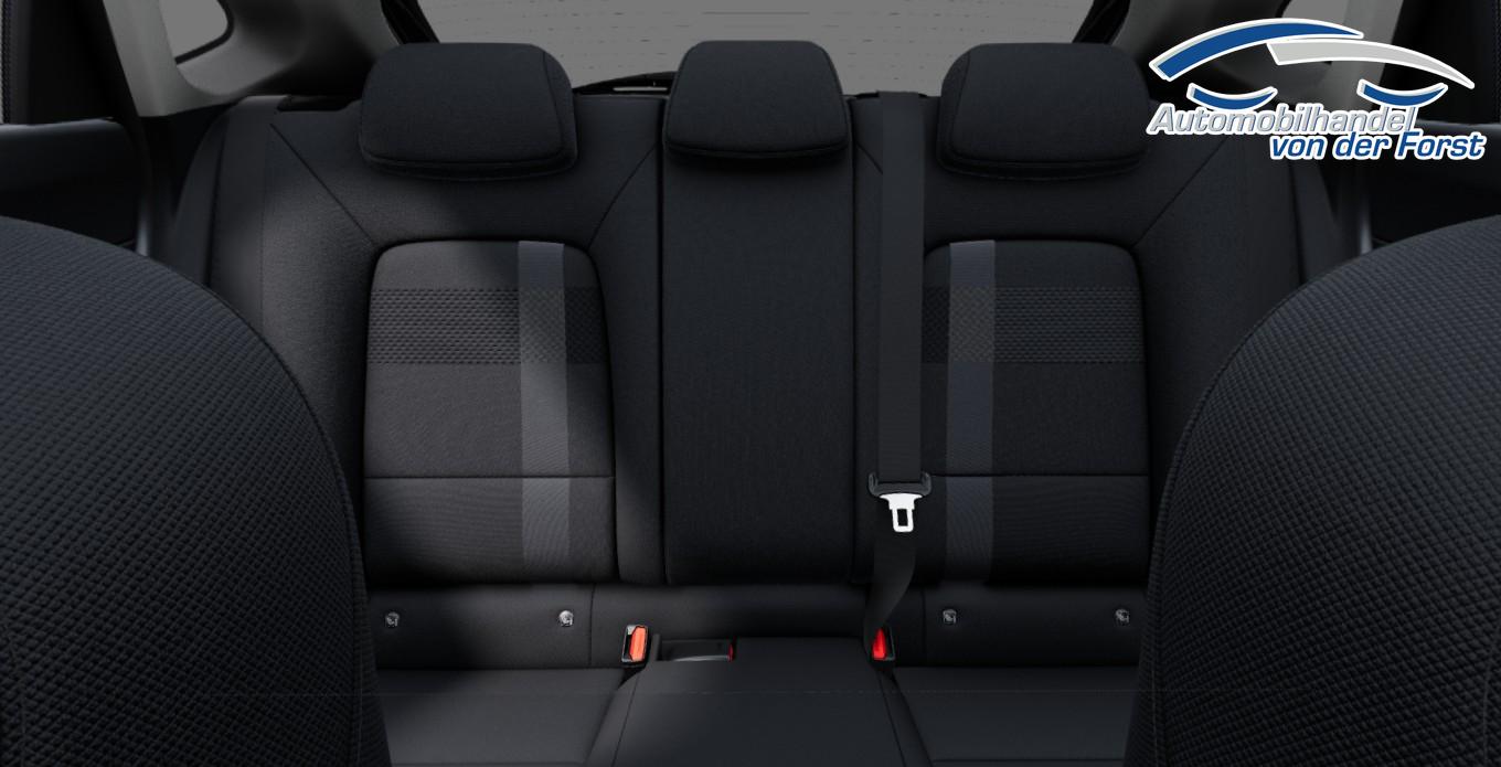 • Make-up-Spiegel in den Sonnenblenden, Lenkrad beheizbar, Schalthebelknauf in Leder, Multifunktions-Lederlenkrad, Mittelarmlehne vorn, Gepäckraumbeleuchtung, Fensterheber vorn und hinten elektrisch, Zentralverriegelung mit Funkfernbedienung, Wegfahrsperre, Notrufsystem eCall, Radio-Navigationssystem (Farbdisplay, Touchscreen, App-Connect), USB-Schnittstelle, Regensensor, Spurhalteassistent "Lane Assist", Rückfahrkamera, Verkehrszeichenerkennung, Reifendruckkontrolle, ParkPilot hinten, LED-Tagfahrlicht, Lichtsensor, Scheiben ab der B-Säule abgedunkelt, 16 Zoll Leichtmetallräder, Scheibenwischer-Intervallschaltung, Türgriffe in Wagenfarbe, Stoßfänger in Wagenfarbe, Außenspiegel elektrisch einstell- und beheizbar, Außenspiegelgehäuse in Wagenfarbe, Servolenkung, Start-Stopp-Anlage, Isofix, ABS, ESC, ASR, HAC, MCB, Airbag für Fahrer und Beifahrer, Beifahrerairbag-Deaktivierung, Seitenairbag vorn mit Kopfairbag, Sitzheizung vorn, Rücksitzlehne geteilt umklappbar, City-Notbremsfunktion inkl. Front Assist, Müdigkeitserkennung, Fußgängererkennung, Dreipunkt-Sicherheitsgurte, Kopfstützen, Digital Cockpit inkl. Bordcomputer, Klimaautomatik Climatronic, Fahrmodusauswahl