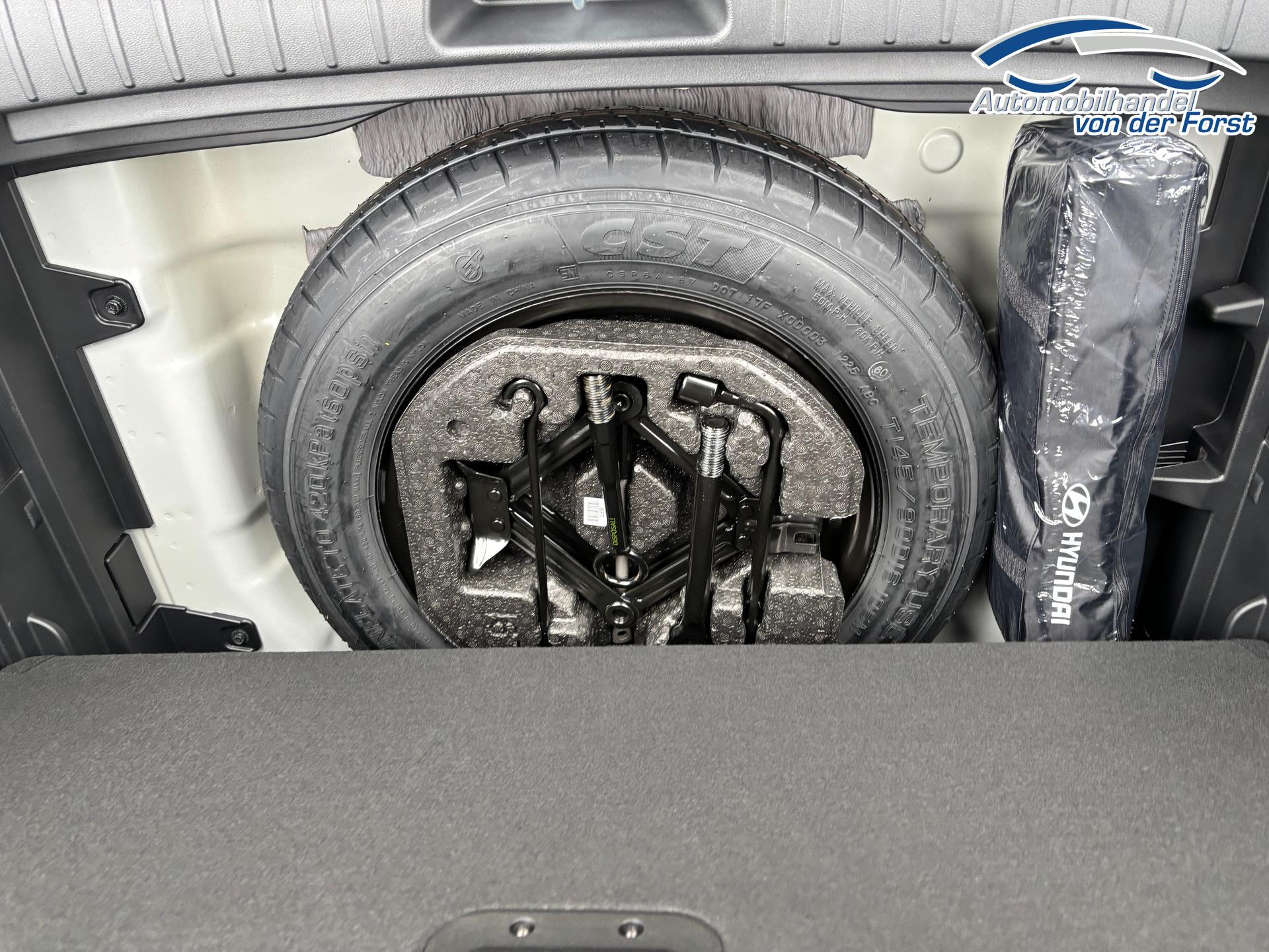 • Platzsparendes Stahl-Reserverad inkl. Wagenheber und Bordwerkzeug (nicht i.V. mit 1.6 T-GDI 4x4) vorhanden
