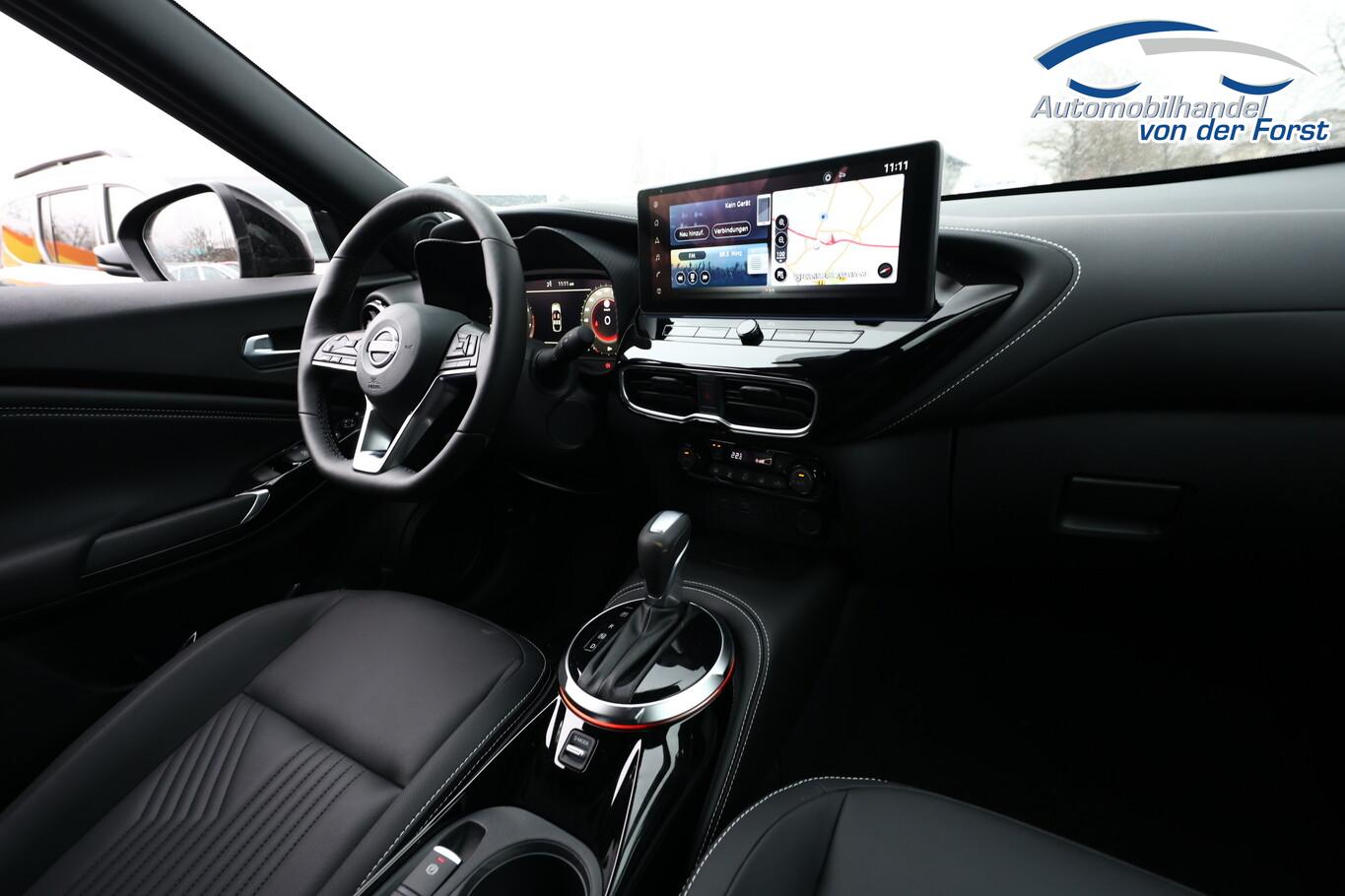 Ausstattungs-Paket: Nissan Connect Navigationssystem, Außenspiegel elektr. anklappbar, Außenspiegel heizbar, Auto-Hold-Funktion, Einschaltautomatik für Fahrlicht, Fahrassistenz-System: Kreuzungsassistent, Fahrassistenz-System: Stauassistent, Gurtwarnanlage, Induktionsladeschale für Smartphone, Klimaautomatik, LED-Heckleuchten, LED-Tagfahrlicht, Lenkrad heizbar, LM-Felgen 19 Zoll, Notbrems-Warnblinkautomatik, Reifen 225/45 R19, Scheibenwischer mit Regensensor, Sitzbezug / Polsterung: Kunstleder, Sitzheizung vorn, USB-Schnittstelle, Technologie-Paket Getriebe Automatik (Pro Pilot-Paket / Fahrassistenz-System: Fußgängererkennung / Around View Monitor (360° Umgebungsansicht) / Geschwindigkeits-Regelanlage (Tempomat) mit Abstandsregelung / Kamerasystem Around View / Fahrassistenz-System: Totwinkel-Assistent / Einparkhilfe vorn und hinten / Fahrassistenz-System: Park-Assistent mit 360° Bewegungssensoren / Fahrassistenz-System: aktiver Spurhalteassistent, mit korrigierendem Bremseingriff / Fahrassistenz-System: Müdigkeitserkennungs-Sensor / Fahrassistenz-System: Querverkehrs-Assistent Heck (Rear Cross Traffic Alert, RCTA)), Anti-Blockier-System (ABS) (Elektr. Bremskraftverteilung (EBD)), Lenkrad (Leder) mit Multifunktion (Audio-/Bordcomputerbedienung am Lenkrad), Außenspiegel elektr. verstellbar (Blinkleuchte in Außenspiegel integriert), Fahrassistenz-System: Autonomer Notbrems-Assistent (Fahrassistenz-System: Fußgängererkennung), 6 Lautsprecher, Abdeckkappen Außenspiegel Schwarz, Dachhimmel schwarz, Innenspiegel mit Abblendautomatik, Instrumentenanzeige TFT-Farbdisplay (12,3 Zoll), Karosserie: 5-türig, Motor 1,0 Ltr. - 84 kW 12V KAT, Otto-Partikelfilter (OPF), Parkbremse elektrisch, Radioempfang digital (DAB+), Schalt-/Wählhebelgriff Leder, Sitz vorn links höhenverstellbar, Steckdose (12V-Anschluß), Touchscreen-Farbdisplay (12,3 Zoll), Smartphone Schnittstelle (Apple CarPlay & Android Auto), Antriebsart: Frontantrieb, Elektron. Stabilitäts-Programm (ESP), Getriebe 7-Gang - Doppelkupplungsgetriebe DCT, Airbag Beifahrerseite abschaltbar, Airbag Fahrer-/Beifahrerseite und Seitenairbag vorn, Fensterheber elektrisch vorn + hinten, Isofix-Aufnahmen für Kindersitz, Kopf-Airbag-System, Mittelarmlehne vorn, Rücksitz geteilt/klappbar, Schließ-/Startsystem intelligent key, Verglasung hinten abgedunkelt, Fahrmodusschalter, Fahrassistenz-System: Berganfahr-Assistent, Fahrassistenz-System: Verkehrszeichenerkennung, Fahrassistenz-System: Sicherheitssystem ERA GLONASS mit automatischem Notruf, Fahrassistenz-System: Fernlichtassistent, Nebelscheinwerfer LED, Scheinwerfer LED, Reifendruck-Kontrollsystem, Start-Stop-Knopf, Start/Stop-Anlage