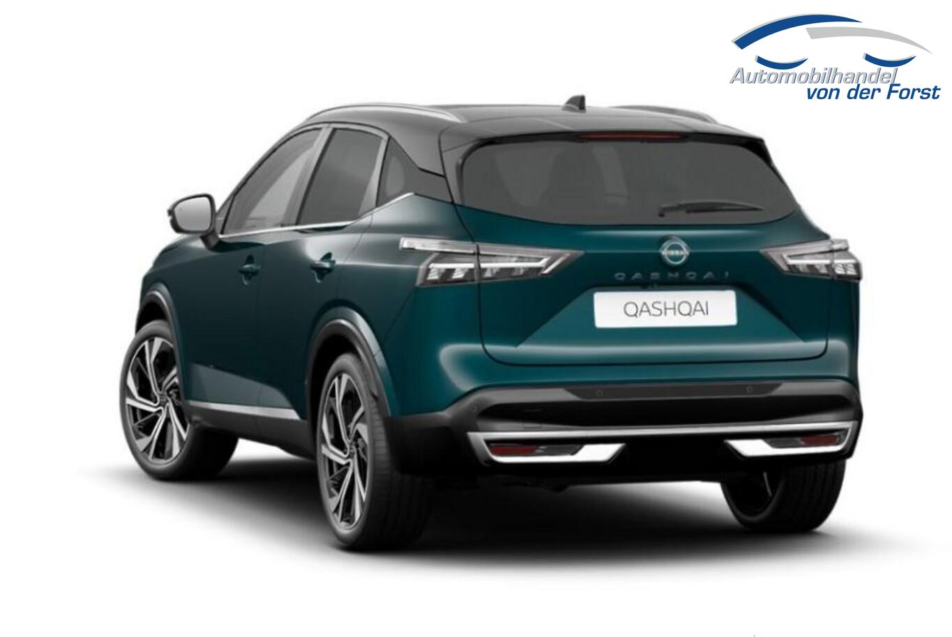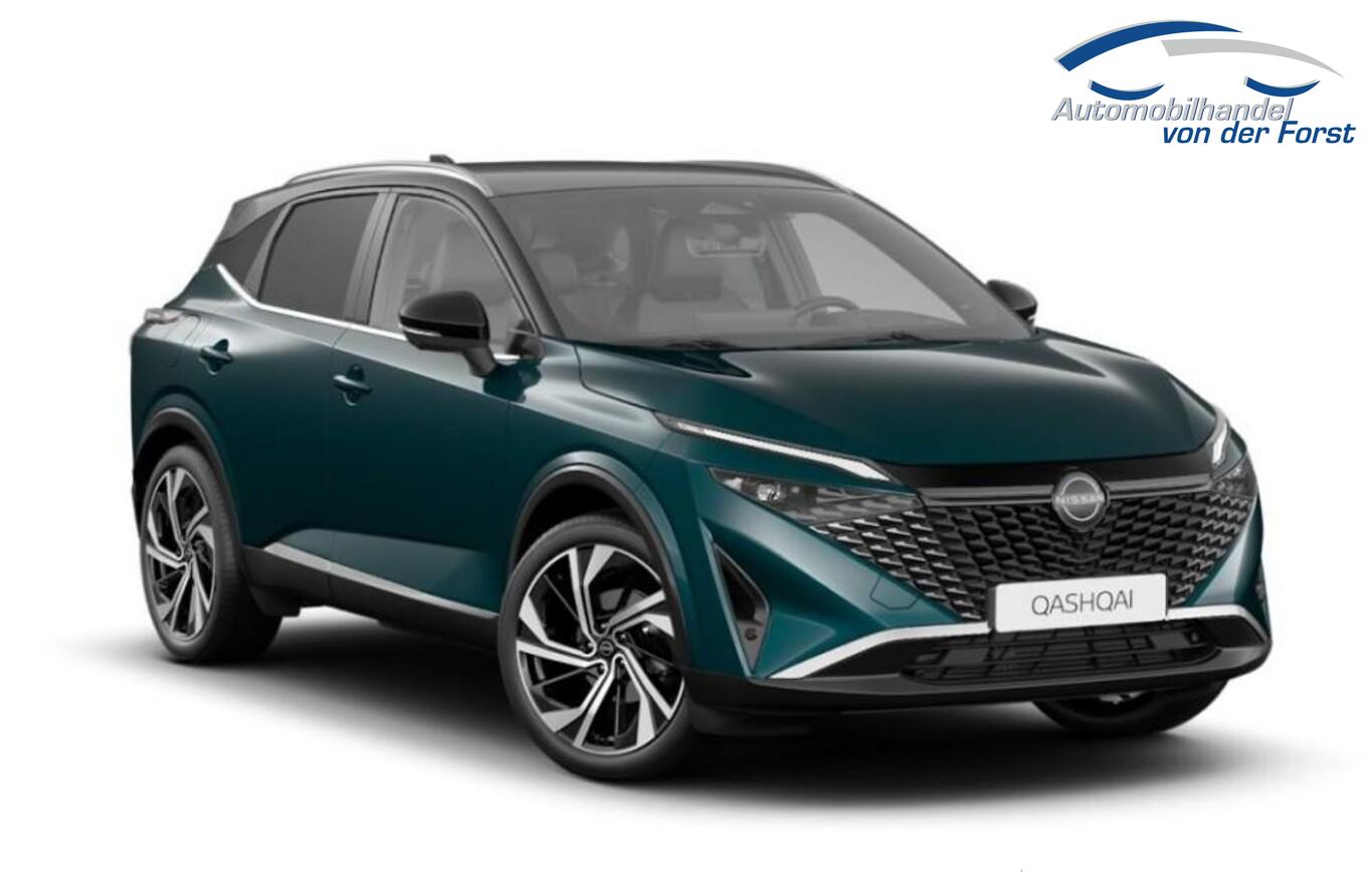 2-Farben-Lackierung (Dach schwarz lackiert), LM-Felgen 8x20, Armaturenbrett, Mittelkonsole und Türarmlehne mit Elementen aus Wildlederimitat, Außenspiegel schwarz, Bluetooth-Schnittstelle, Bordcomputer, Fahrassistenz-System: Autonomer Notbrems-Assistent hinten, Freisprecheinrichtung Bluetooth, Gepäckraumboden variabel, Gurtwarnanlage, Intelligenter Geschwindigkeitsassistent (ISA), Mehrlenker-Hinterradaufhängung, Radioempfang digital (DAB), Seitenairbag hinten, Sitz vorn rechts elektr. verstellbar, Sitzbezug / Polsterung: Premium-Leder Nappa mit Alcantara-Einsätzen, Sommerreifen 235/45 R20, Zentralverriegelung, Business-Paket (Induktionsladeschale für Smartphone / Heckklappe/-Deckel elektr. betätigt (Öffnung, sensorgesteuert)), Design-Paket (Dachreling silber / Panorama-Glasdach), Komfort-Paket (1) (Außenspiegel elektr. verstellbar, mit Memoryfunktion rechts / Lendenwirbelstütze Sitz vorn rechts / Sitz vorn links elektr. verstellbar (mit Memory) / Head-up-Display / Heckklappe/-Deckel elektr. betätigt (Öffnung, sensorgesteuert) / Außenspiegel elektr. verstellbar, mit Memoryfunktion links / Außenspiegel mit autom. Absenkfunktion), Sound-System BOSE Premium (10 Lautsprecher), Technologie-Paket Getriebe Automatik (Fahrassistenz-System: Autonomer Lenk-Assistent für selbstständiges Spurhalten / Fahrassistenz-System: ProPilot mit Navi-Link / Head-up-Display / Fahrassistenz-System: Autom. Distanzregelung mit vorausschauender Geschw.-Regelung / Fahrassistenz-System: Stauassistent inkl. Stop&Go-Funktion), Ausstattungs-Paket: Nissan Connect Navigationssystem mit Around View Monitor (Smartphone kabellose Schnittstelle (Apple CarPlay & Android Auto) / Sprachbediensystem Spracherkennung / Kamerasystem Around View / Service-System: Google Services / Service-System: Nissan Connect Services / Einparkhilfe vorn und hinten), Schließ-/Startsystem intelligent key (Keyless-Entry / Start-Stop-Knopf), Lenkrad (Leder) mit Multifunktion (Audiobedienung am Lenkrad), Winter-Paket (Lenkrad heizbar / Sitzheizung vorn / Frontscheibe heizbar), 3. Bremsleuchte, Ambiente-Beleuchtung erweitert, Dachantenne im Haifischflossen-Design, Elektr. Bremskraftverteilung (EBD), Geschwindigkeits-Begrenzeranlage, Innenspiegel mit Abblendautomatik, Instrumentenanzeige TFT-Farbdisplay (12,3 Zoll), Karosserie: 5-türig, Lendenwirbelstütze Sitz vorn links, elektr. verstellbar, Mild-Hybrid 116 kW (Motor 1,3 Ltr. - 116 kW DIG-T MHEV), Mittelarmlehne hinten mit Getränkehalter, Otto-Partikelfilter (OPF), Parkbremse elektrisch, Radstand 2666 mm, Schalt-/Wählhebelgriff Leder, Sitz vorn links höhenverstellbar, Sitz vorn rechts höhenverstellbar, Sitz vorn rechts mit Massagefunktion, Sonnenblenden mit Spiegel (beleuchtet), Touchscreen-Farbdisplay (12,3 Zoll), USB-Anschluss im Fond, USB-Schnittstelle, Anti-Blockier-System (ABS), Fahrassistenz-System: Moving Object Detection (MOD, Fußgängererkennung und bewegliche Objekterkennung), Antriebsart: Allradantrieb, Elektron. Stabilitäts-Programm (ESP), Getriebe Automatik stufenlos - X-Tronic-CVT, Klimaautomatik 2-Zonen, Airbag Fahrer-/Beifahrerseite, Fensterheber elektrisch vorn + hinten, Isofix-Aufnahmen für Kindersitz, Kopf-Airbag-System, Rücksitz geteilt/klappbar, Seitenairbag, Fahrmodusschalter, Auto-Hold-Funktion, Fahrassistenz-System: Auffahrwarnsystem (Forward Collision Warning, FCW), Fahrassistenz-System: Berganfahr-Assistent, Fahrassistenz-System: Verkehrszeichenerkennung, Fahrassistenz-System: Sicherheitssystem ERA GLONASS mit automatischem Notruf, Außenspiegel elektr. anklappbar, Außenspiegel elektr. verstell- und heizbar, Automatische Fahrlichtschaltung, Fahrassistenz-System: Adaptiver Fernlichtassistent, Fahrassistenz-System: Totwinkel-Assistent, Heckleuchten LED (Super rot), Nebelscheinwerfer LED, Scheibenwischer mit Regensensor, Scheinwerfer Voll-LED, Tagfahrlicht LED, Fahrassistenz-System: aktiver Spurhalteassistent, mit korrigierendem Bremseingriff, Fahrassistenz-System: Autonomer Notbrems-Assistent, Fahrassistenz-System: Müdigkeitserkennungs-Sensor, Fahrassistenz-System: Querverkehrs-Assistent Heck (Rear Cross Traffic Alert, RCTA), Reifendruck-Kontrollsystem, Diebstahl-Warnanlage, Start/Stop-Anlage