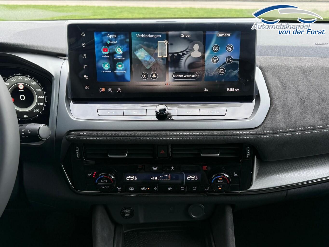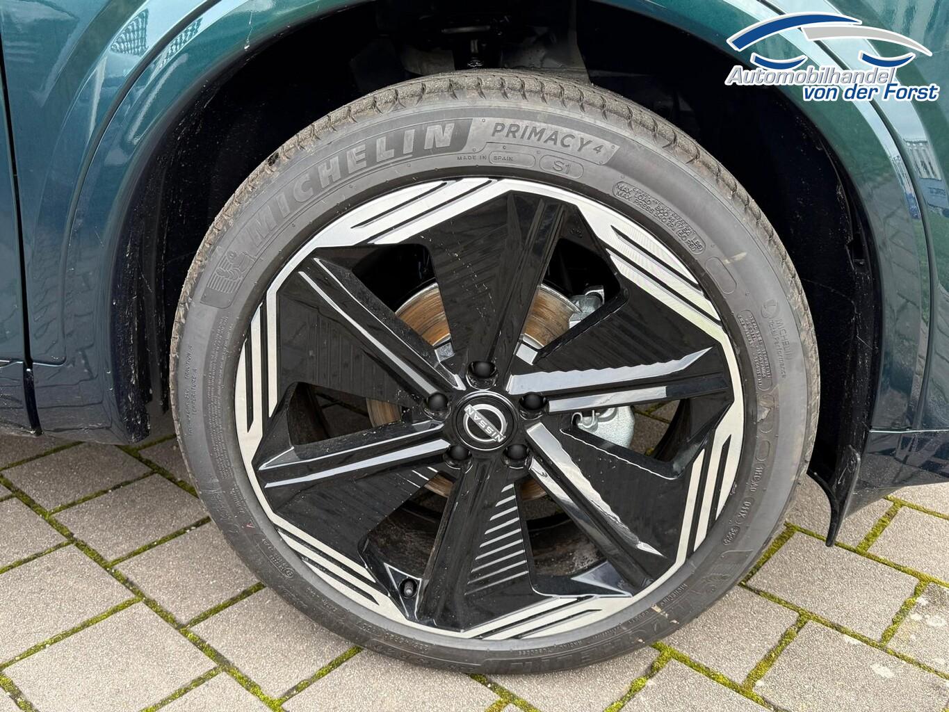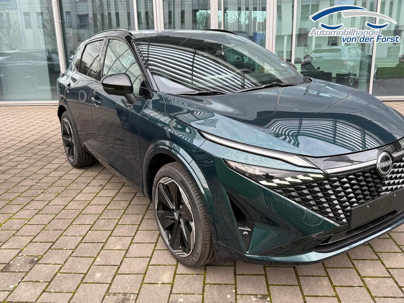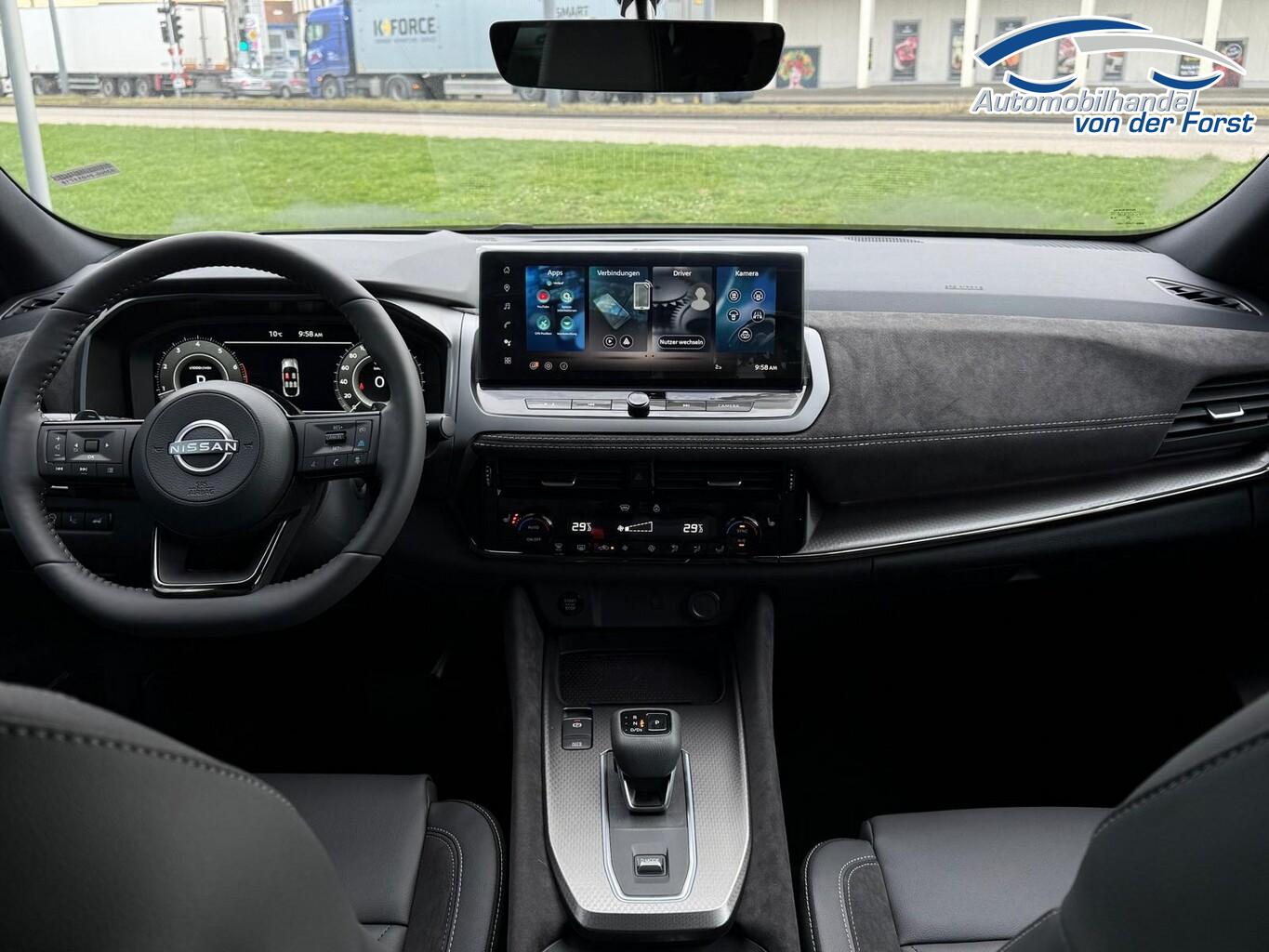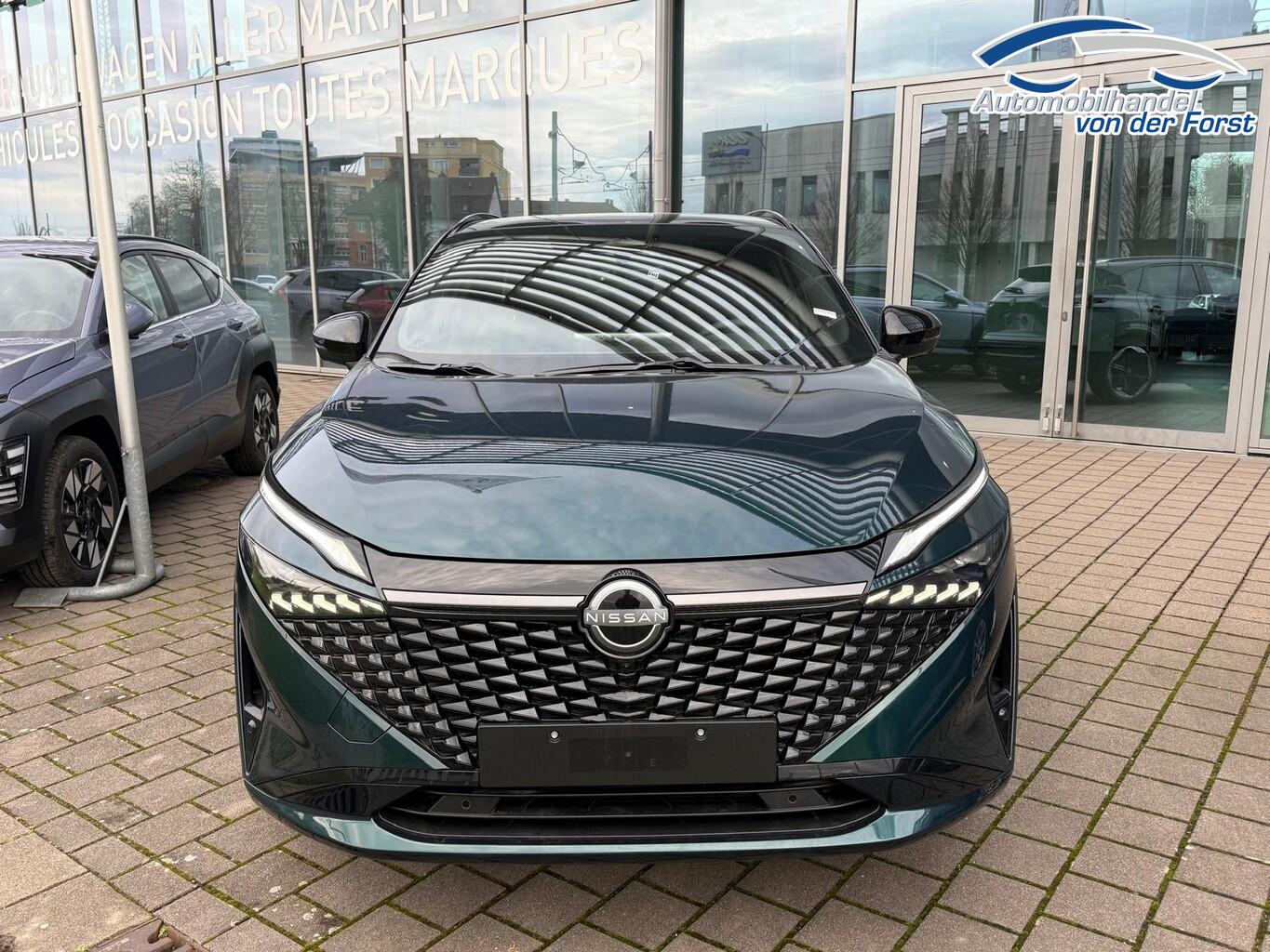 Komfort-Paket (1) (Außenspiegel elektr. verstellbar, mit Memoryfunktion rechts / Lendenwirbelstütze Sitz vorn rechts / Head-up-Display / Heckklappe/-Deckel elektr. betätigt (Öffnung, sensorgesteuert) / Außenspiegel elektr. verstellbar, mit Memoryfunktion links / Außenspiegel mit autom. Absenkfunktion), Panorama-Glasdach, Einparkhilfe vorne & hinten, Fahrassistenz-System: Spurverlassenswarnung, Induktionsladeschale für Smartphone, Innenspiegel rahmenlos mit Abblendautomatik, LM-Felgen 20 Zoll, Mehrlenker-Hinterradaufhängung, Nissan Herstellergarantie: 3 Jahre Garantie oder 100.000 km, Schadstoffarm nach Abgasnorm Euro 6e (EU6 EA), Smartphone kabellose Schnittstelle (Apple CarPlay & Android Auto), Schließ-/Startsystem intelligent key (Keyless-Entry / Start-Stop-Knopf), Lenkrad (Leder) mit Multifunktion (Audiobedienung am Lenkrad), Winter-Paket (Lenkrad heizbar / Sitzheizung vorn / Frontscheibe heizbar), 3. Bremsleuchte, Ambiente-Beleuchtung, Dachantenne im Haifischflossen-Design, Dachhimmel schwarz, Geschwindigkeits-Begrenzeranlage, Instrumentenanzeige TFT-Farbdisplay (12,3 Zoll), Karosserie: 5-türig, Lendenwirbelstütze Sitz vorn links, elektr. verstellbar, Mild-Hybrid 116 kW (Motor 1,3 Ltr. - 116 kW DIG-T MHEV), Mittelarmlehne hinten mit Getränkehalter, Notbrems-Warnblinkautomatik, Parkbremse elektrisch, Radstand 2666 mm, Schalt-/Wählhebelgriff Leder, Sitz vorn links höhenverstellbar, Sitz vorn rechts höhenverstellbar, Sonnenblenden mit Spiegel (beleuchtet), Touchscreen-Farbdisplay (12,3 Zoll), Navigationssystem, USB-Anschluss im Fond, USB-Schnittstelle, Anti-Blockier-System (ABS), Fahrassistenz-System: Moving Object Detection (MOD, Fußgängererkennung und bewegliche Objekterkennung), Antriebsart: Frontantrieb, Elektron. Stabilitäts-Programm (ESP), Getriebe Automatik stufenlos - X-Tronic-CVT, Klimaautomatik 2-Zonen, Airbag Fahrer-/Beifahrerseite, Kopf-Airbag-System, Rücksitz geteilt/klappbar, Seitenairbag, Fahrmodusschalter, Dachreling schwarz, Around View Monitor (360° Umgebungsansicht), Auto-Hold-Funktion, Fahrassistenz-System: Auffahrwarnsystem (Forward Collision Warning, FCW), Fahrassistenz-System: Berganfahr-Assistent, Fahrassistenz-System: Verkehrszeichenerkennung, Geschwindigkeits-Regelanlage (Tempomat) mit Abstandsregelung, Außenspiegel elektr. anklappbar, Außenspiegel elektr. verstell- und heizbar, Automatische Fahrlichtschaltung, Blinkleuchten LED in Außenspiegel integriert, Fahrassistenz-System: Adaptiver Fernlichtassistent, Fahrassistenz-System: Totwinkel-Assistent, Heckleuchten LED (Super rot), Scheibenwischer mit Regensensor, Scheinwerfer Voll-LED, Tagfahrlicht LED, Fahrassistenz-System: aktiver Spurhalteassistent, mit korrigierendem Bremseingriff, Fahrassistenz-System: Autonomer Notbrems-Assistent, Fahrassistenz-System: Müdigkeitserkennungs-Sensor, Diebstahl-Warnanlage