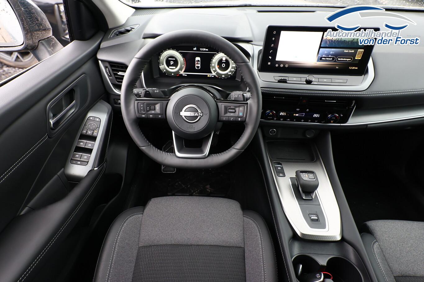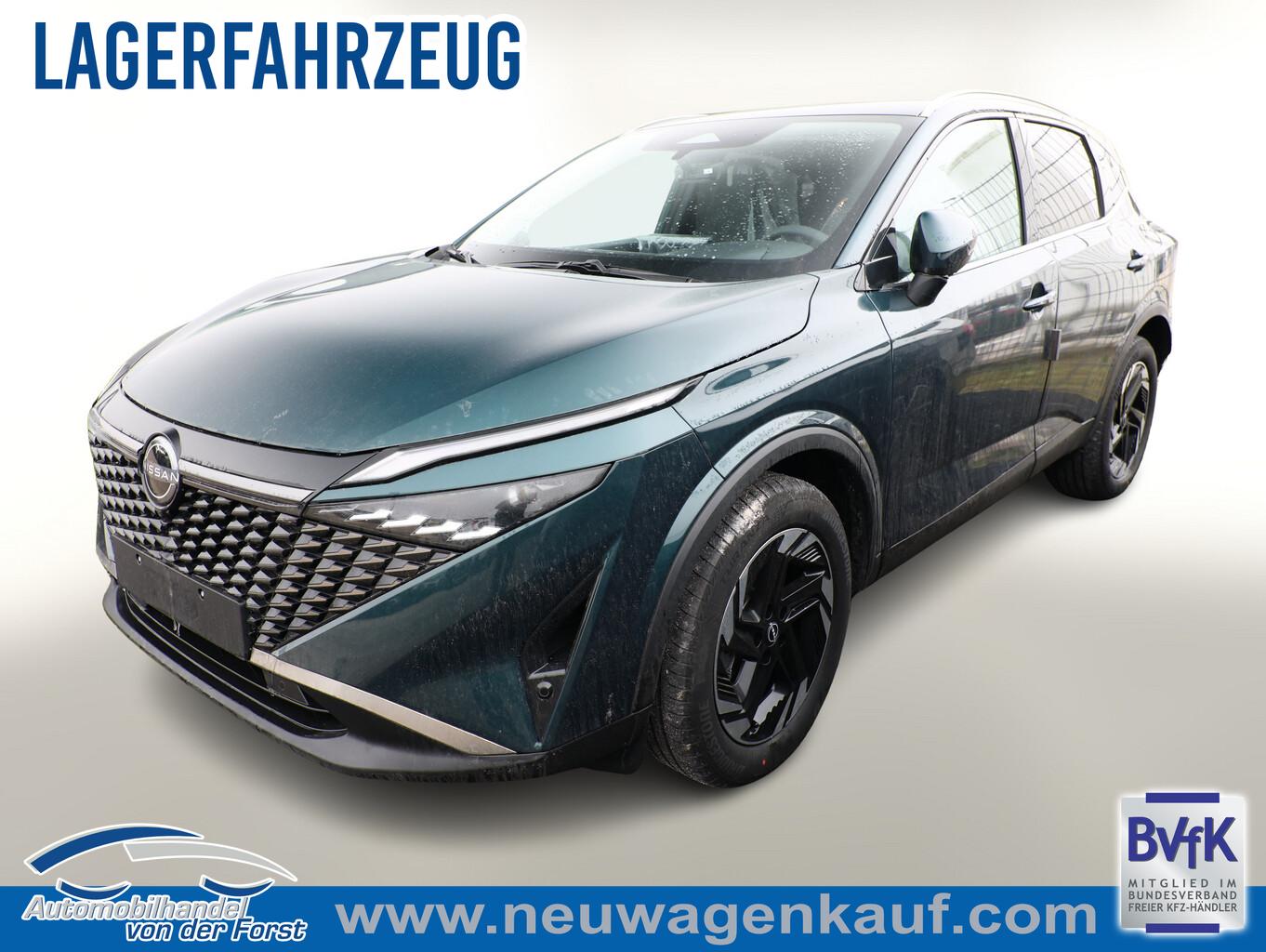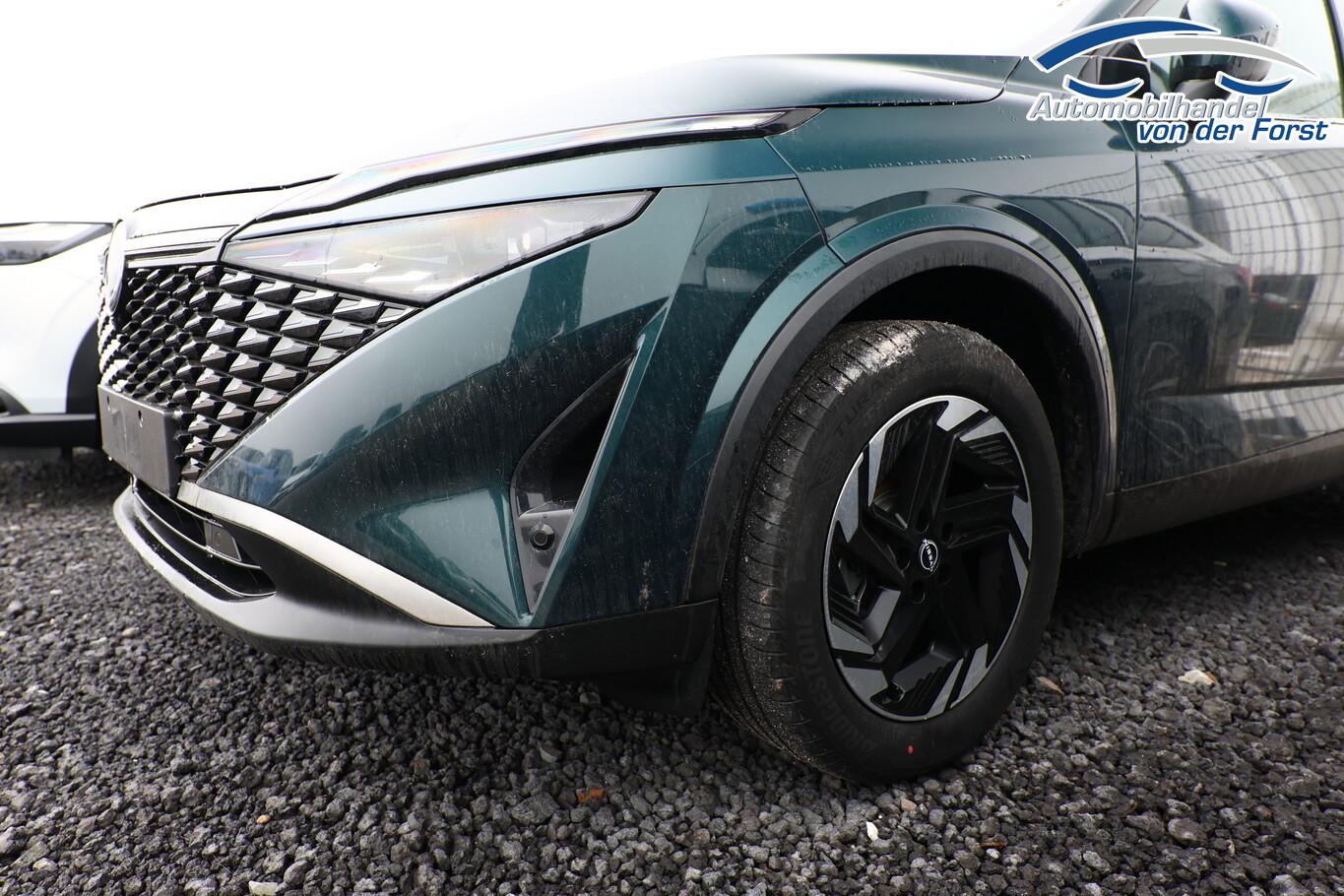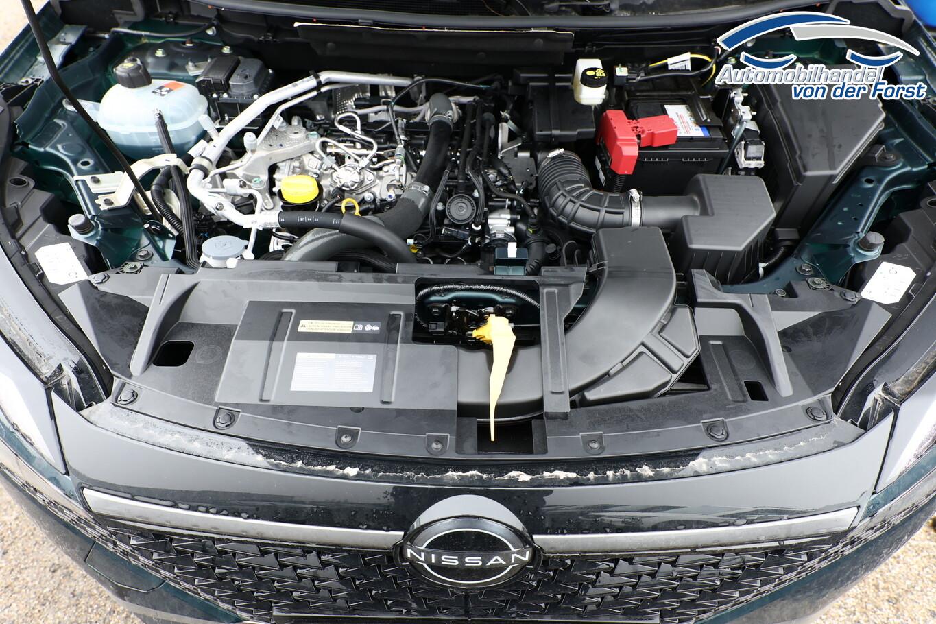Winter-Paket (Lenkrad heizbar / Sitzheizung vorn / Frontscheibe heizbar), 6 Lautsprecher, Bluetooth-Schnittstelle, Dachträger silber, Fahrassistenz-System: Bremsassistent, Fahrassistenz-System: Spurverlassenswarnung, Fahrassistenz-System: Stau-Pilot, Freisprecheinrichtung Bluetooth, Getränkehalter vorn, Induktionsladeschale für Smartphone, Lenkrad heizbar, LM-Felgen 18 Zoll, Nissan Herstellgarantie 3 Jahre / 100.000km, Radioempfang digital (DAB), Reifen 235/55 R18, Wegfahrsperre, Zentralverriegelung mit Fernbedienung, Ausstattungs-Paket: Nissan Connect Navigationssystem mit Around View Monitor (Smartphone kabellose Schnittstelle (Apple CarPlay & Android Auto) / Sprachbediensystem Spracherkennung / Kamerasystem Around View / Service-System: Google Services / Service-System: Nissan Connect Services / Einparkhilfe vorn und hinten), Schließ-/Startsystem intelligent key (Keyless-Entry / Start-Stop-Knopf), Lenkrad (Leder) mit Multifunktion (Audiobedienung am Lenkrad), Ambiente-Beleuchtung, Dachantenne im Haifischflossen-Design, Elektr. Bremskraftverteilung (EBD), Geschwindigkeits-Begrenzeranlage, Innenspiegel mit Abblendautomatik, Instrumentenanzeige TFT-Farbdisplay (12,3 Zoll), Karosserie: 5-türig, Kofferraumbeleuchtung, Lendenwirbelstütze Sitz vorn links, elektr. verstellbar, Lenksäule (Lenkrad) höhen-/längsverstellbar, Mild-Hybrid 116 kW (Motor 1,3 Ltr. - 116 kW DIG-T MHEV), Mittelarmlehne hinten mit Getränkehalter, Notbrems-Warnblinkautomatik, Parkbremse elektrisch, Schalt-/Wählhebelgriff Leder, Scheibenwischer mit Intervallschaltung, Sitz vorn links höhenverstellbar, Sitz vorn rechts höhenverstellbar, Sonnenblenden mit Spiegel (beleuchtet), Steckdose (12V-Anschluß) in Mittelkonsole, Touchscreen-Farbdisplay (12,3 Zoll), Navigationssystem, USB-Anschluss im Fond, USB-Schnittstelle, Anti-Blockier-System (ABS), Fahrassistenz-System: Moving Object Detection (MOD, Fußgängererkennung und bewegliche Objekterkennung), Antriebsart: Frontantrieb, Elektron. Stabilitäts-Programm (ESP), Getriebe Automatik stufenlos - X-Tronic-CVT, Klimaautomatik 2-Zonen, Airbag Fahrer-/Beifahrerseite, Fensterheber elektrisch vorn + hinten, Isofix-Aufnahmen für Kindersitz, Rücksitz geteilt/klappbar, Seitenairbag, Verglasung hinten abgedunkelt, Fahrmodusschalter, Around View Monitor (360° Umgebungsansicht), Auto-Hold-Funktion, Fahrassistenz-System: Auffahrwarnsystem (Forward Collision Warning, FCW), Fahrassistenz-System: Berganfahr-Assistent, Fahrassistenz-System: Verkehrszeichenerkennung, Geschwindigkeits-Regelanlage (Tempomat) mit Abstandsregelung, Fahrassistenz-System: Sicherheitssystem ERA GLONASS mit automatischem Notruf, Lenkrad mit Schaltwippen/-tasten, Außenspiegel elektr. anklappbar, Außenspiegel elektr. verstell- und heizbar, Automatische Fahrlichtschaltung, Fahrassistenz-System: Fernlichtassistent, Fahrassistenz-System: Totwinkel-Assistent, Heckleuchten LED, Scheibenwischer mit Regensensor, Scheinwerfer LED, Fahrassistenz-System: aktiver Spurhalteassistent, mit korrigierendem Bremseingriff, Fahrassistenz-System: Autonomer Notbrems-Assistent, Fahrassistenz-System: Müdigkeitserkennungs-Sensor, Fahrassistenz-System: Querverkehrs-Assistent Heck (Rear Cross Traffic Alert, RCTA), Reifendruck-Kontrollsystem, Start/Stop-Anlage